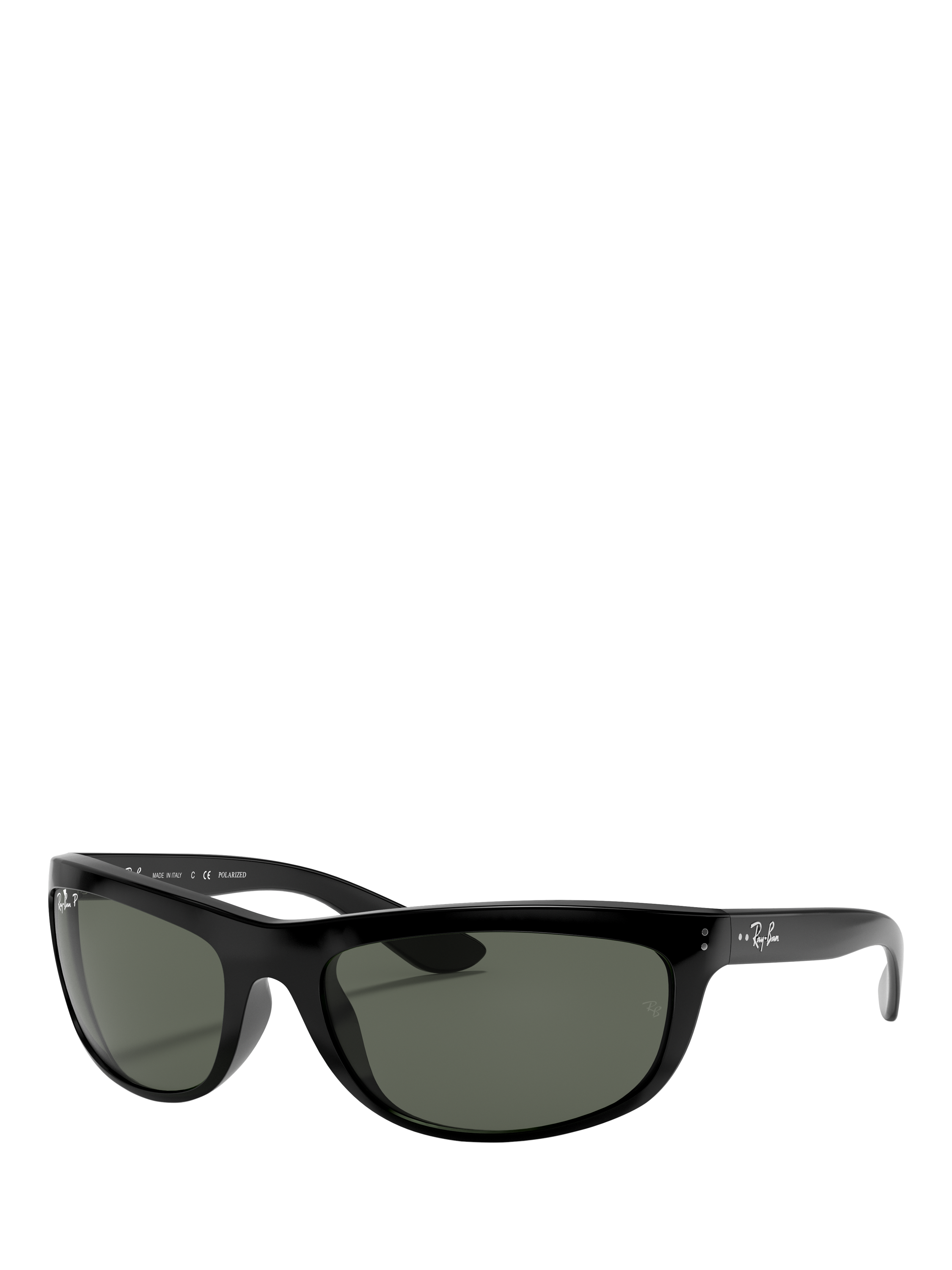 Ray-BanRB4089 Balorama Polarised Rectangular Sunglasses, Black/Dark Green