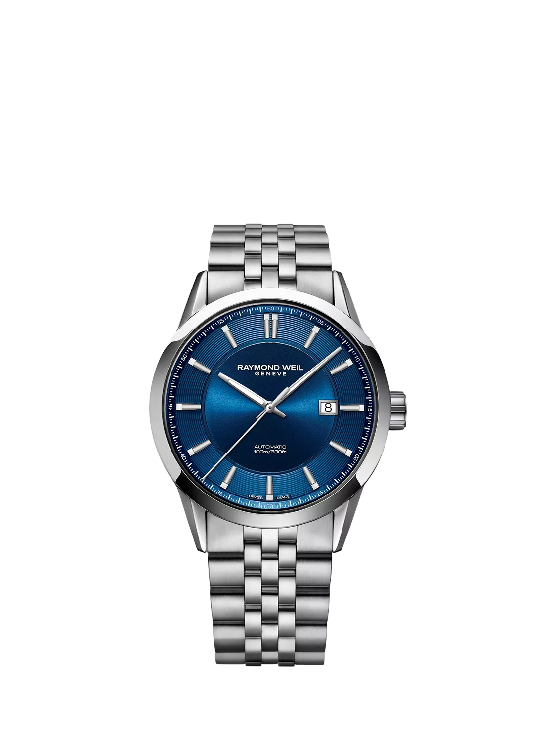 Raymond WeilMen's Freelancer 42 Automatic Date Bracelet Strap Watch, Silver/Blue