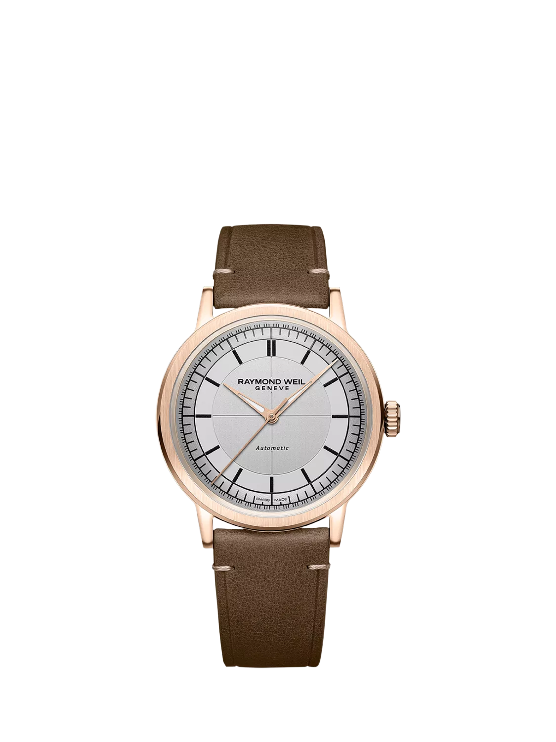 Raymond WeilMen's Millesime 39.5 Automatic Leather Strap Watch, Rose