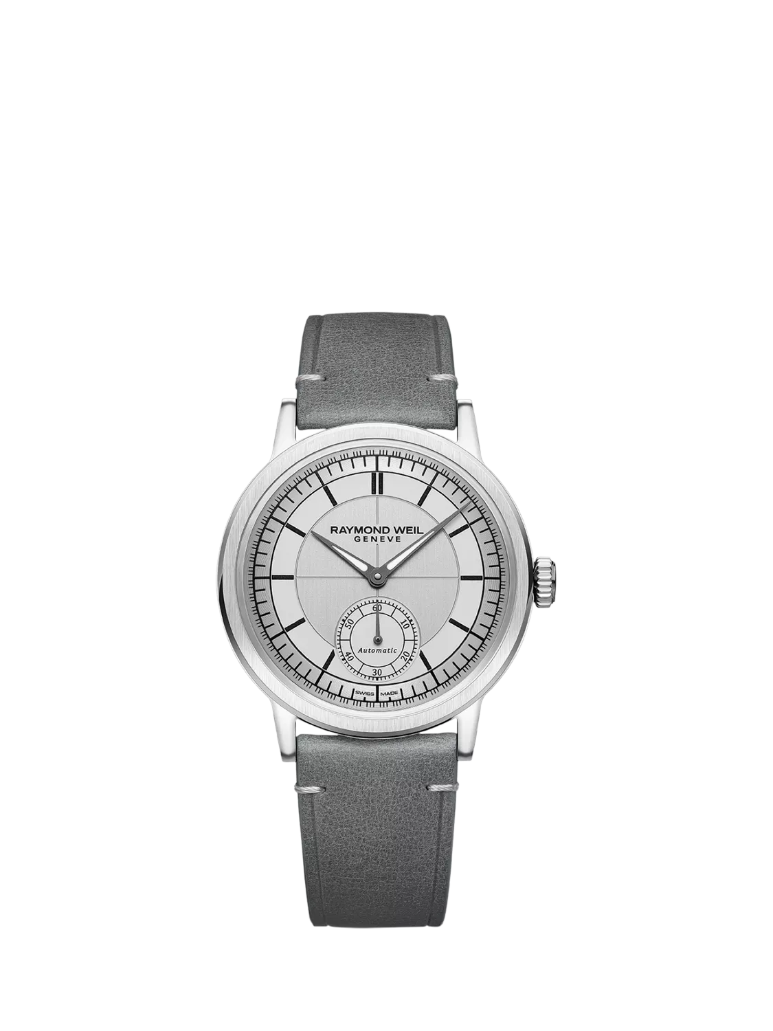 Raymond WeilMen's Millesime 39.5 Seconds Dial Automatic Leather Strap Watch, Silver/Grey