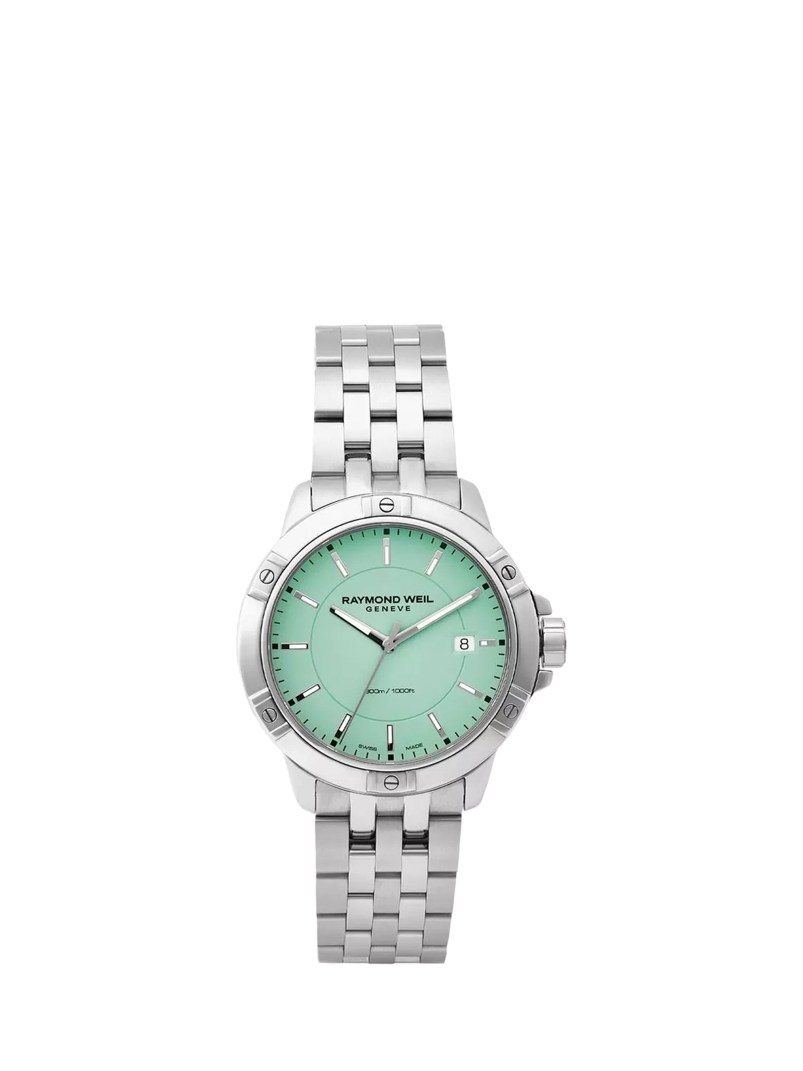 The tango collection embodies the passion that RAYMOND WEIL, the Swiss watchmaker, puts into achieving timepieces of both aesthetic sensuality of design and rhythmic perfection. With its refined and modern design, this contemporary collection appeals to both men and women. Featuring a quartz movement, the gents’ timepieces boast a sober and refined style while the ladies’ models are graced with mother of pearl and diamonds. Distinctive style with a balance of proportions, the tango watch has a distinguishing signature bezel featuring six decorative screws. Functionality marries with sensual design, making this a watch worn to suit any occasion.