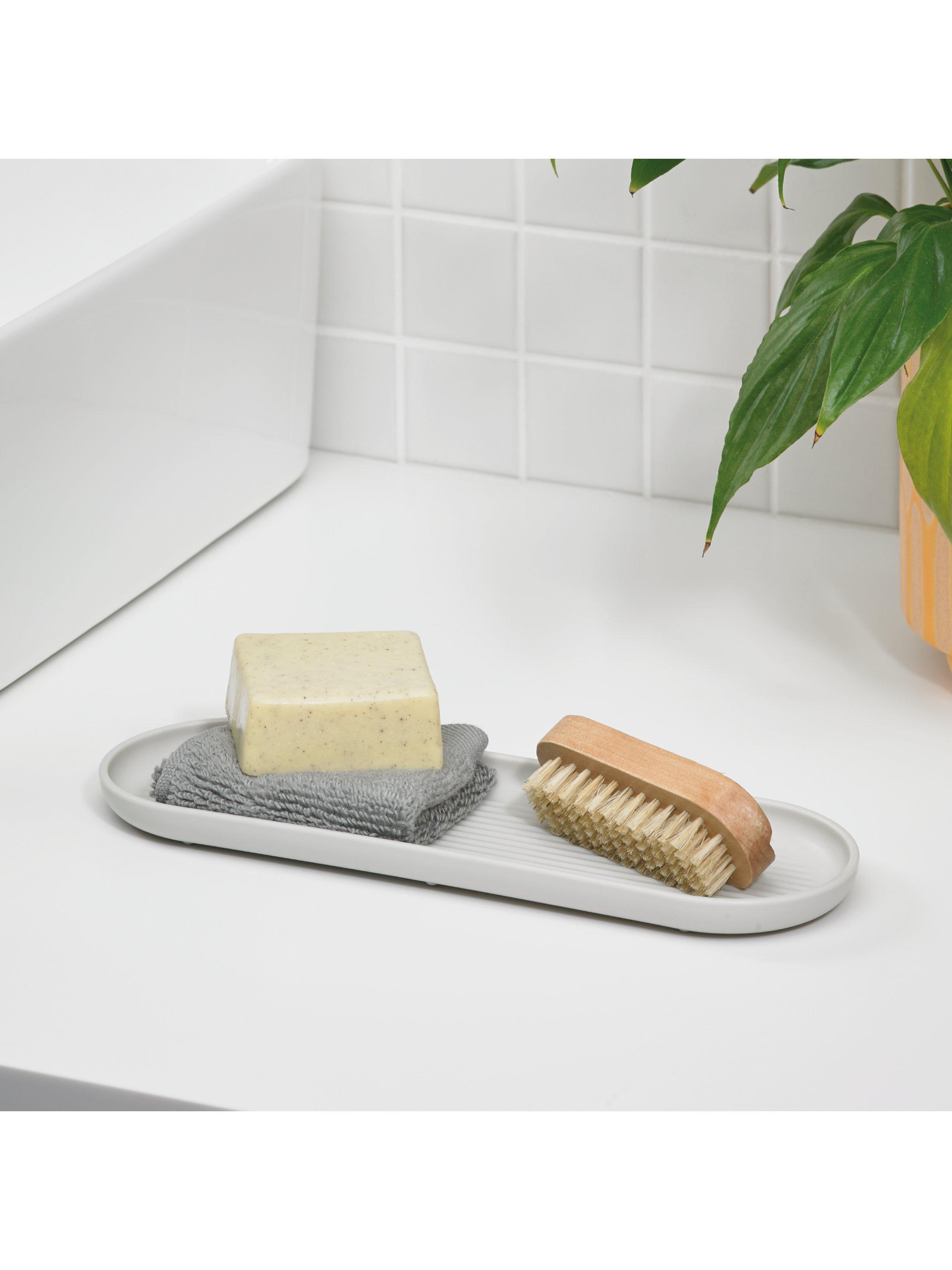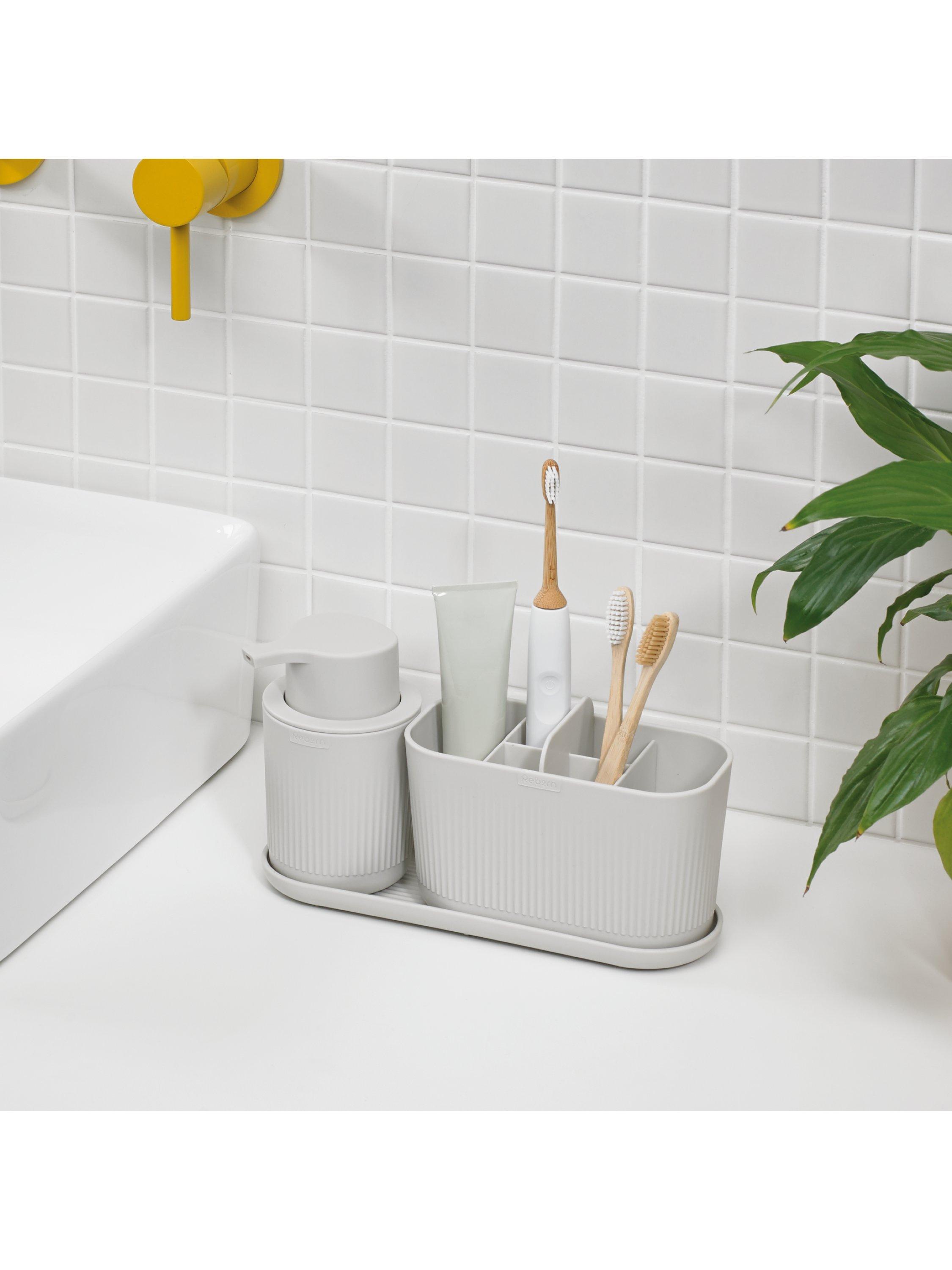 This large bathroom tray made from recycled materials and neatly holds ReBorn® caddies, soap pumps and other items in place.