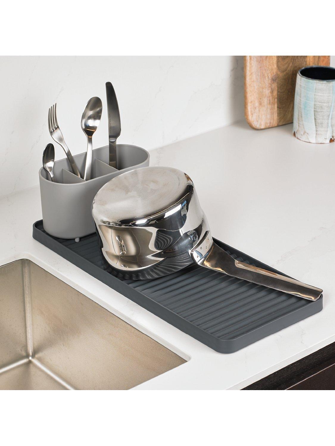 The non-slip base protects your surfaces from scratches while the corrosion-resistant stainless-steel rack and plastic drip tray prevent kitchen surfaces from getting wet. Designed and made in the UK, from recycled materials.