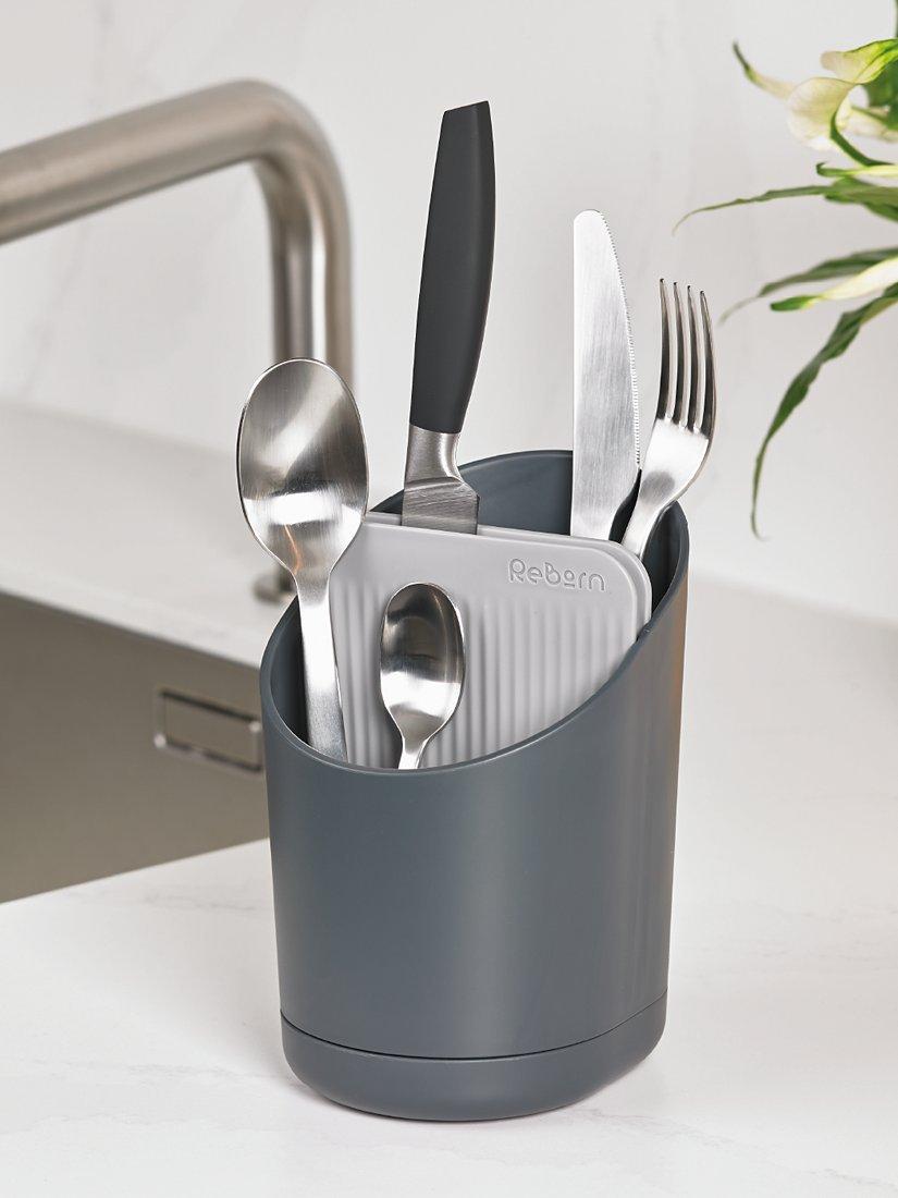 Elegant, functional and space-efficient drainer from ReBorn. The tiered design separates different types of cutlery and there's a knife-safety draining slot.