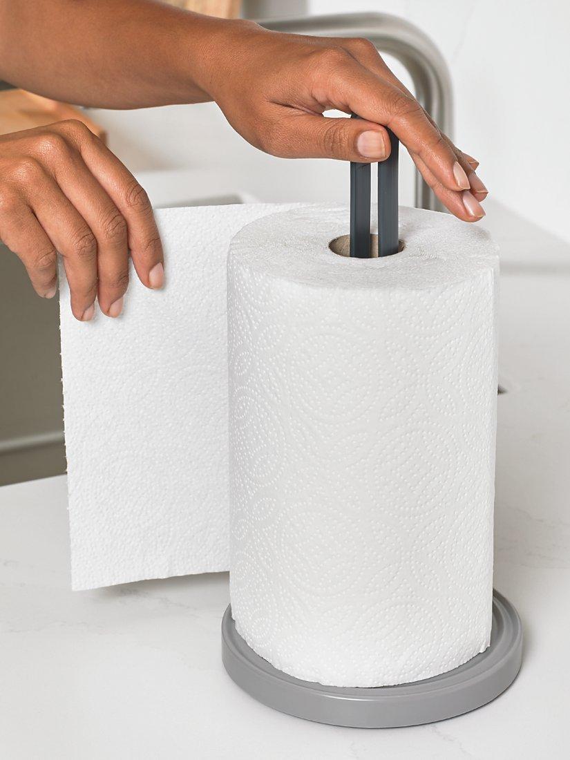 Elegant and functional, this kitchen roll holder from ReBorn has a non-slip base that also protects your kitchen countertop from scratches. The finger-hole handle makes it easy to hold or move around. Ribs in the base keep loose ends of paper roll in place. Designed and made in the UK, from recycled materials.