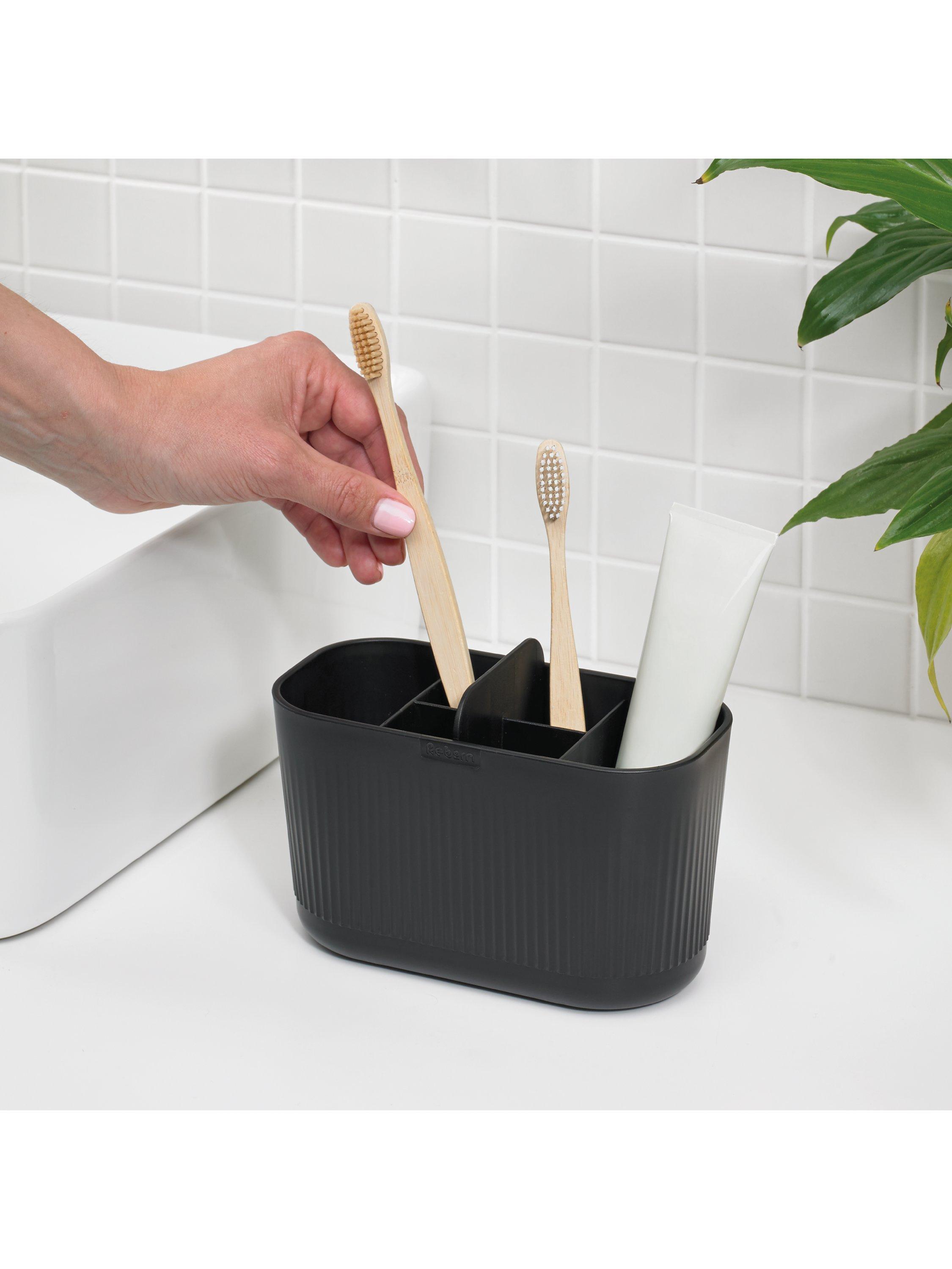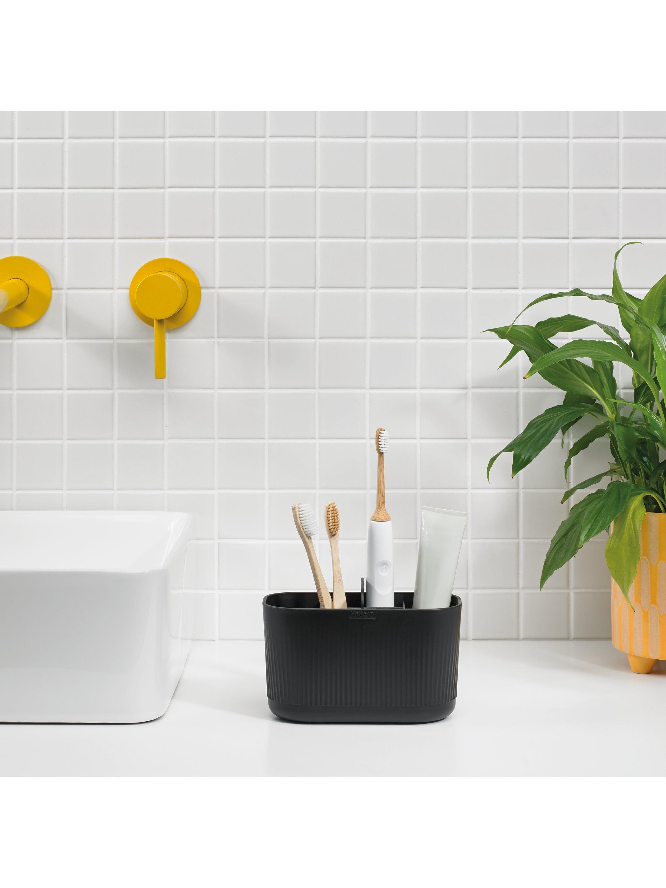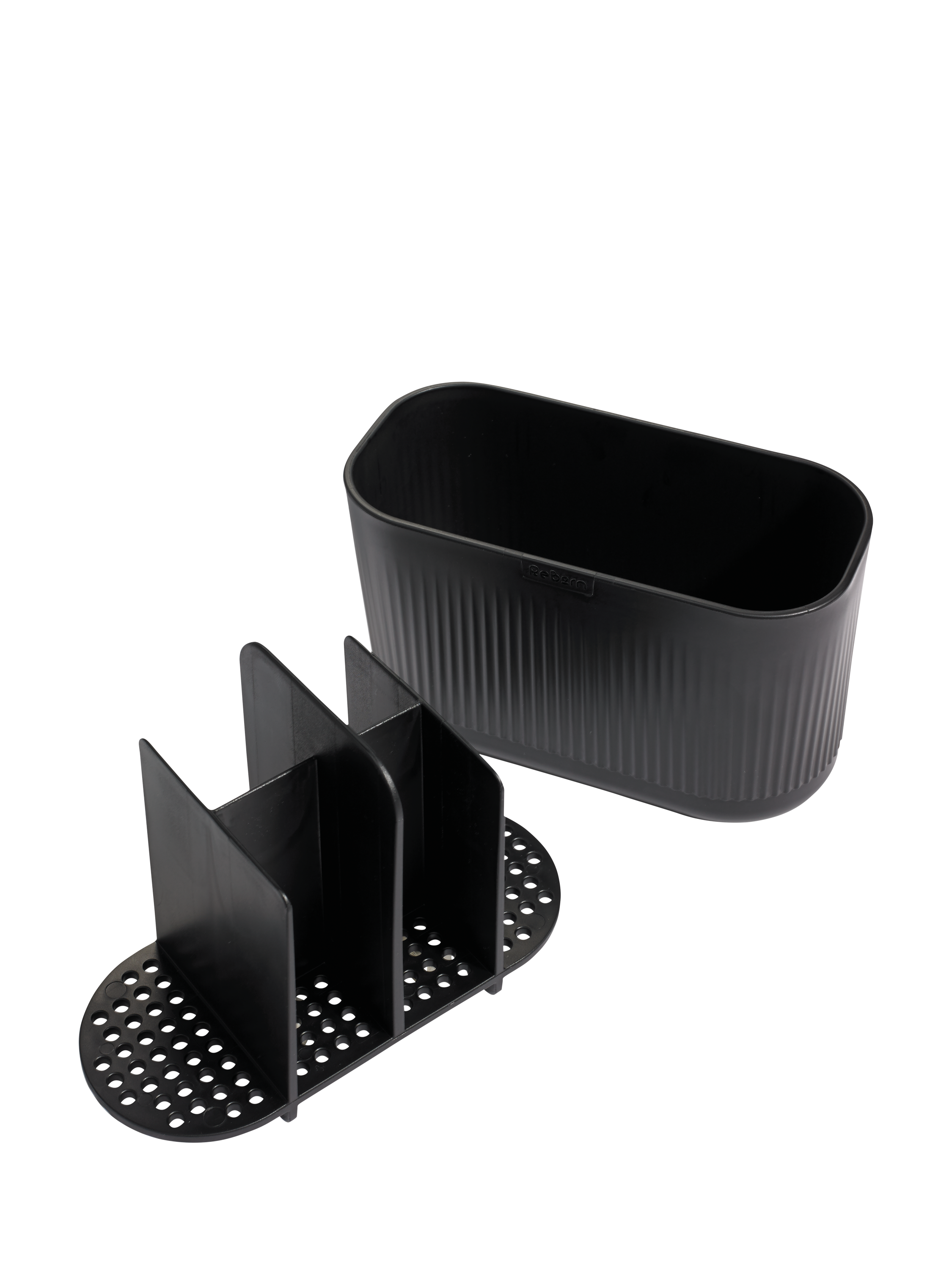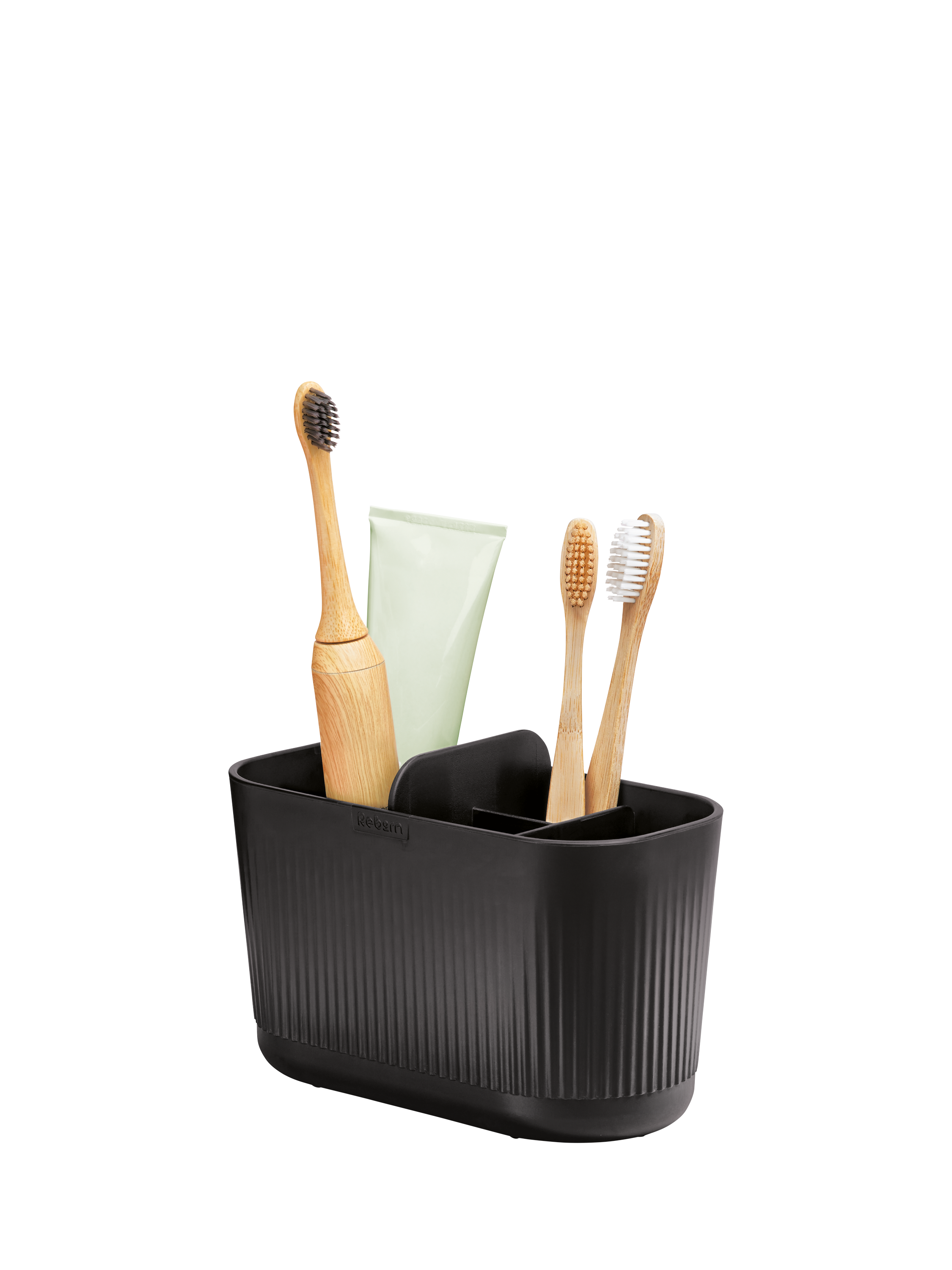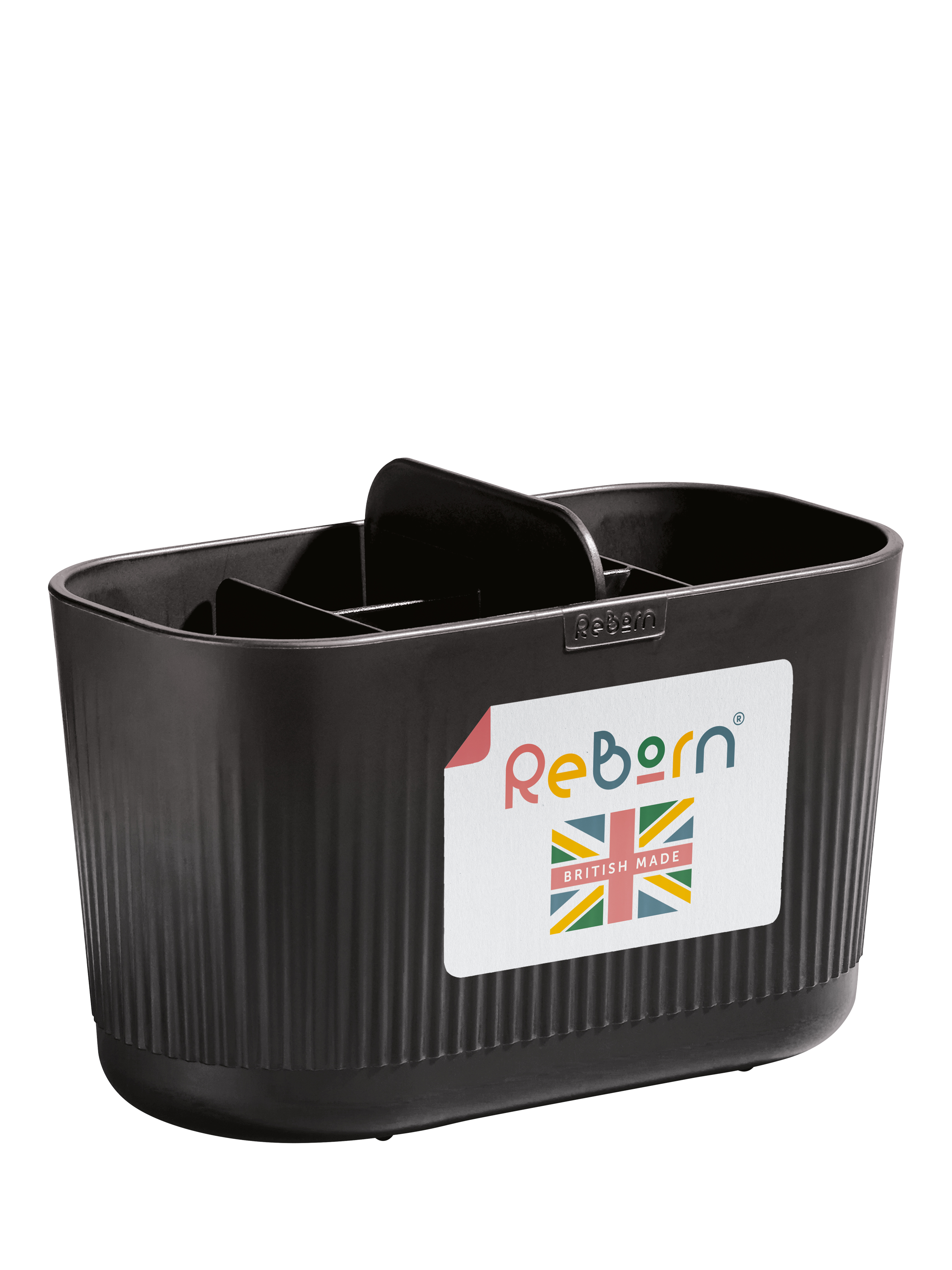 Made from recycled materials, this large bathroom caddy has six compartments - four small, two large - and a raised level insert with holes for drainage.