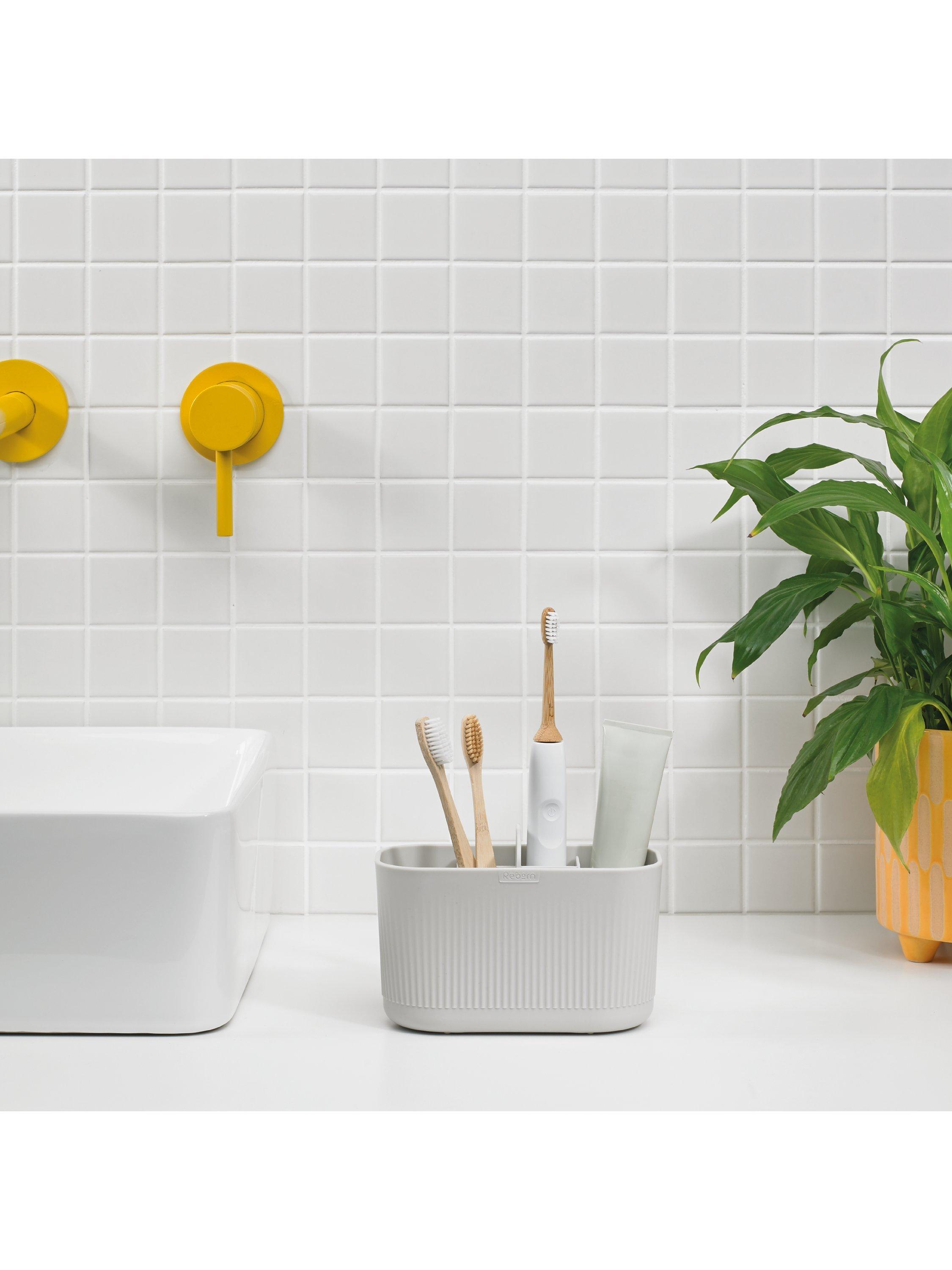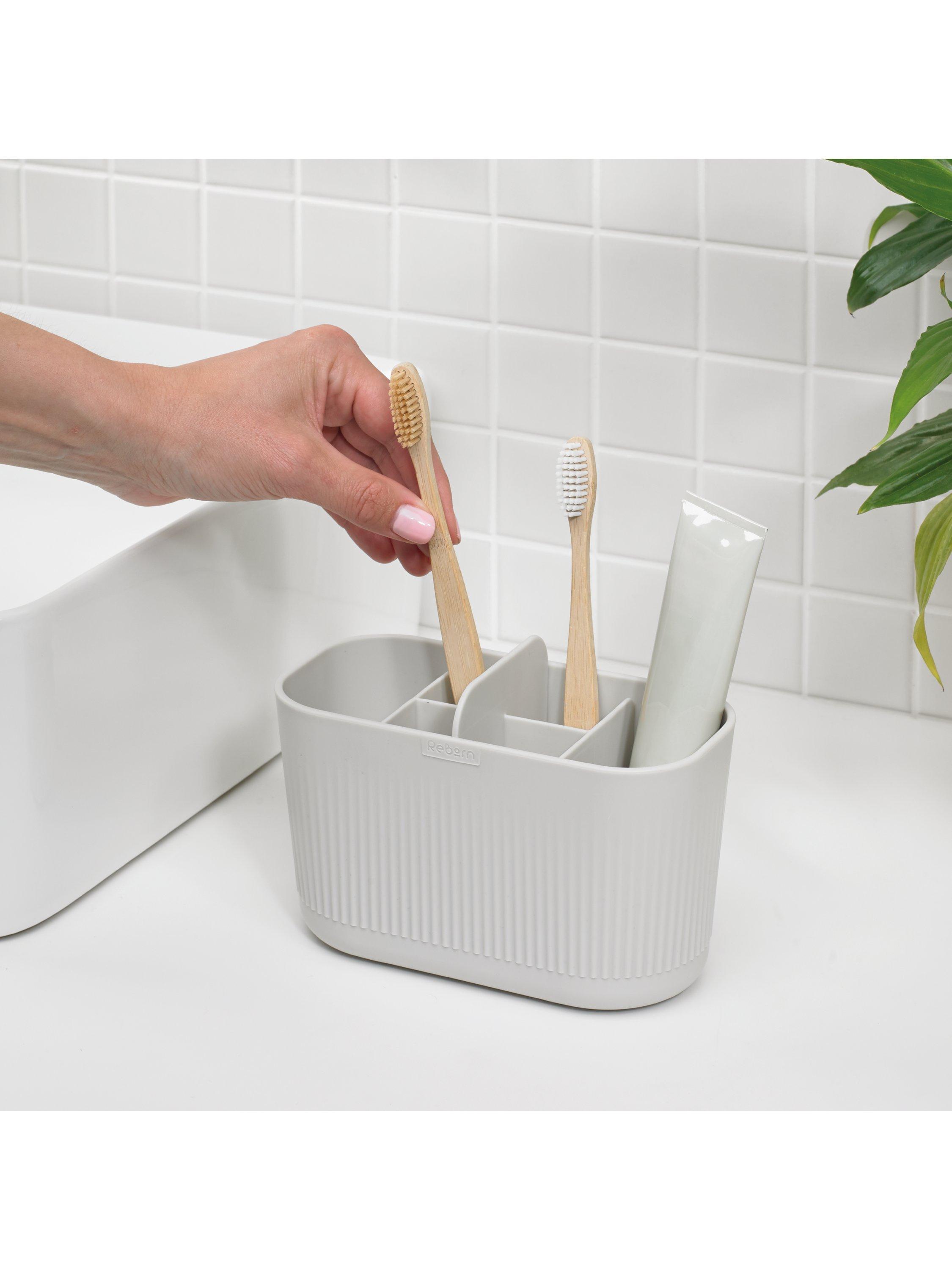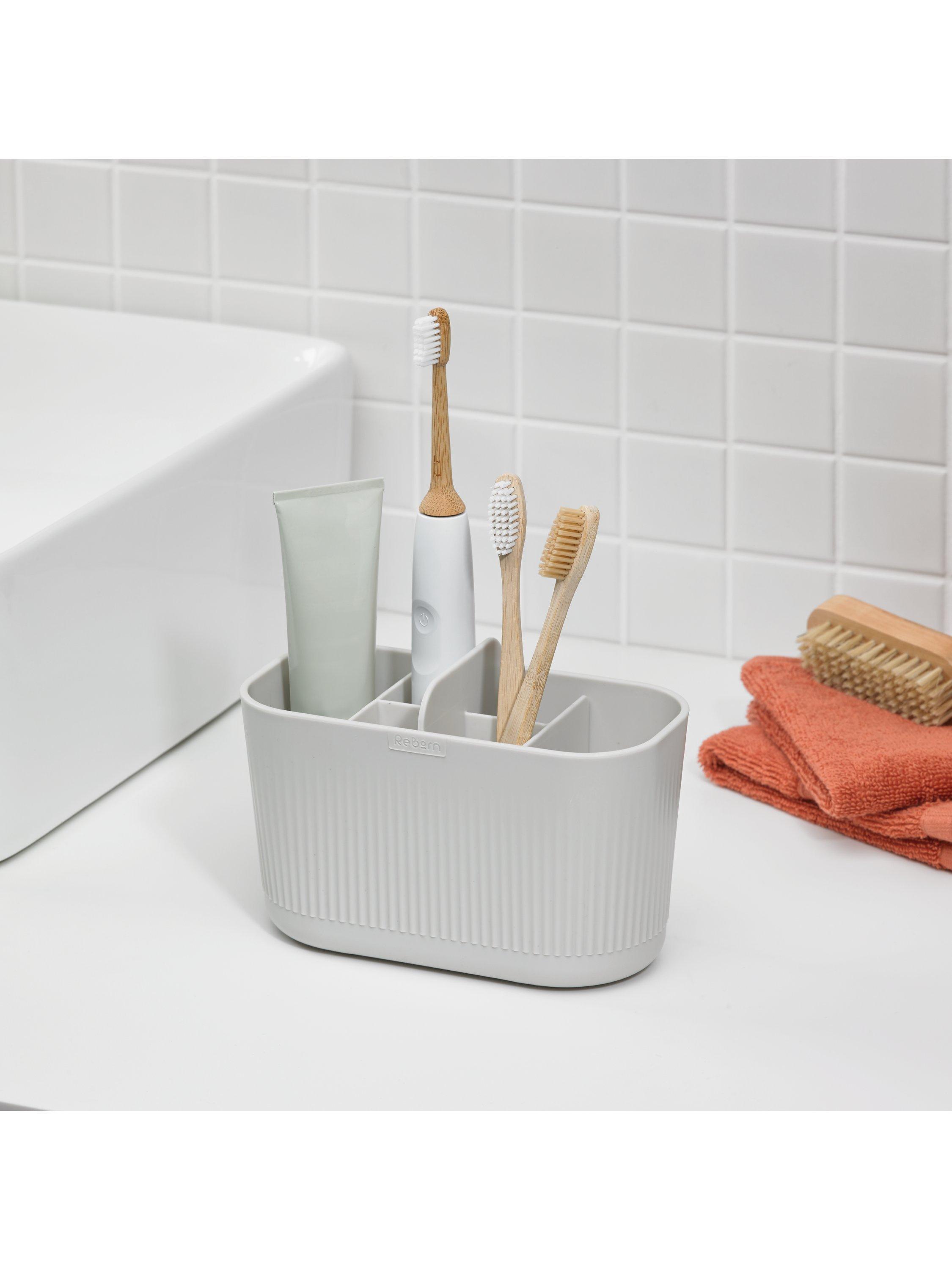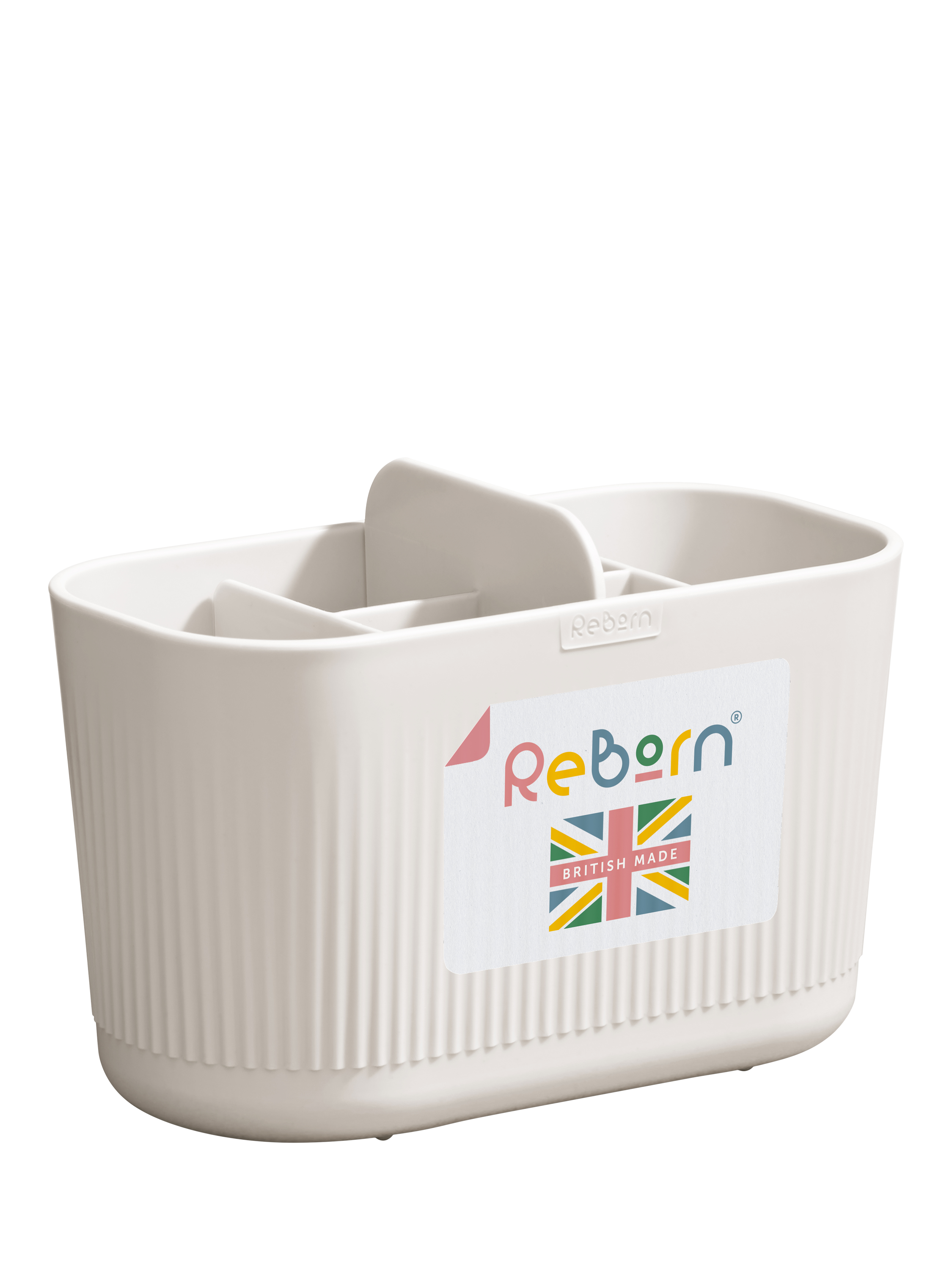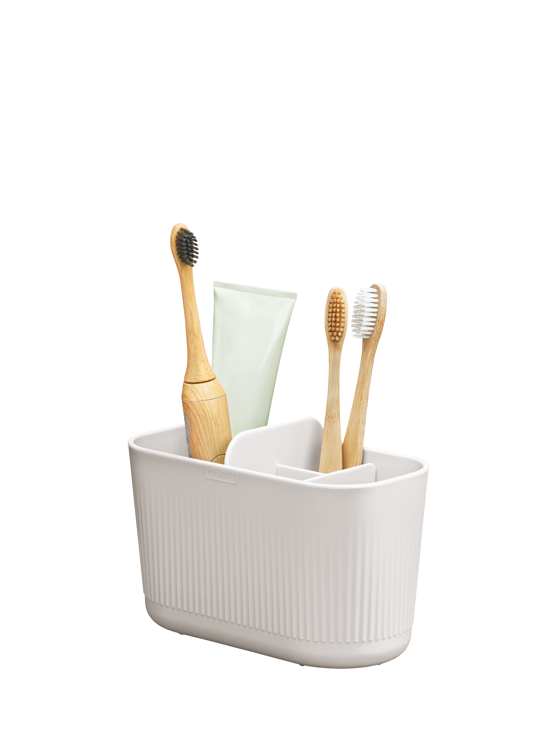 Made from recycled materials, this large bathroom caddy has six compartments - four small, two large - and a raised level insert with holes for drainage.