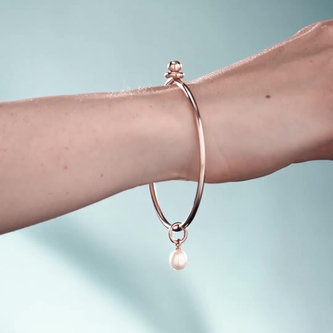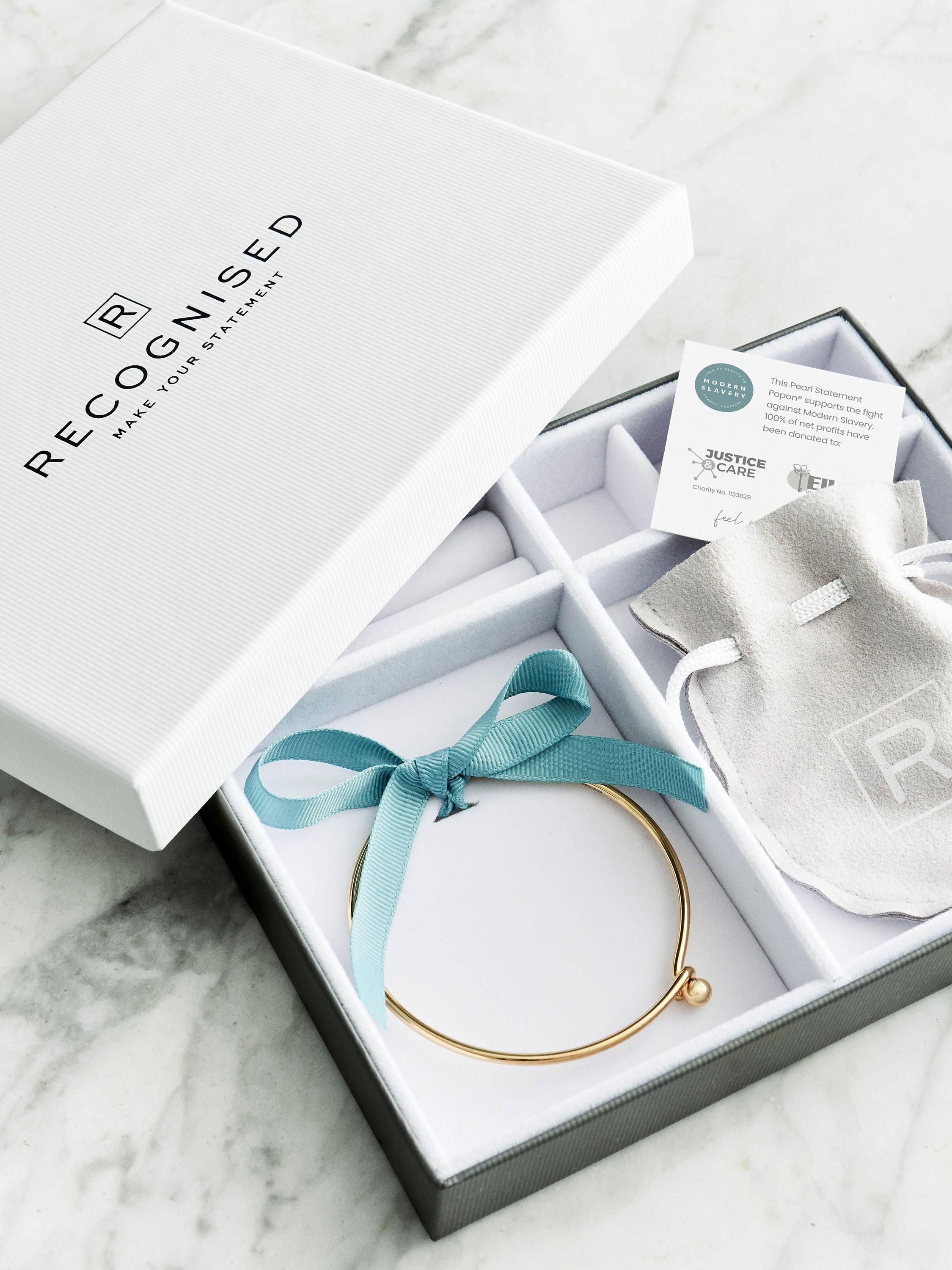 This Recognised Bangle and Pearl Popon pendant is a beautiful and meaningful gift. The Freedom Pearl Popon recognises those working to create a world free of slavery, bring perpetrators to justice and provide support and aftercare to victims. The bangle features an open clasp, accommodating to most wrist sizes.