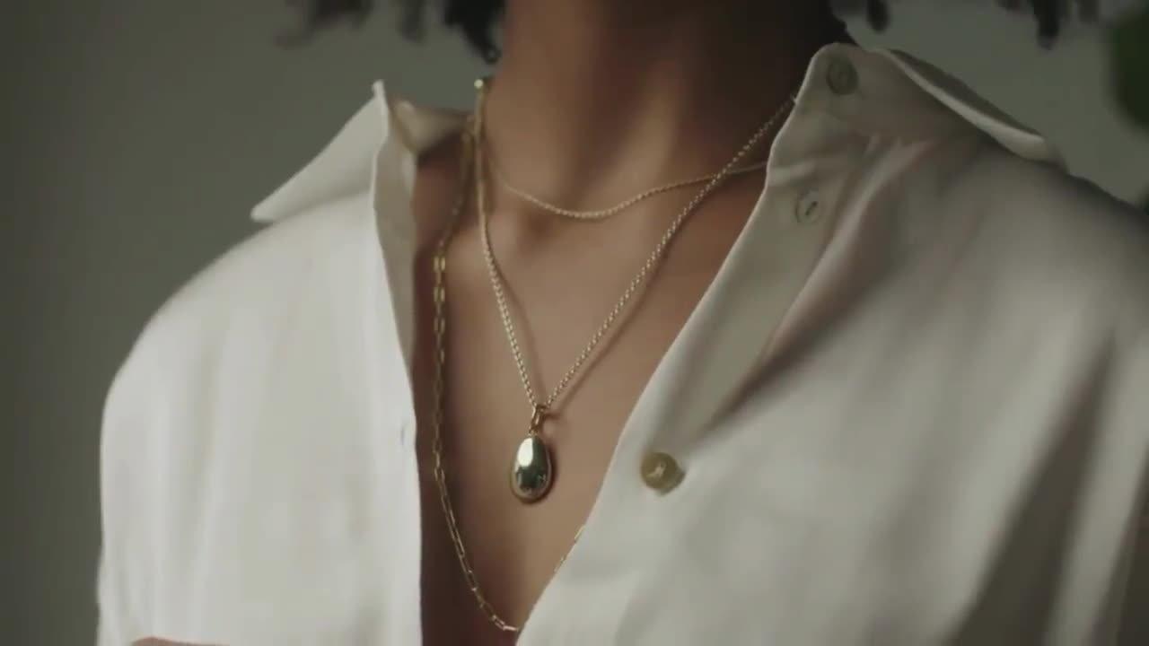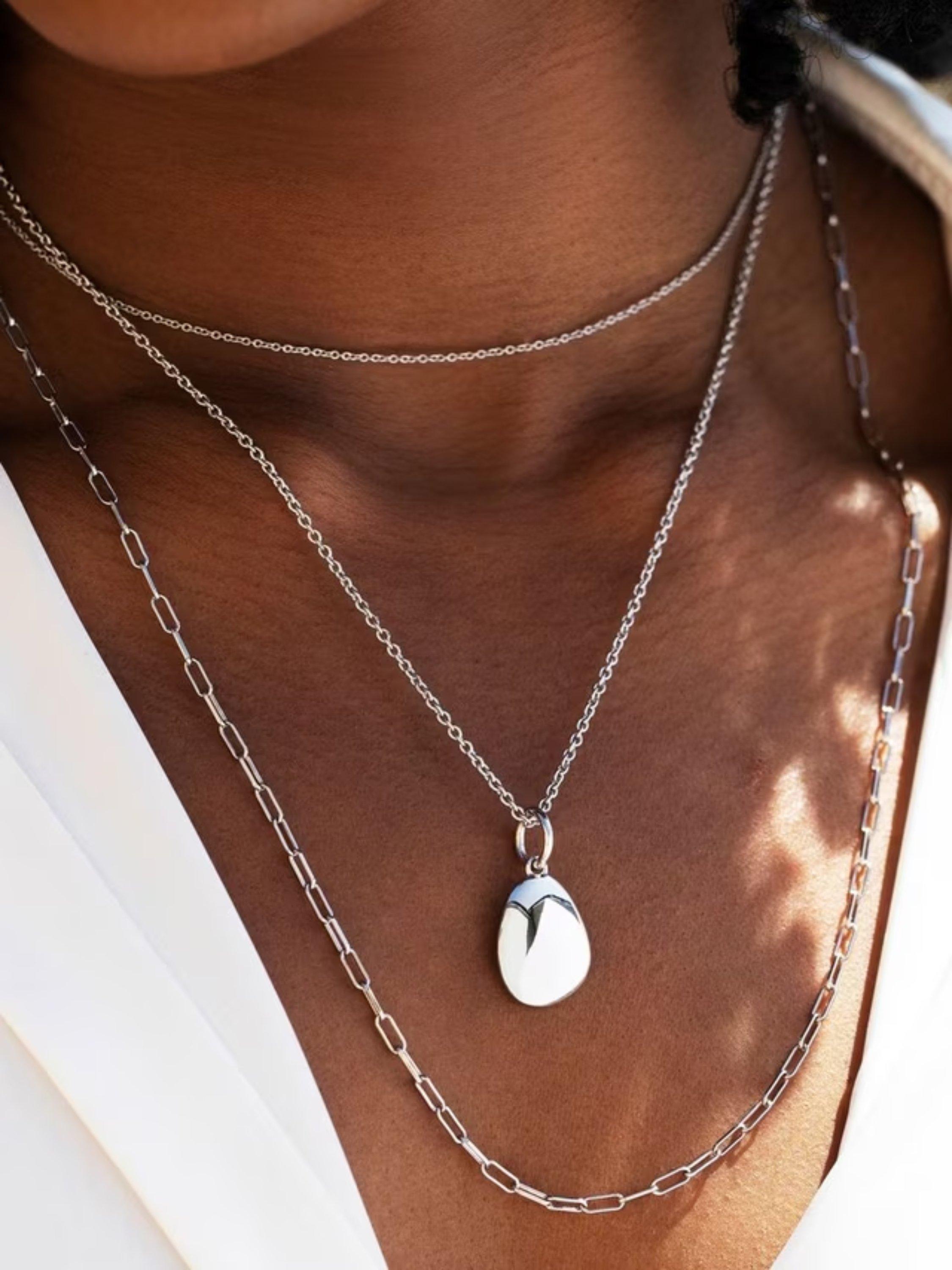Inspired by nature, this pendant necklace features an organic pebbled-shaped pendant with a stunning polished finish.