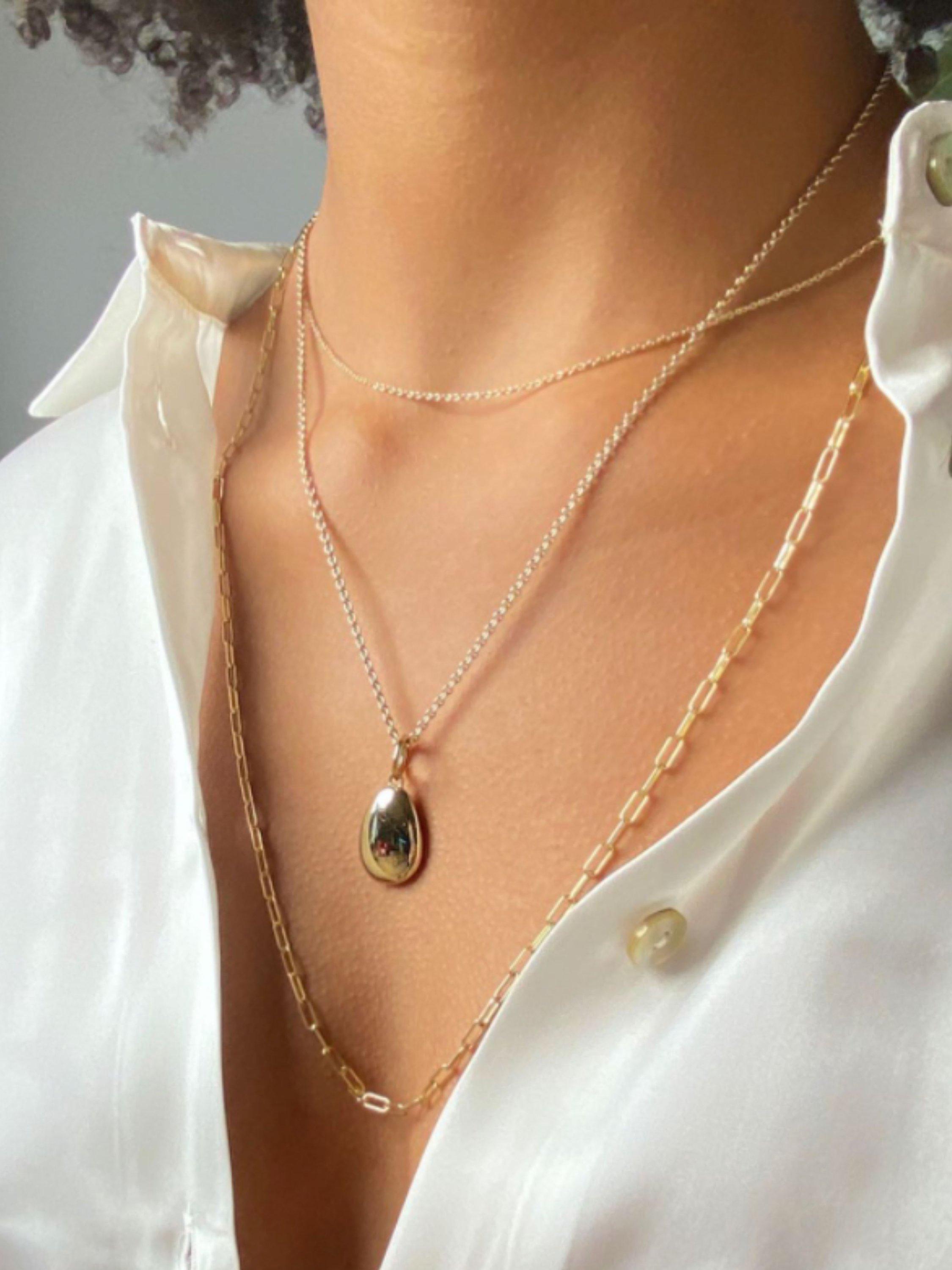 Inspired by nature, this pendant features an organic pebbled-shaped pendant with a stunning polished finish.