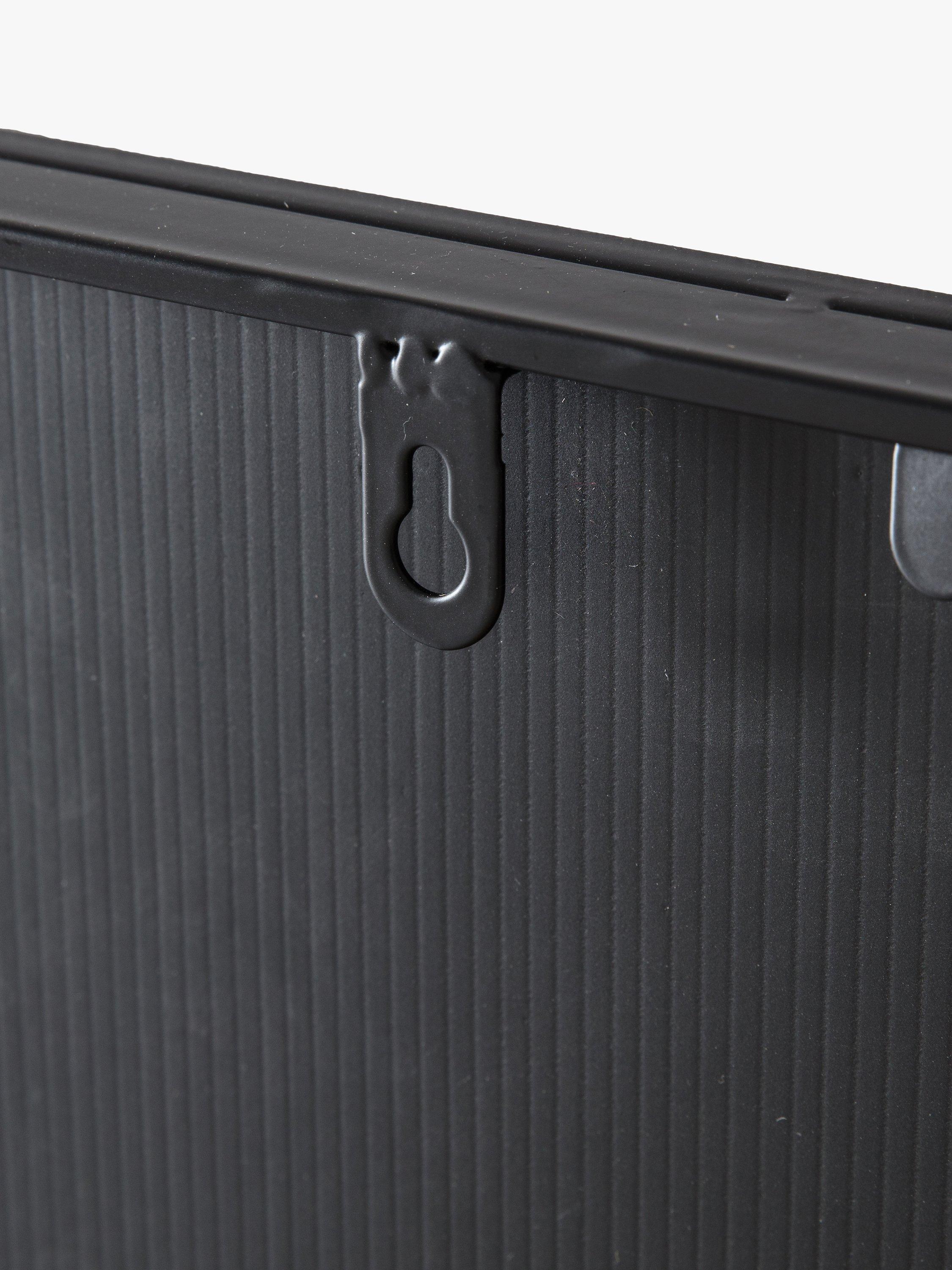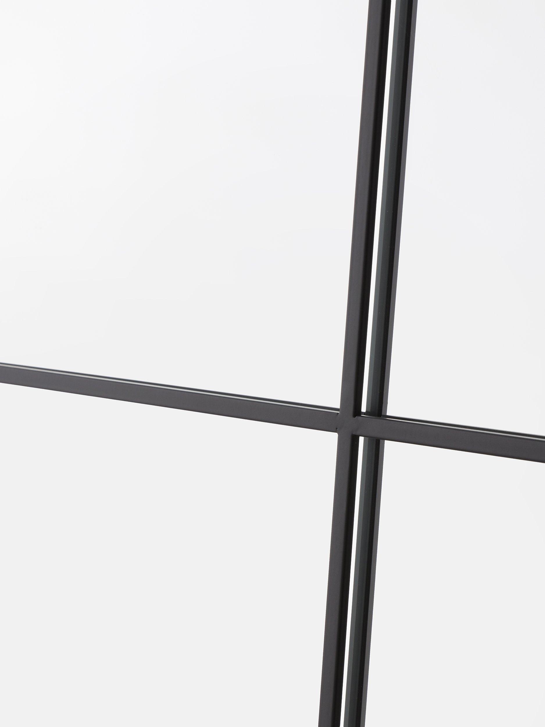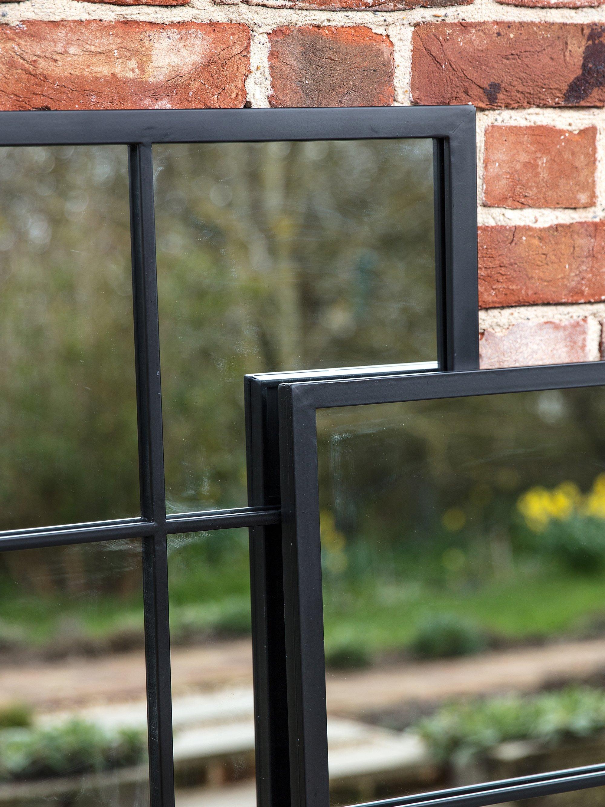 A contemporary rectangular metal frame mirror with six panes of glass. This design has a protective painted finish making it suitable for outdoors as well as indoors. It's ready to hang on your wall using the fittings on the back.