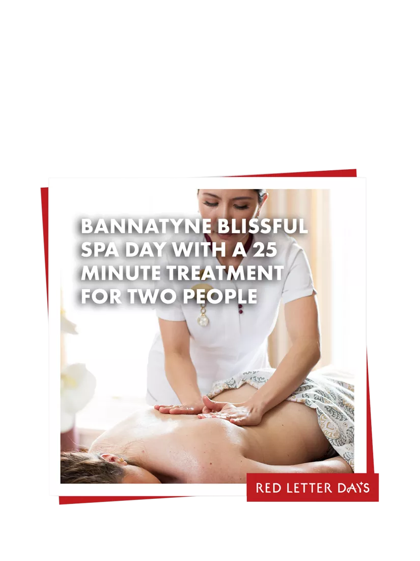 Step into a world of tranquillity with an indulgent spa day for two at a luxurious Bannatyne Health Club. Leave the stresses of everyday life behind as you each enjoy a blissful 25-minute treatment, handpicked from an irresistible menu of rejuvenating facials, muscle-melting massages, and silky-smooth body scrubs. Every touch is designed to soothe your senses and restore your glow.