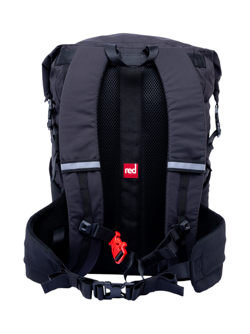 Optimised for all-day comfort, featuring a soft, padded, breathable back panel, ergonomic shoulder straps, and a supportive waistbelt with stash pockets. Storage includes secure internal and water-resistant external zip pockets, plus two double-mesh bottle stashes. Finished with reflective detailing, an external bungee system, and a robust reinforced base, it’s adventure-ready for exploring the shoreline and beyond.