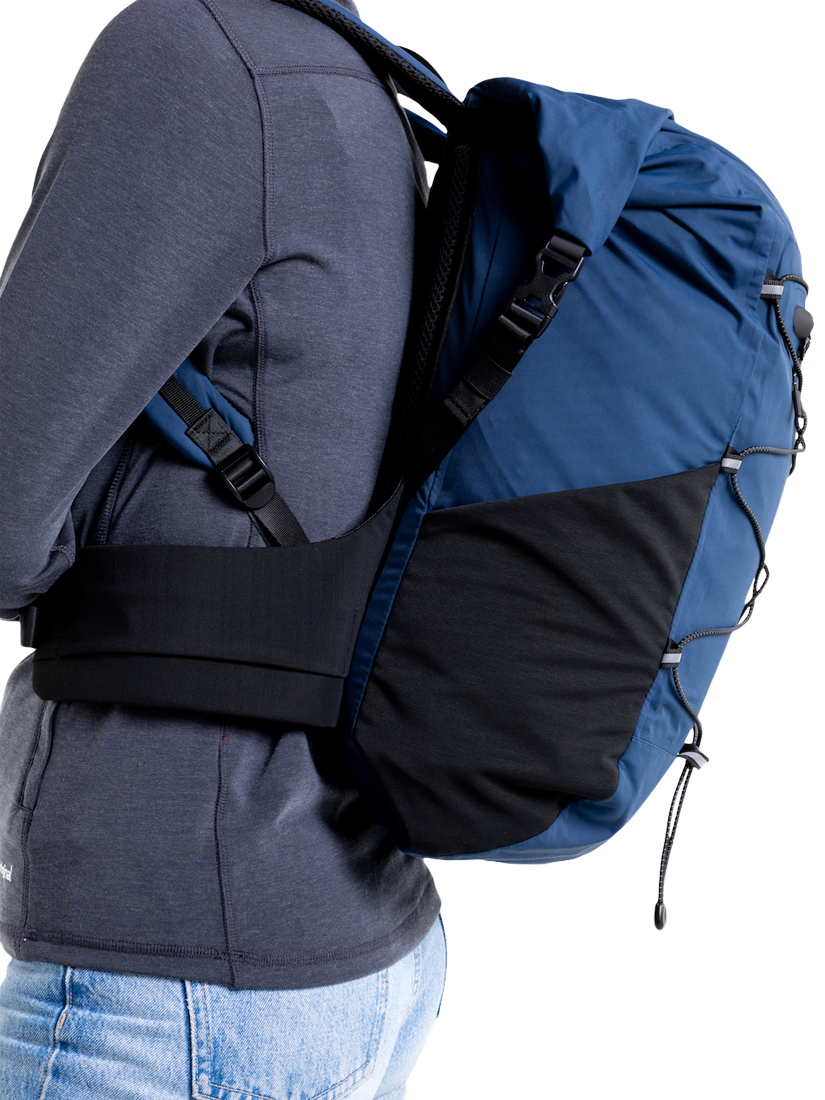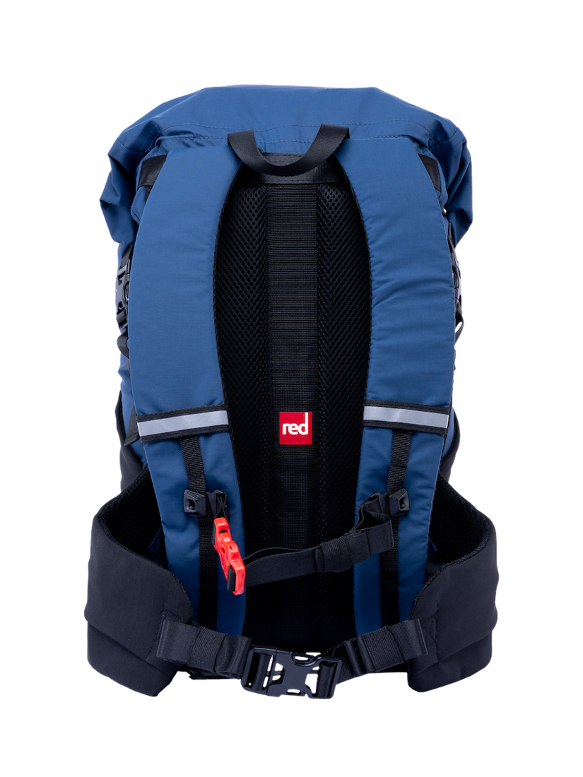 Optimised for all-day comfort, featuring a soft, padded, breathable back panel, ergonomic shoulder straps, and a supportive waistbelt with stash pockets. Storage includes secure internal and water-resistant external zip pockets, plus two double-mesh bottle stashes. Finished with reflective detailing, an external bungee system, and a robust reinforced base, it’s adventure-ready for exploring the shoreline and beyond.