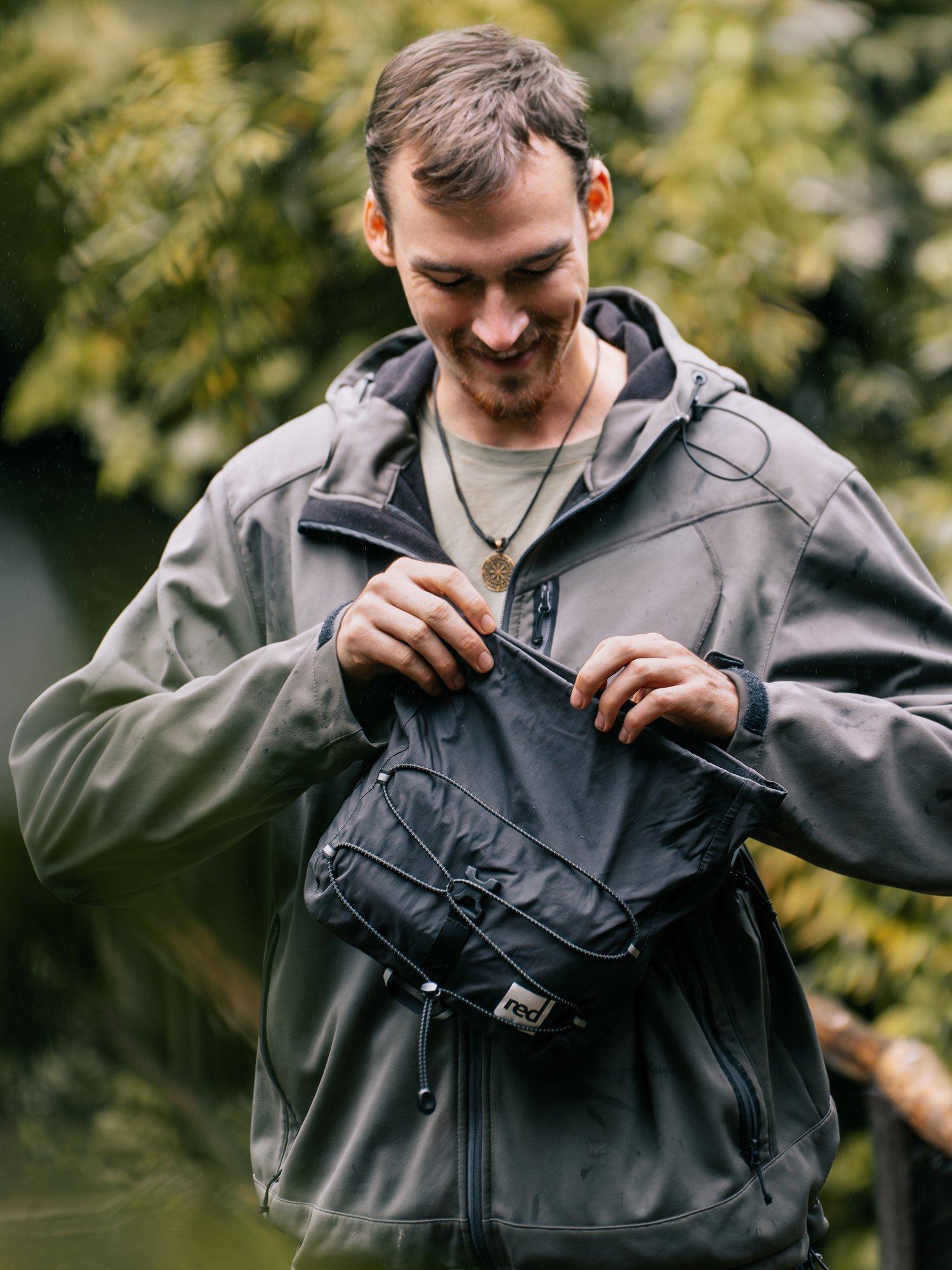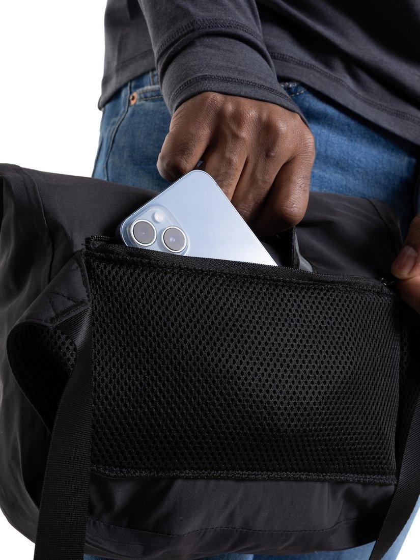 Protecting essentials from the elements without bulk, it’s made from supple, abrasion-resistant nylon Taslan with non-toxic PFC-free DWR waterproofing. The roll-top closure with magnetic poppers is reliably weather-resistant yet easy to access, secured with an adjustable quick-release cross-clip.