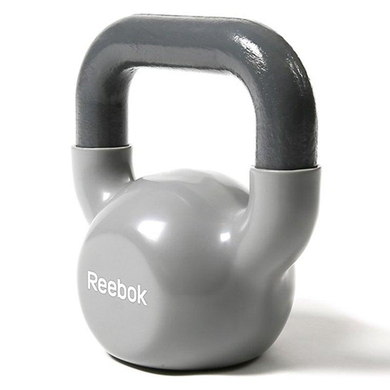 Reebok's Kettlebell has a glossy vinyl coating in a calming colour. The handle is smooth and shaped to comfortably sit in your hand.