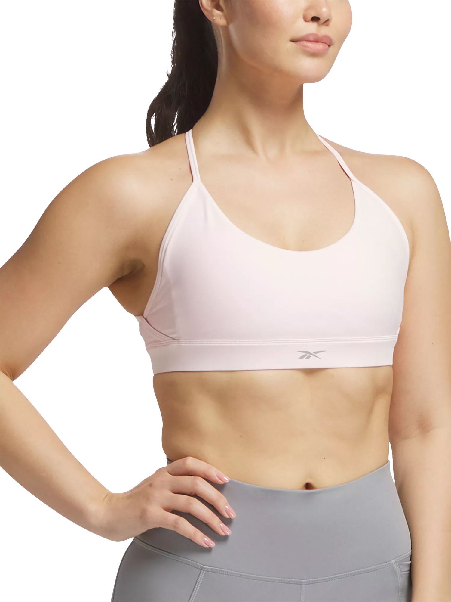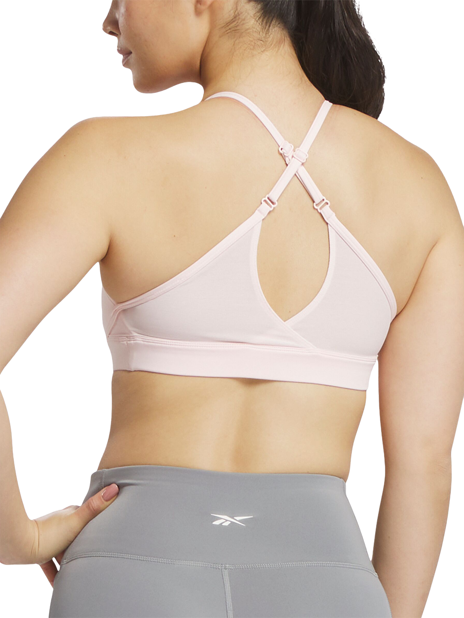 This soft, medium-support training bra is made from a polyester-elastane knit, offering a secure yet flexible fit suited for gym work, circuits, or studio classes. Slim adjustable straps and a tidy underband create a streamlined, athletic shape, while subtle Reebok branding gives it an easy, modern flair.