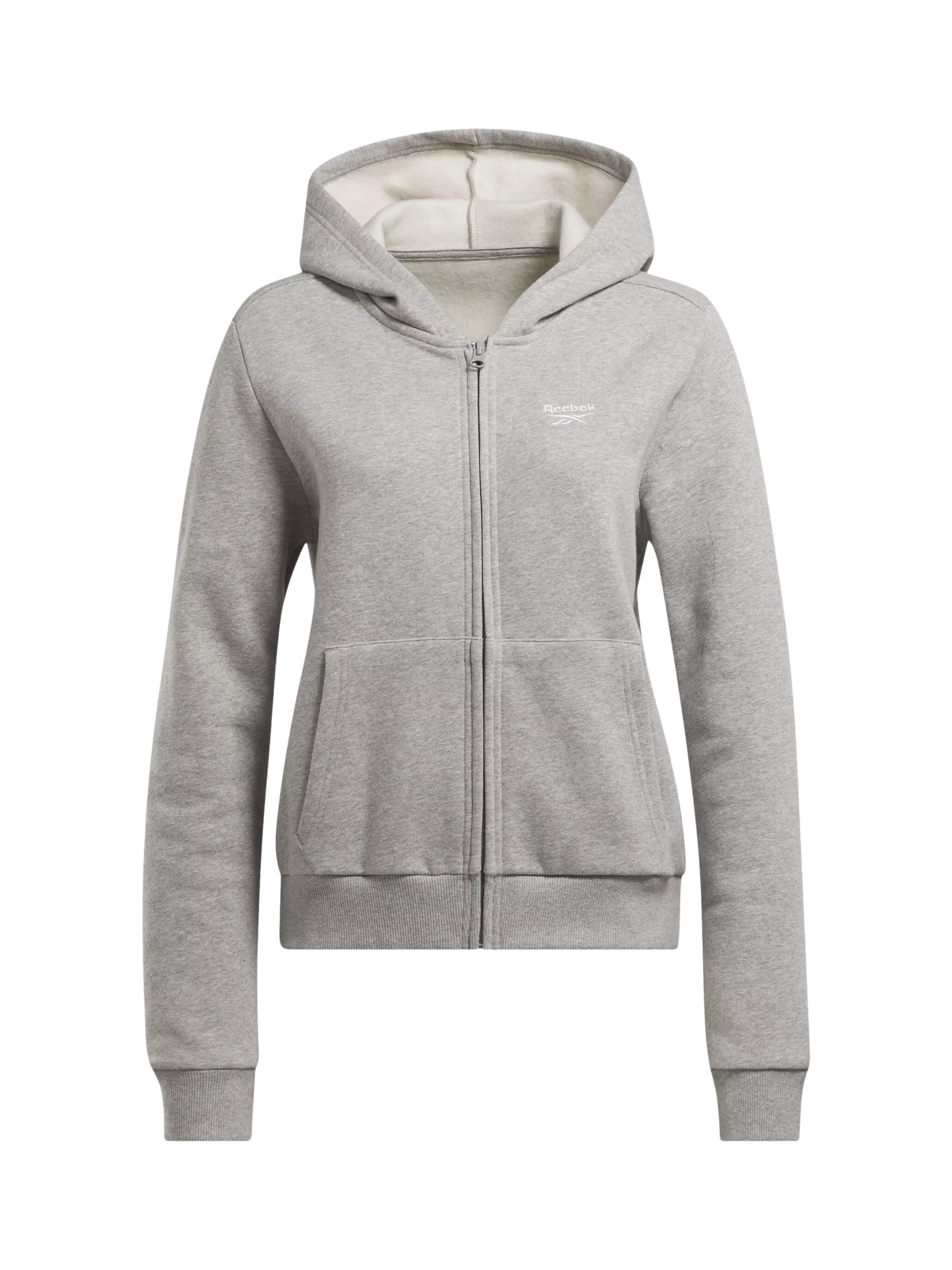 Zip up in this women's Reebok sweatshirt and show off sporty style wherever you go. The cotton-blend fleece feels soft and comfy as a layer, or all on its own. The ribbed cuffs and hem give a cosy, stay-put fit as you move