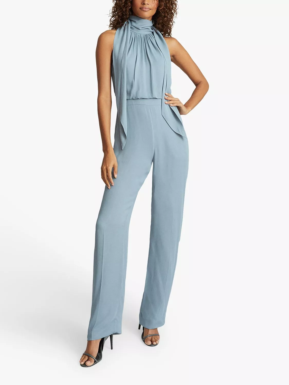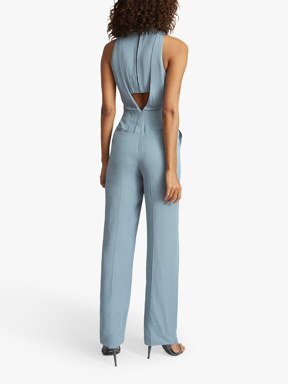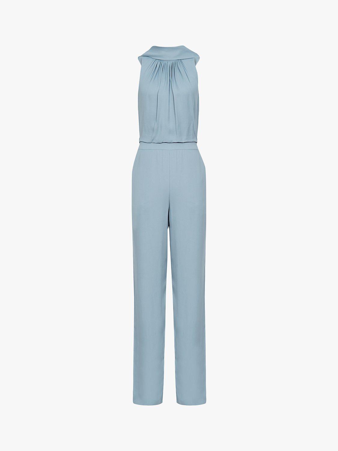 The Adele jumpsuit from Reiss is tailored to a sleeveless, straight-leg design. The front features a high, gathered neckline while the open-back is detailed with a matching insert. Make it your go-to come event season, adding an oversized clutch and open-toe heels to complete a contemporary yet feminine look.