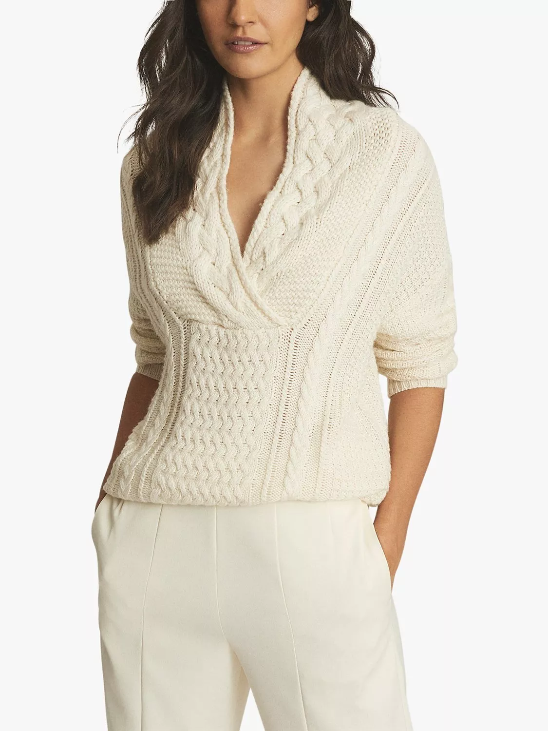 Elongating your frame with a v-shape neckline this chunky jumper from Reiss has a textured design for tactile appeal in a cosy soft wool blend. Wear with sleek tailoring or cosy up with your favourite joggers.