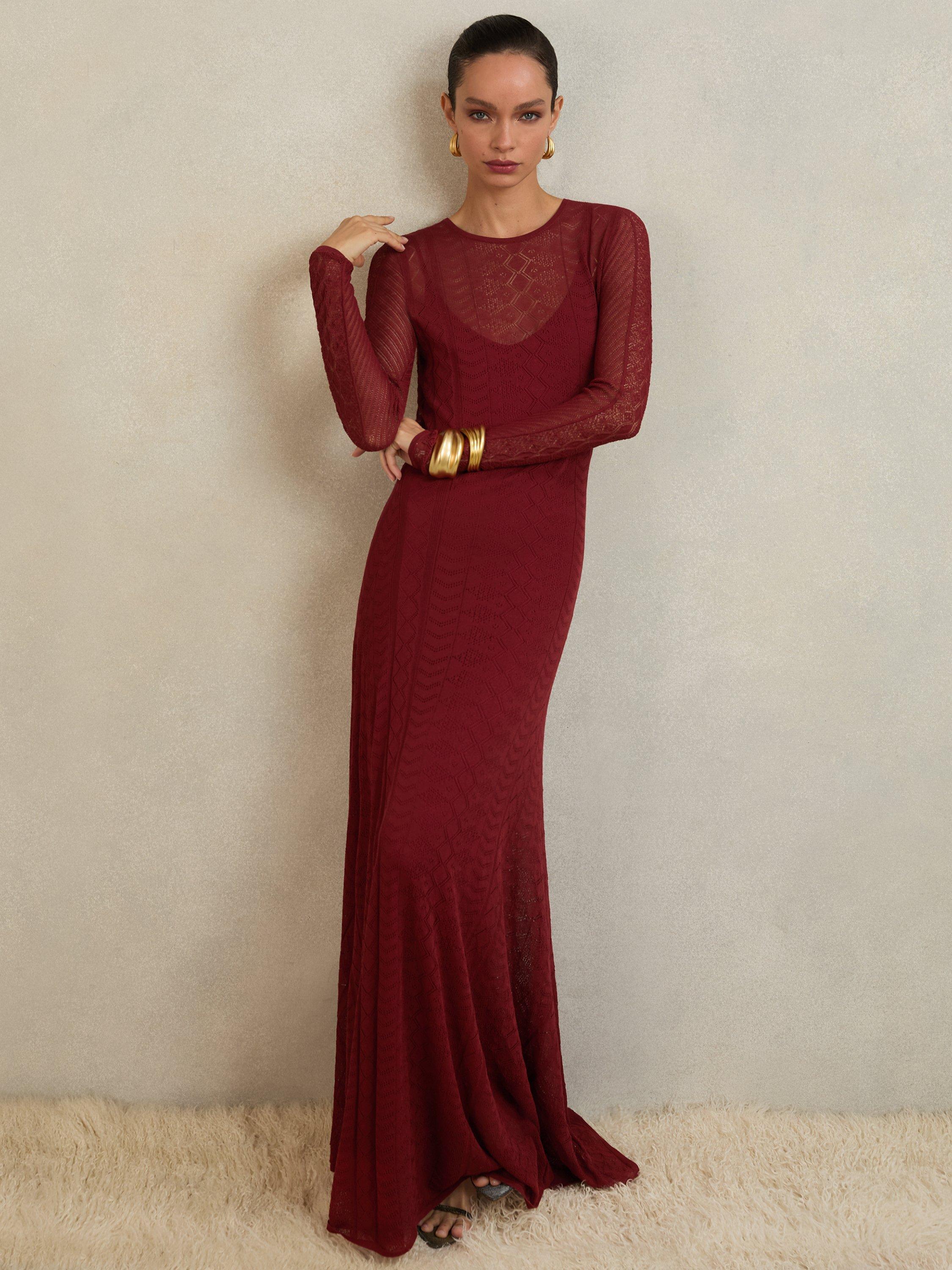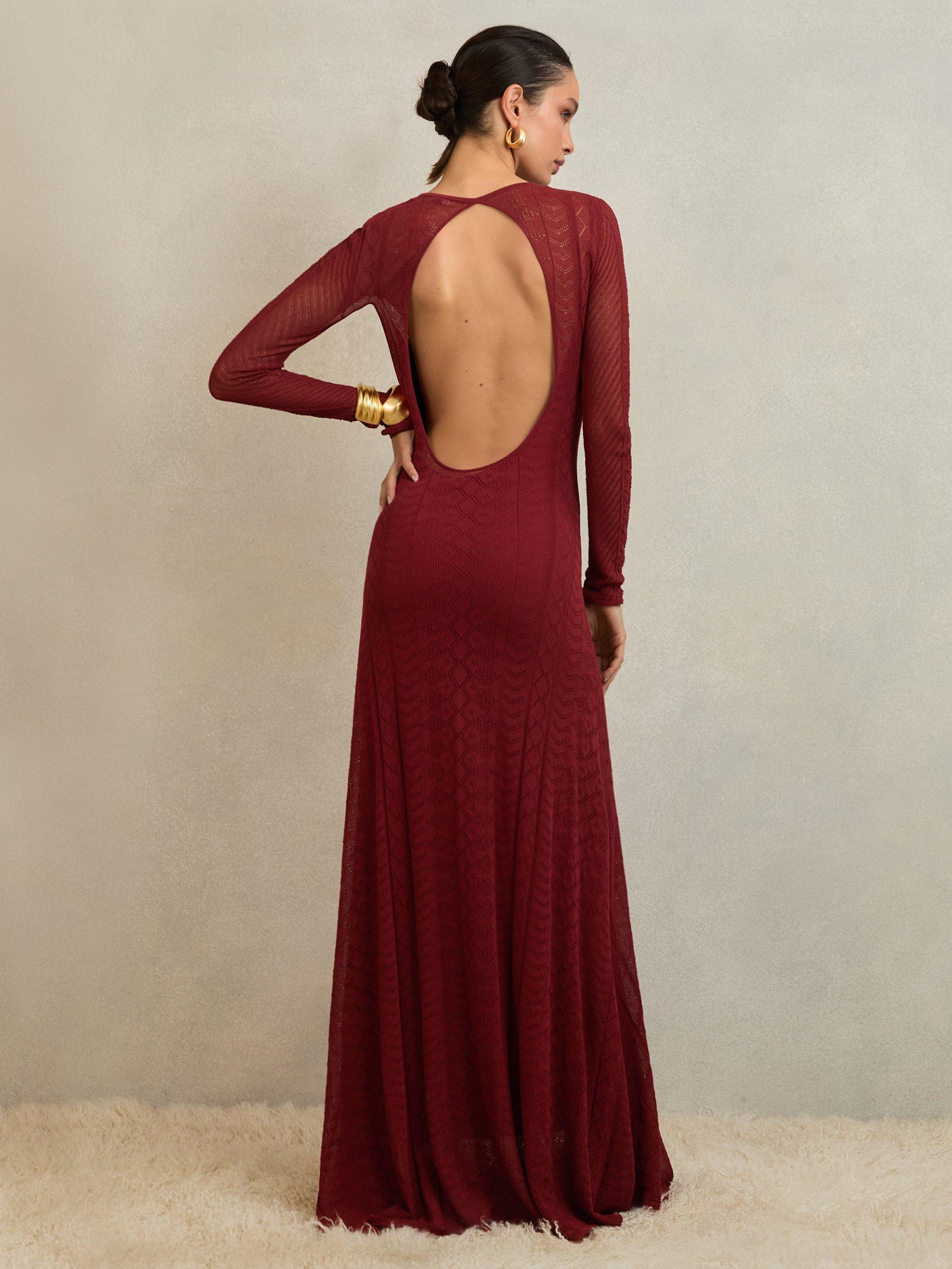 A sheath maxi dress by Reiss. With an eye-catching geometric pattern and open back, the slim fit and round neck offer a confident yet comfortable silhouette you can style in countless ways.