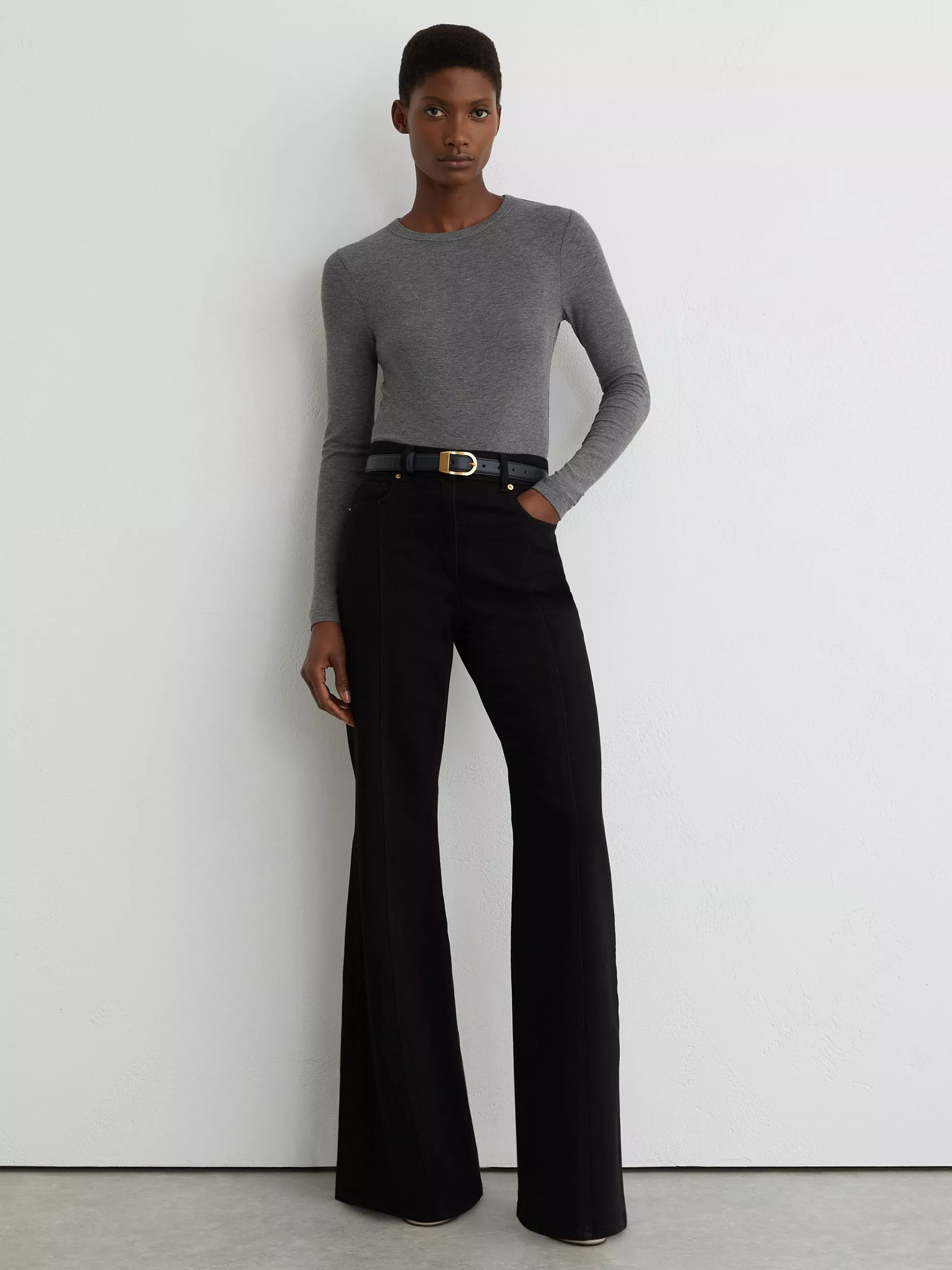A top from Reiss, made from a soft viscose blend. With a crew neck and long sleeves, it has a go-with-anything plain design. A great piece for everyday.