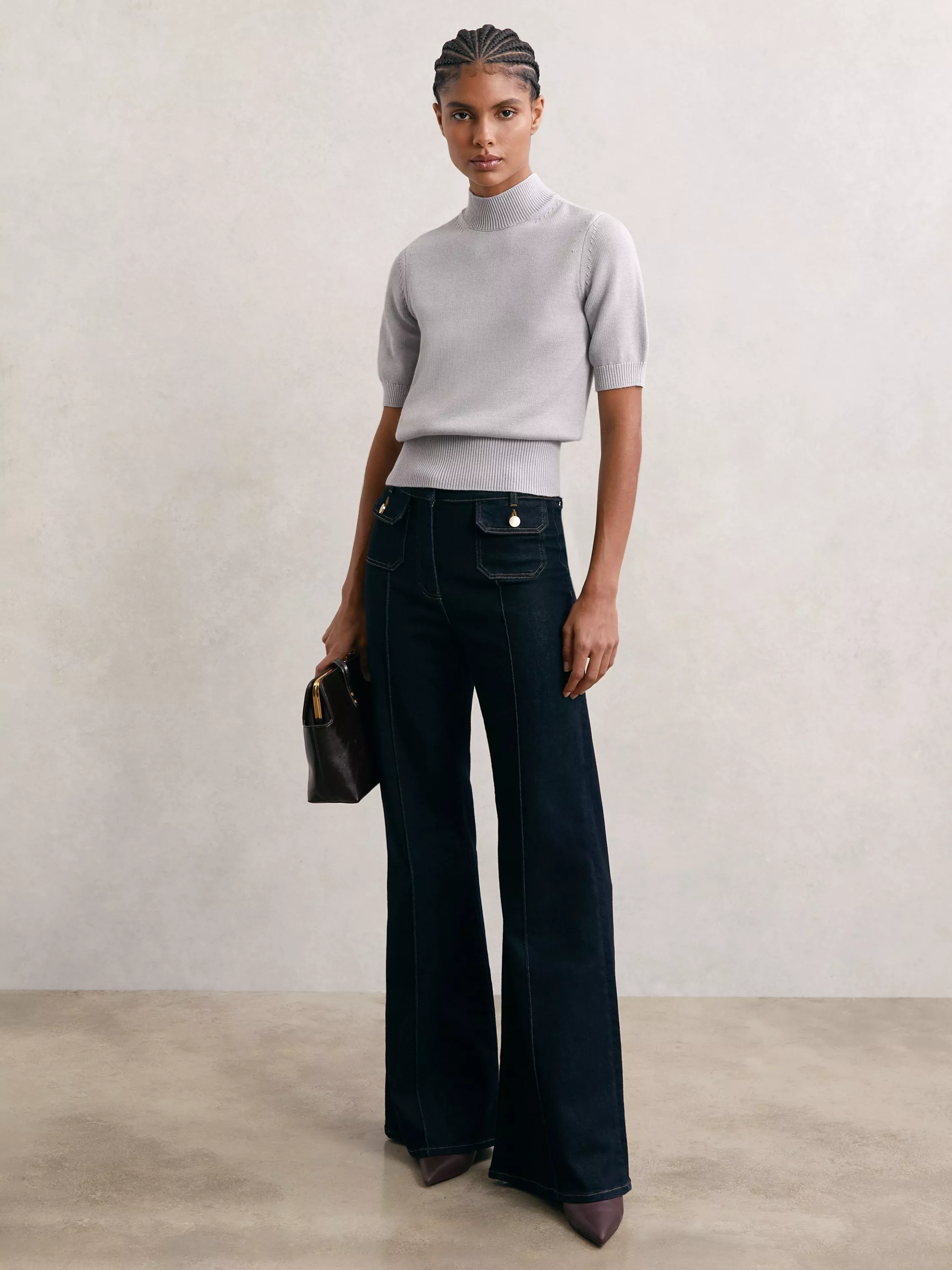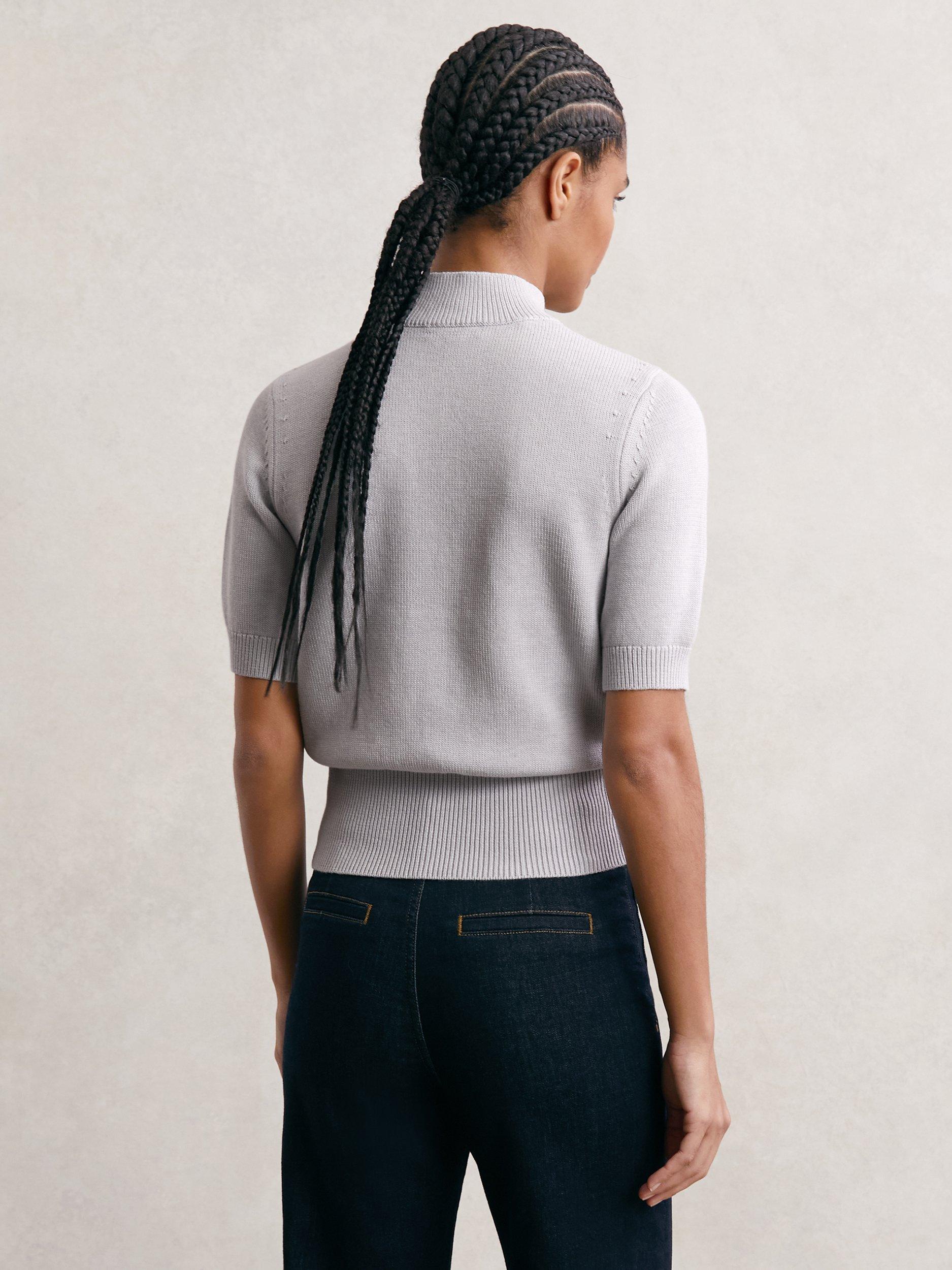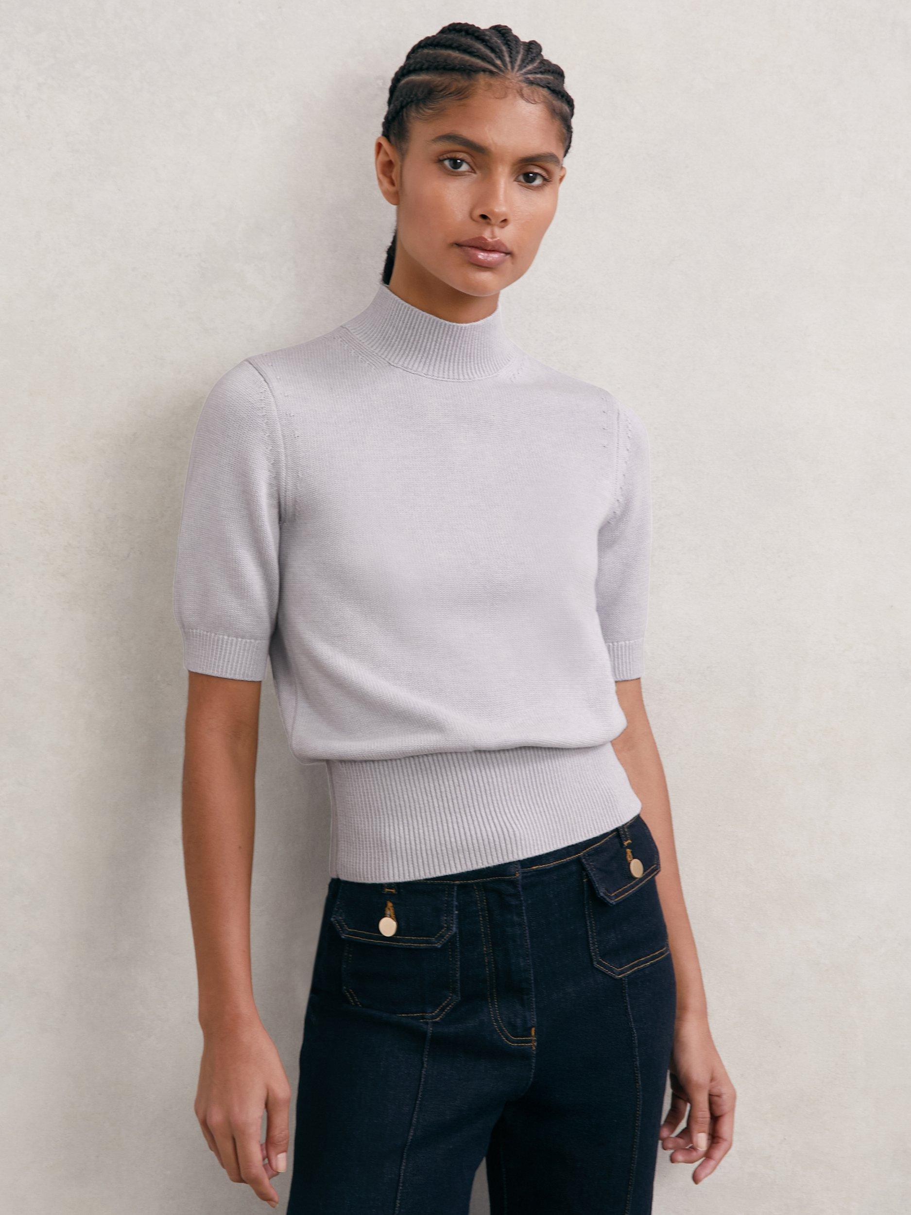 A jersey top from Reiss, woven from a wool blend. With a funnel neck and elbow length sleeves, it comes in an easily styled plain colouring. One you'll reach for again and again.