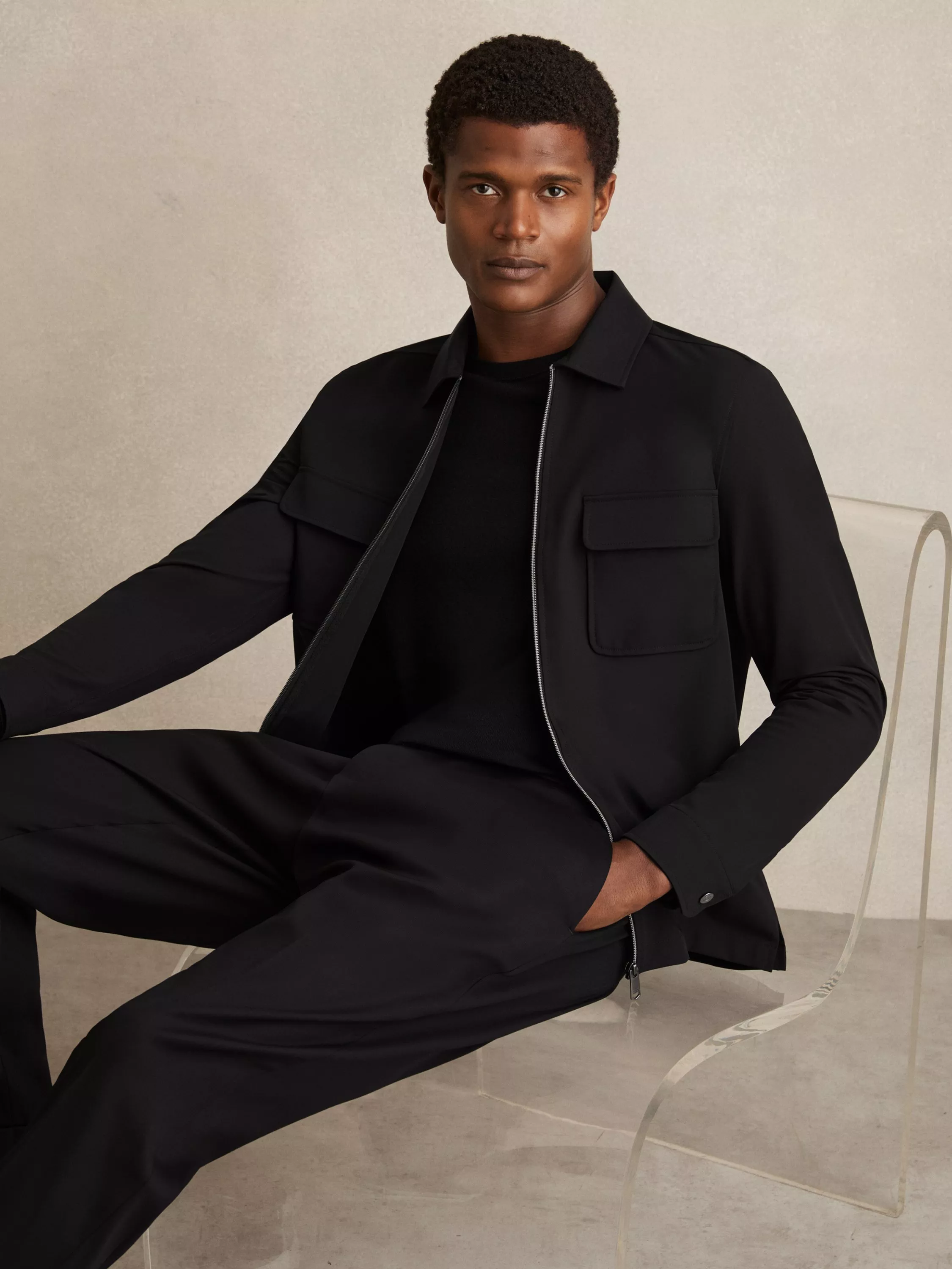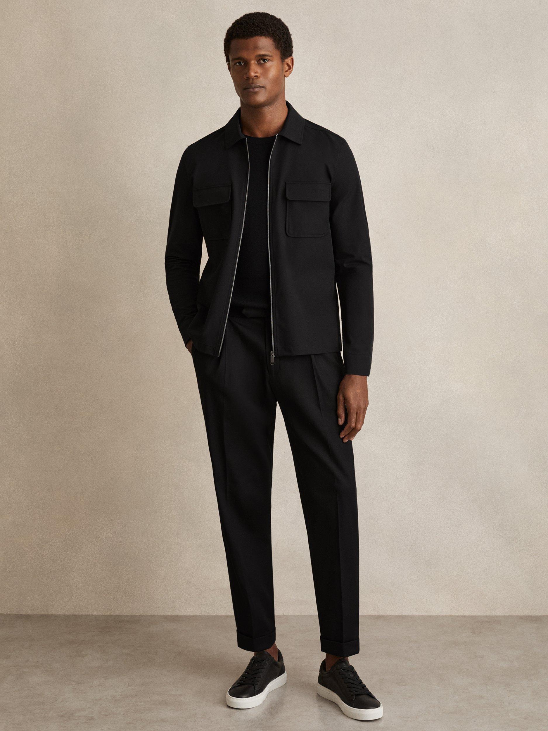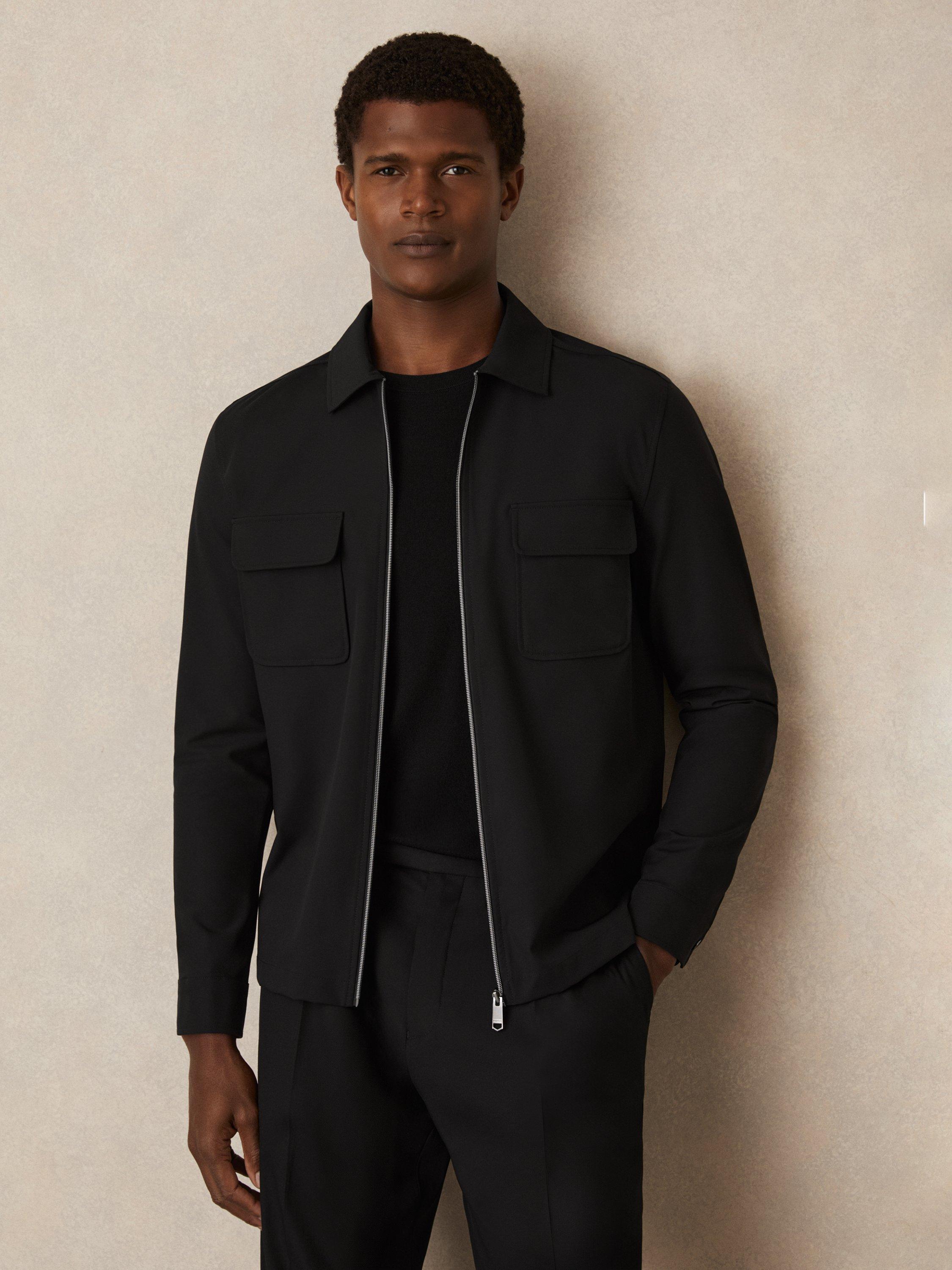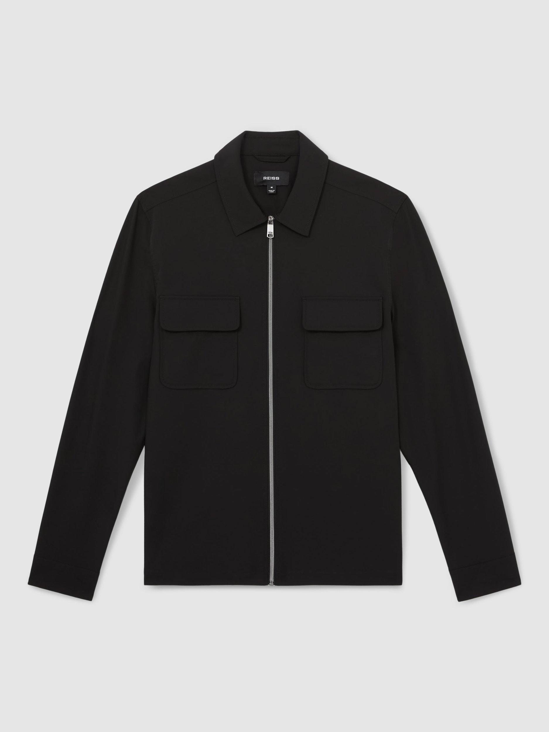 Reiss Ascend Technical Zip Through Overshirt, Black