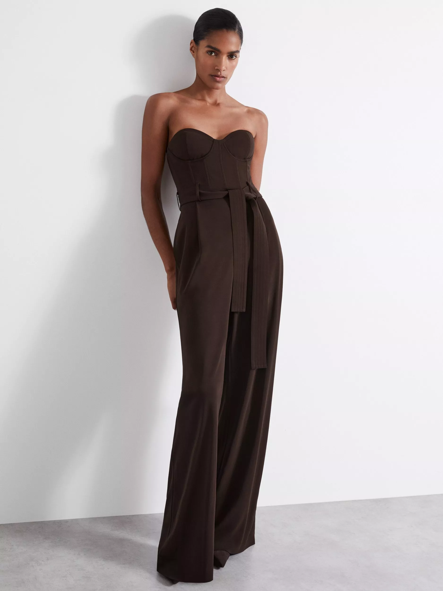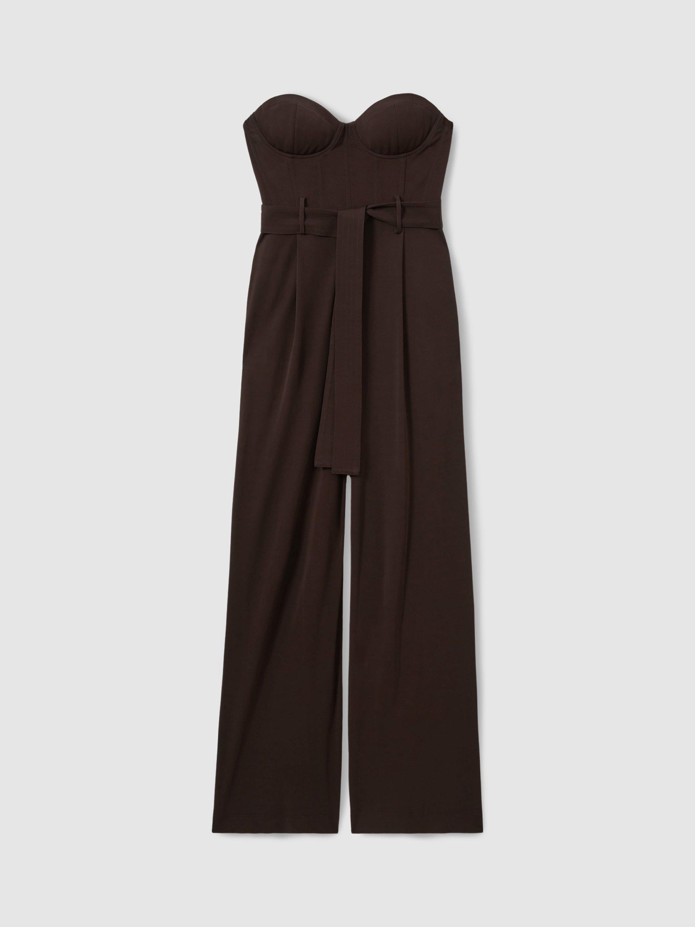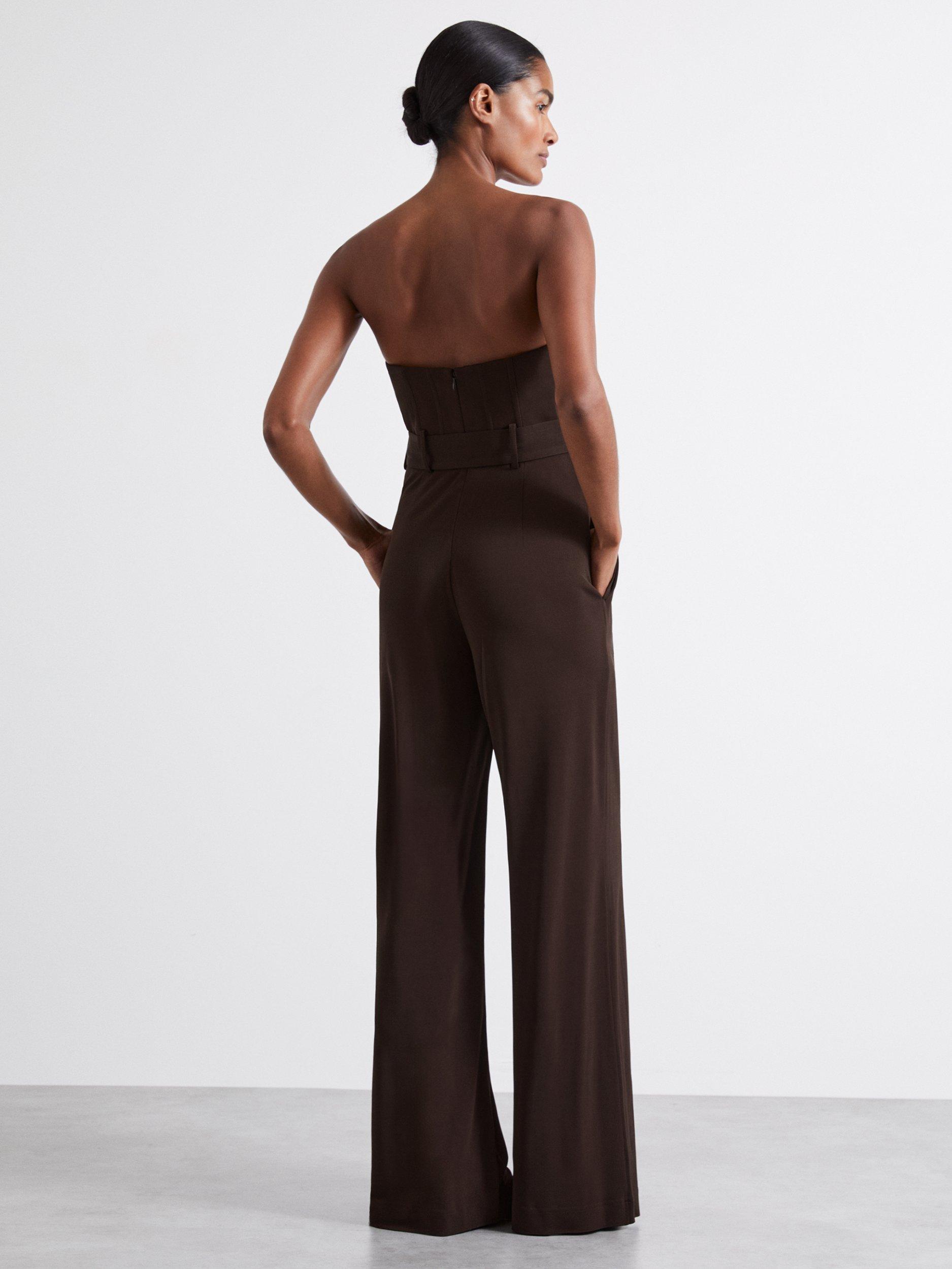Slinking down your frame from the bandeau top, this sleeveless jumpsuit by Reiss Atelier is cut to a wide-leg silhouette and is made from smooth viscose.