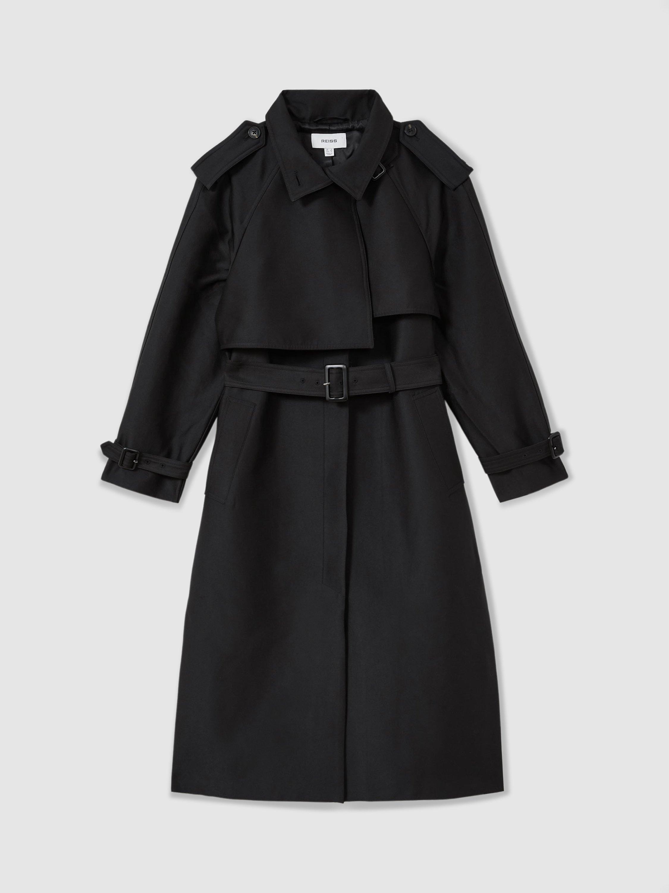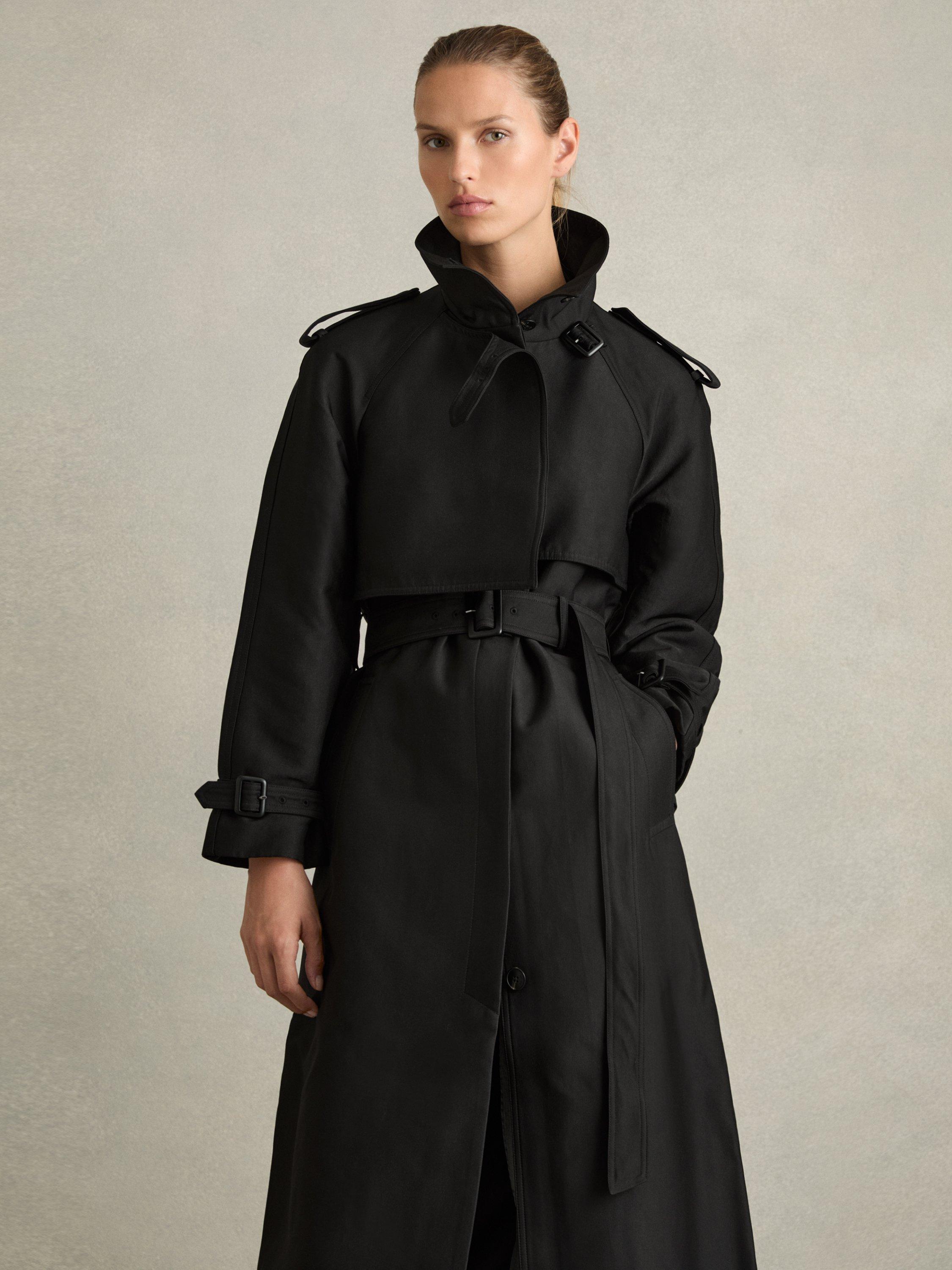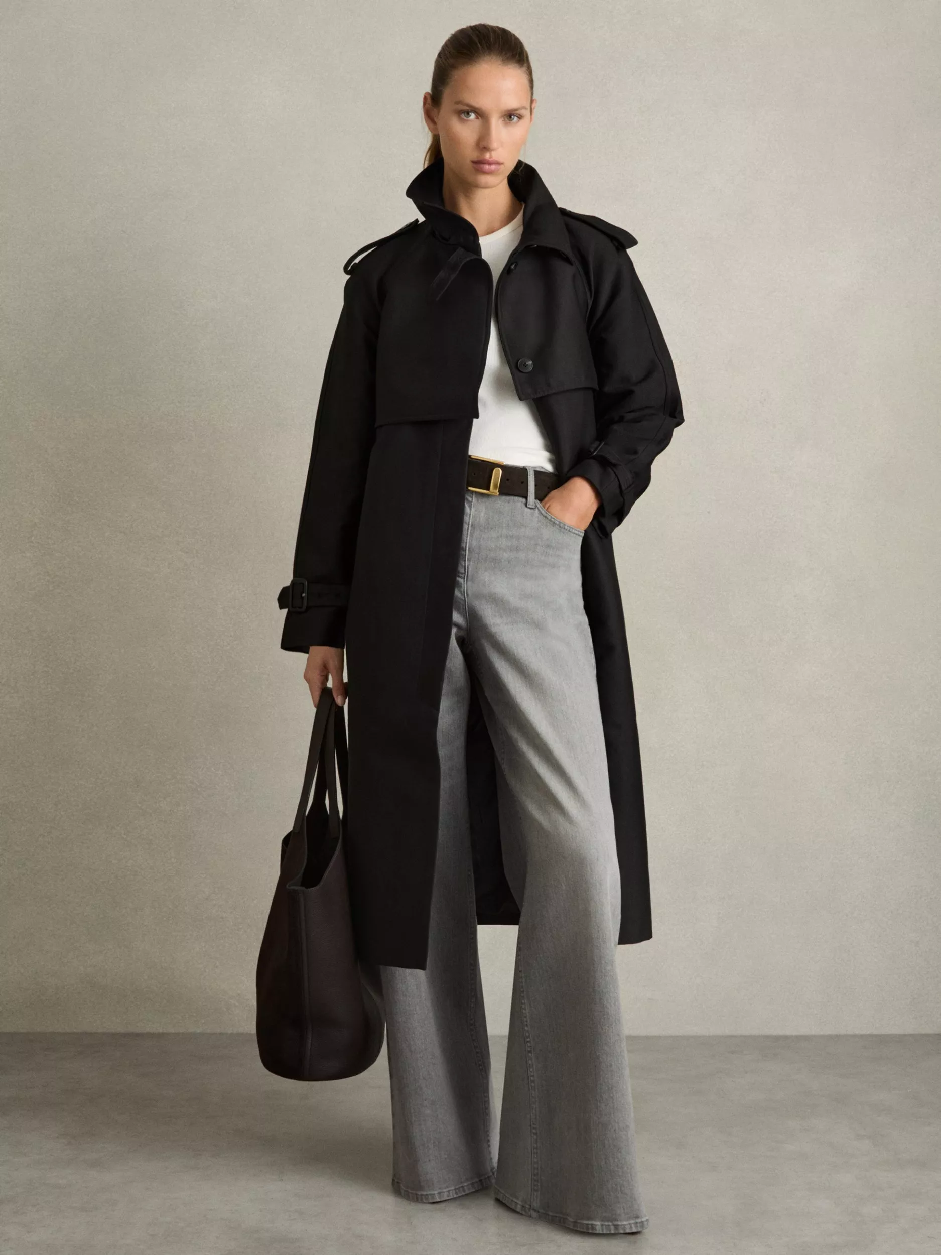 Securing its place as a must-have presence in any outerwear capsule, this mac coat from Reiss streamlines the profile with its longline cut. Framed with a collar neckline, it is made from a comfortable cotton blend.