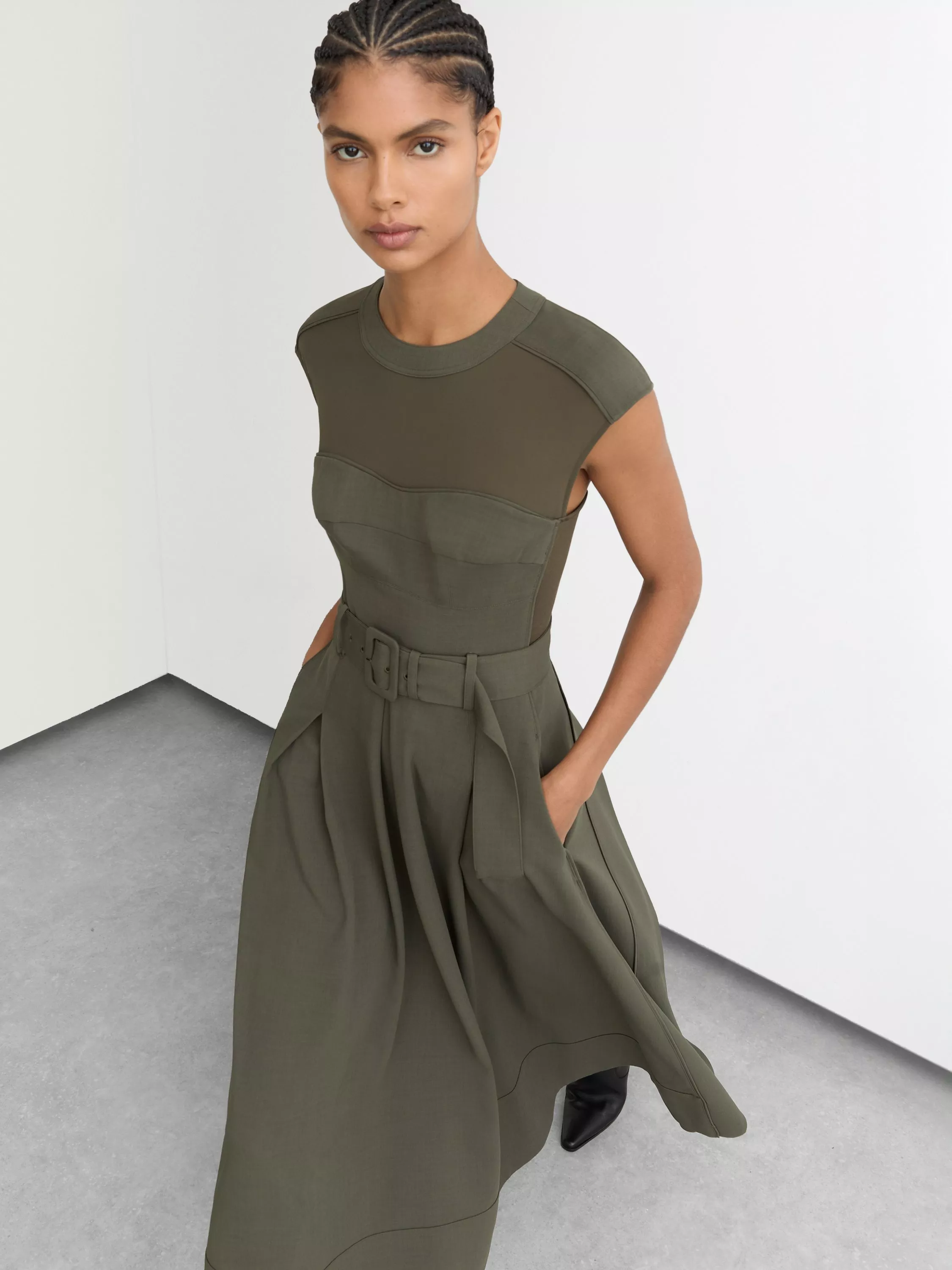 A midi fit and flare dress cut with pleats through the skirt. Its belted waist adds a clever twist, while the round neckline and lined keep you feeling comfortable and confident.