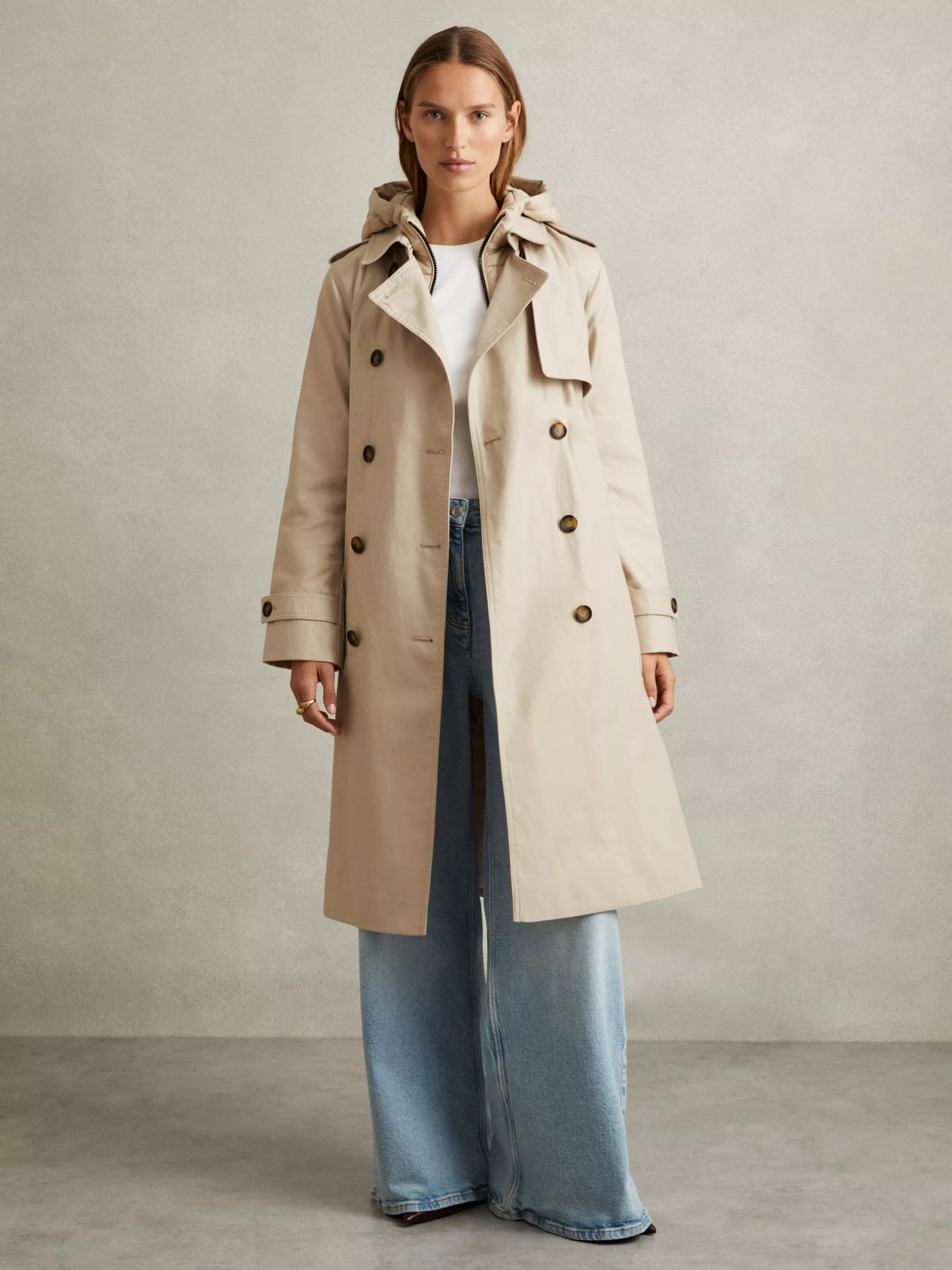 Smart, effortless and easy-to-wear, this double breasted trench coat from Reiss comes in a flattering longer length.