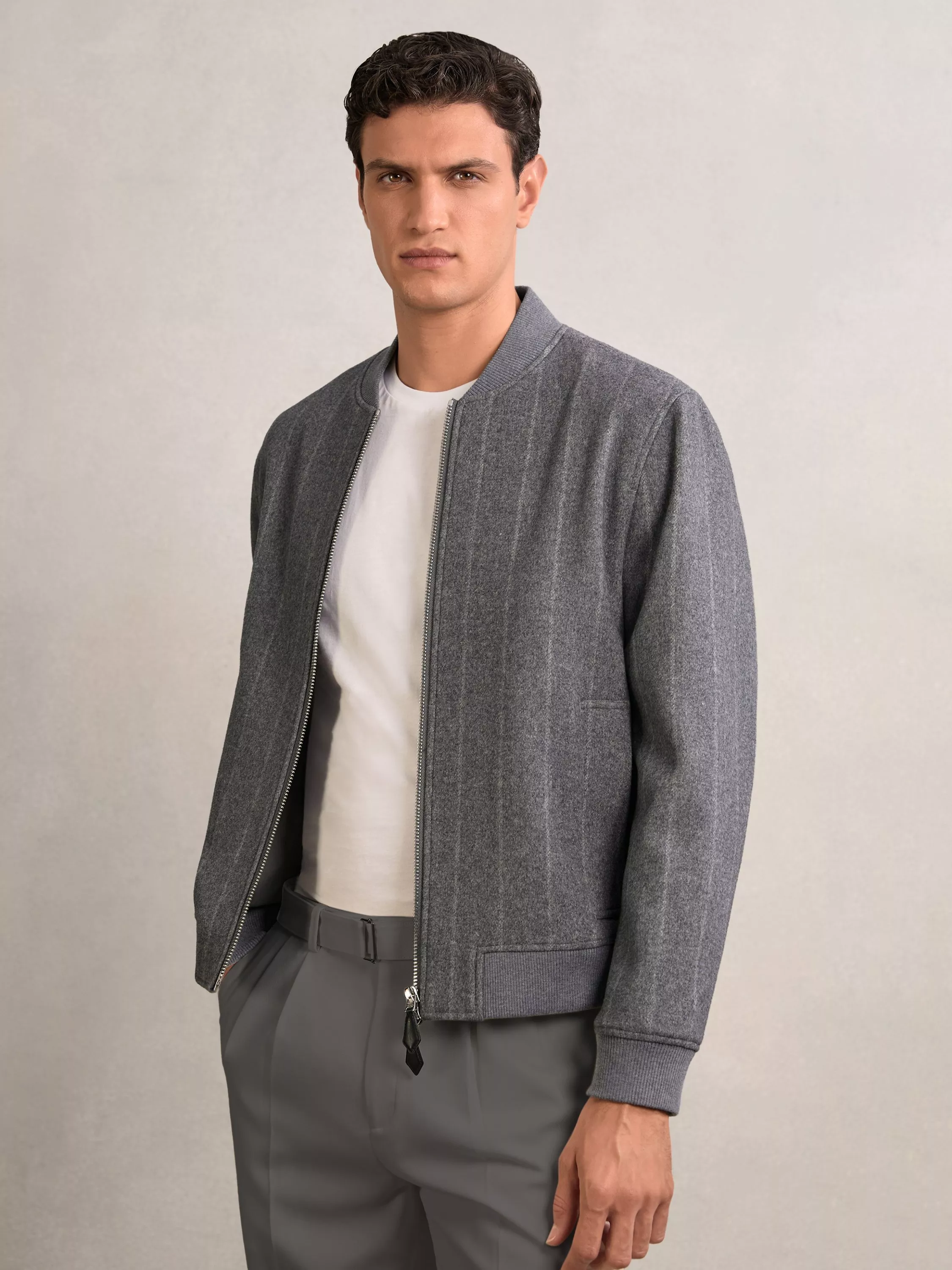 This wool blend bomber jacket reimagines a timeless silhouette with a clever edge, pairing subtle striped detailing with a comfortable regular fit and zip fastening for easy everyday wear that lets you express your individuality with confidence.
