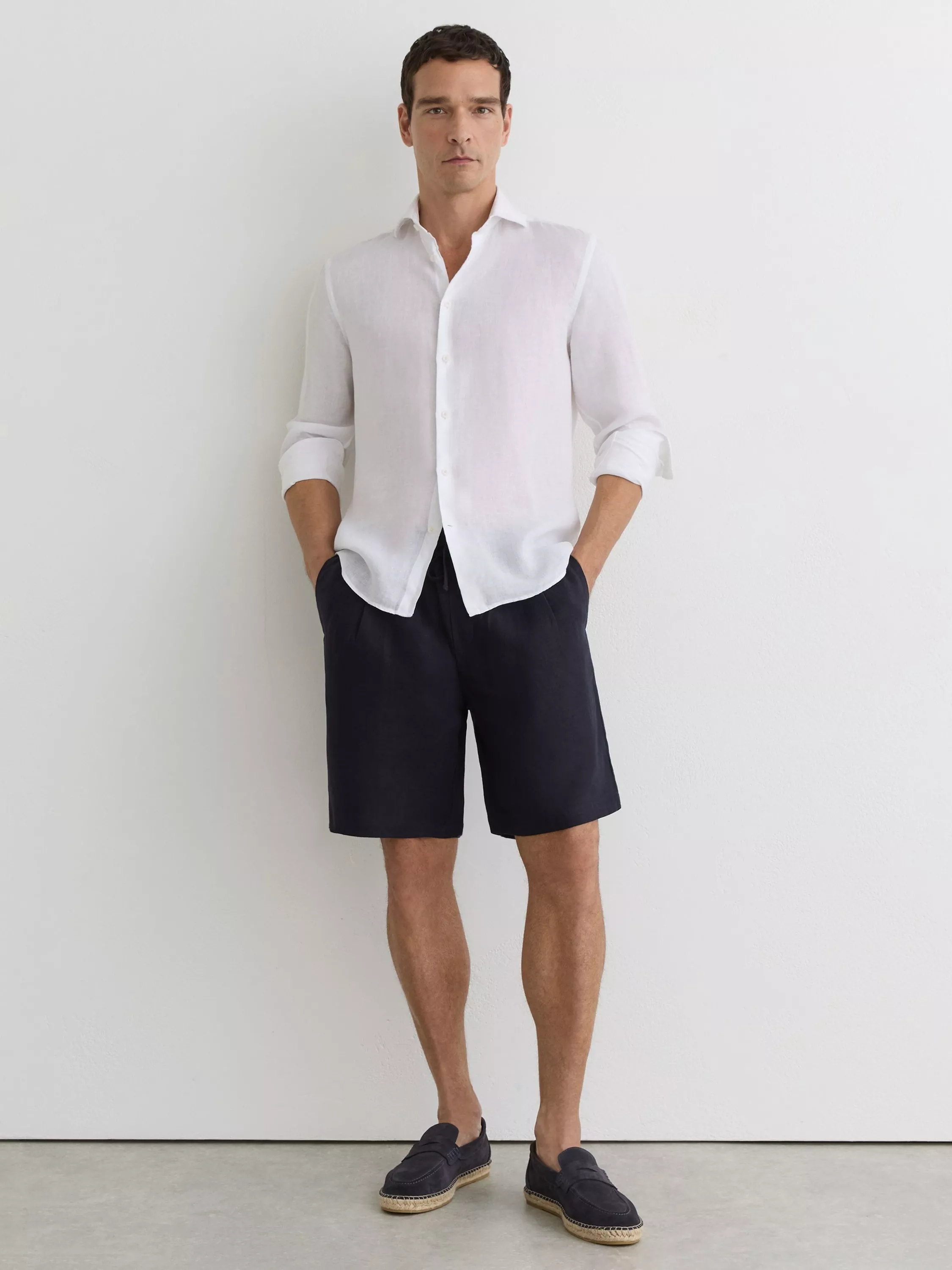 Linen shorts built for balmy days, with a relaxed cut and drawstring waist, crafted to keep you cool and comfortable without fuss. Smart enough for daytime plans, easy enough for relaxed moments in the sun.