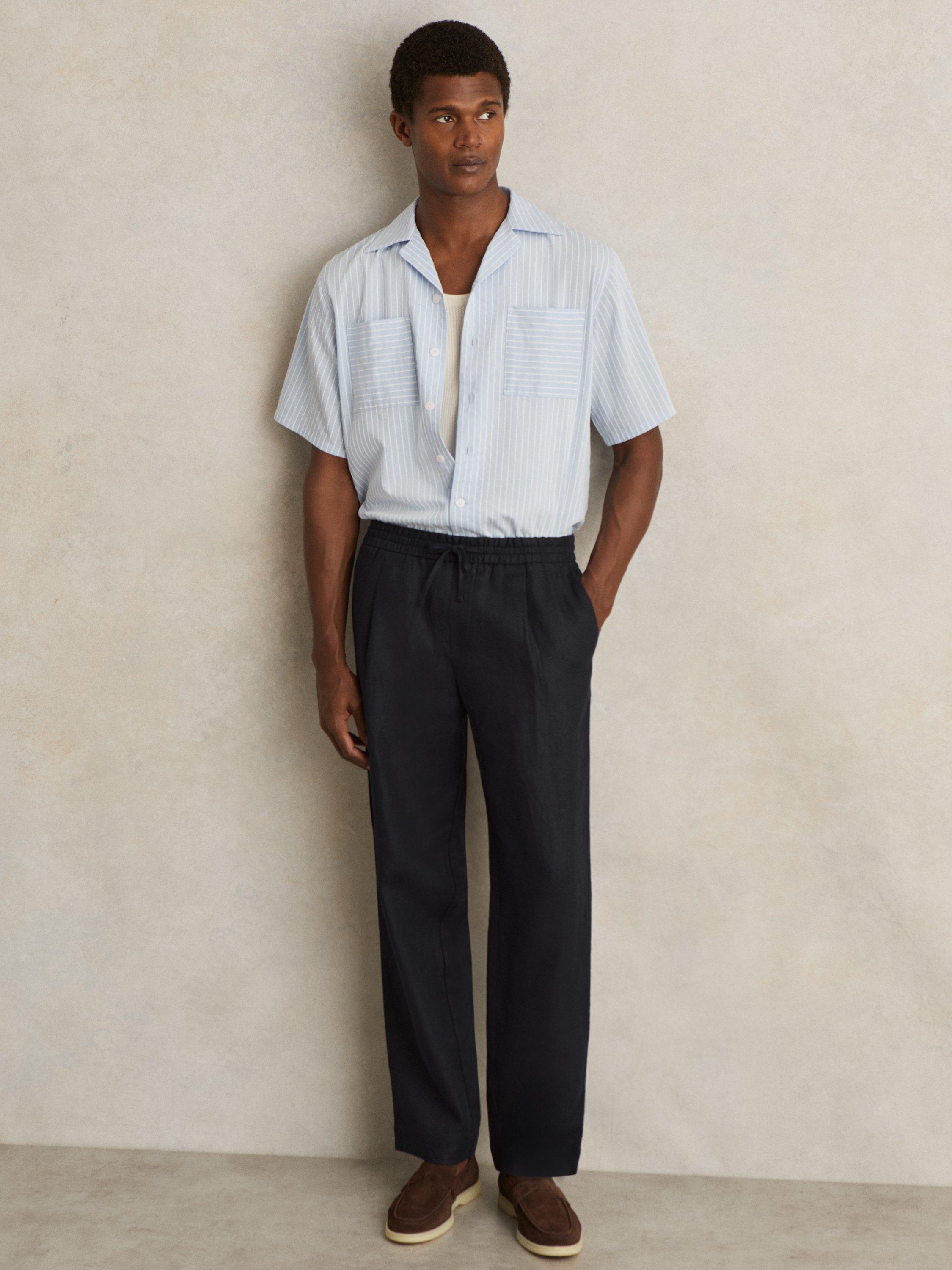 A lightweight style crafted from 100% linen, the Reiss Barges trousers are perfect for warmer weather. They’re fitted with a comfortable elasticated drawstring waistband and finished with subtle front pleats. Designed with side pockets and welt pockets to the reverse.