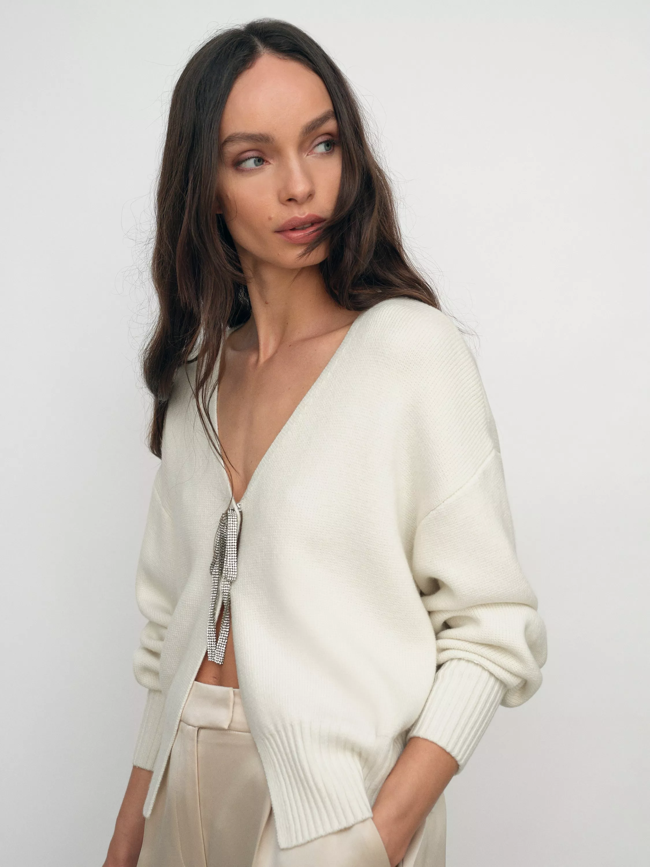 A fine wool blend cardigan. The embellished tie front adds character, while the lightweight knit offers comfort for every day. Perfect for layering, it ensures you look sharp and feel at ease.