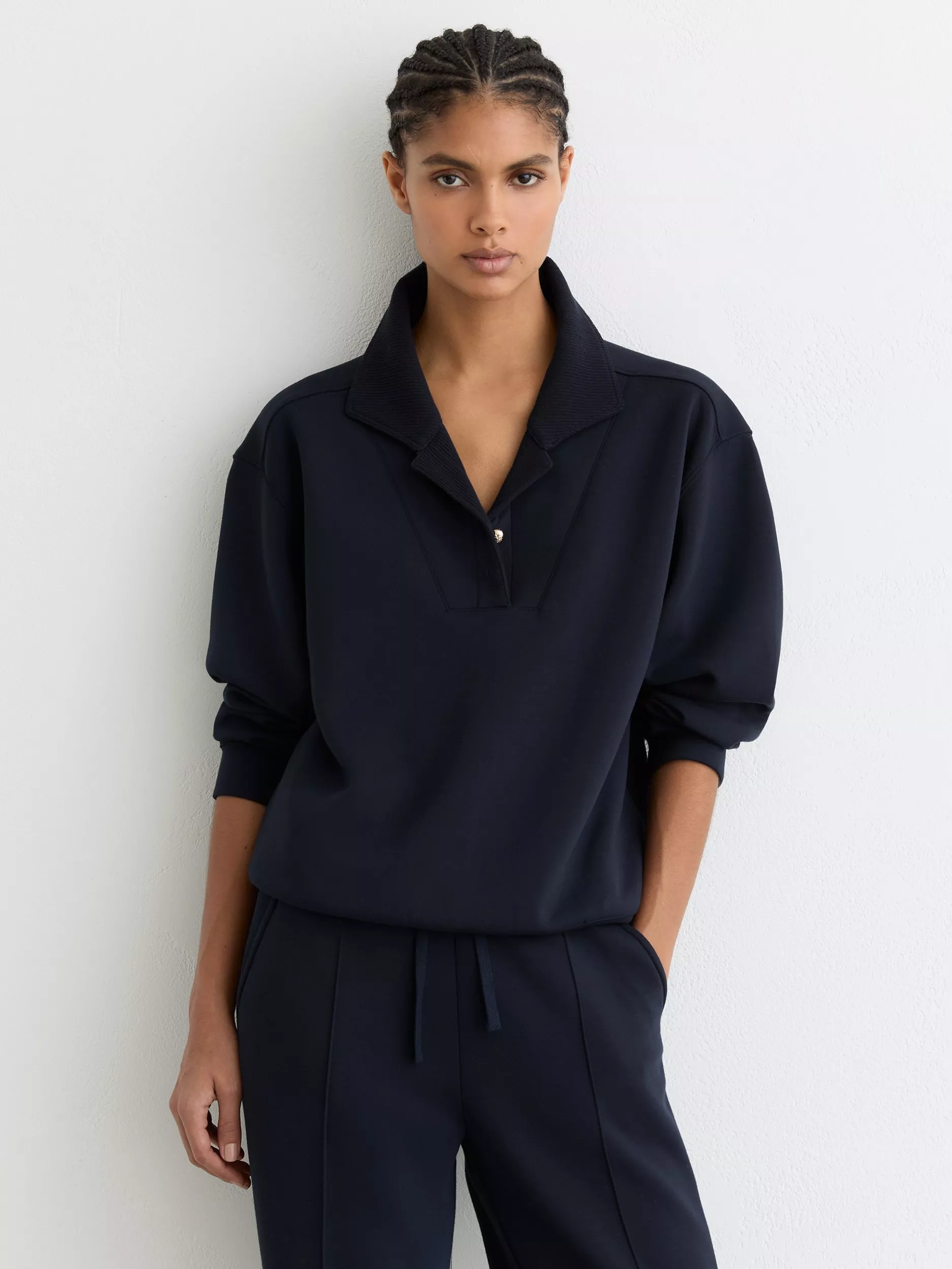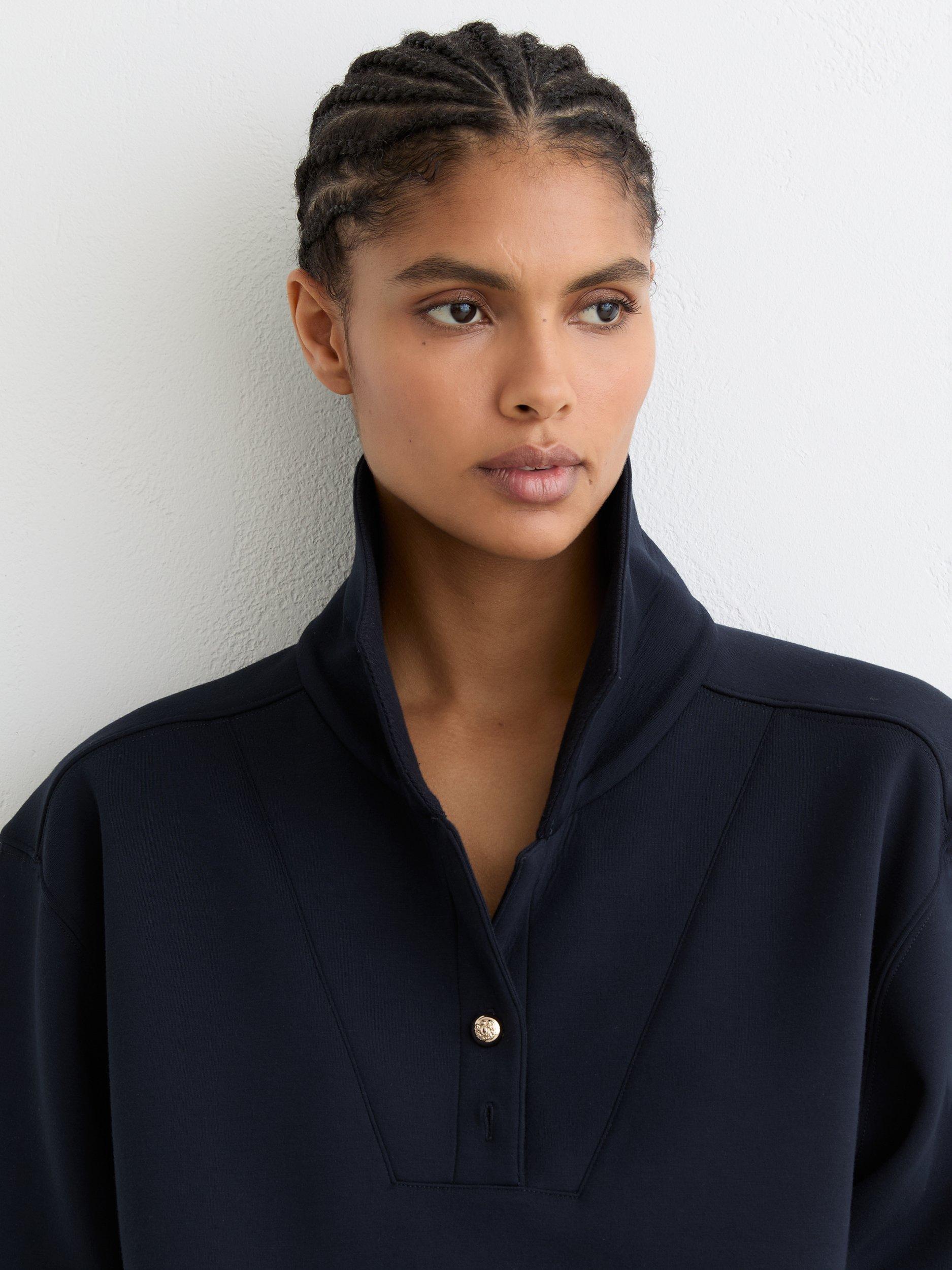 Cut for all-day ease, this long sleeve top features a smart button neck and soft stretch fabric, making it ideal for work or weekend plans.