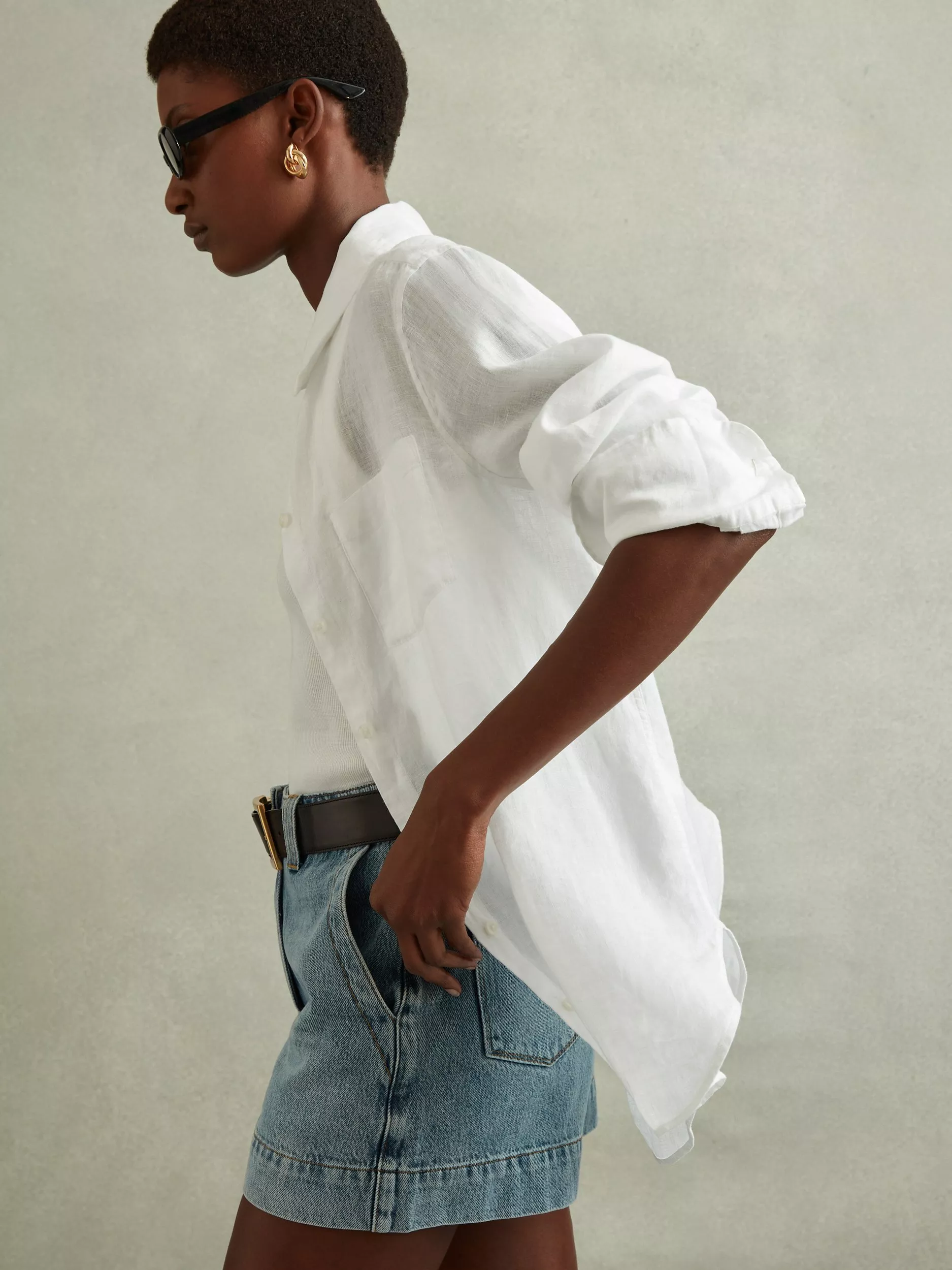 ReissBelle Long Sleeve Linen Shirt, White, 16