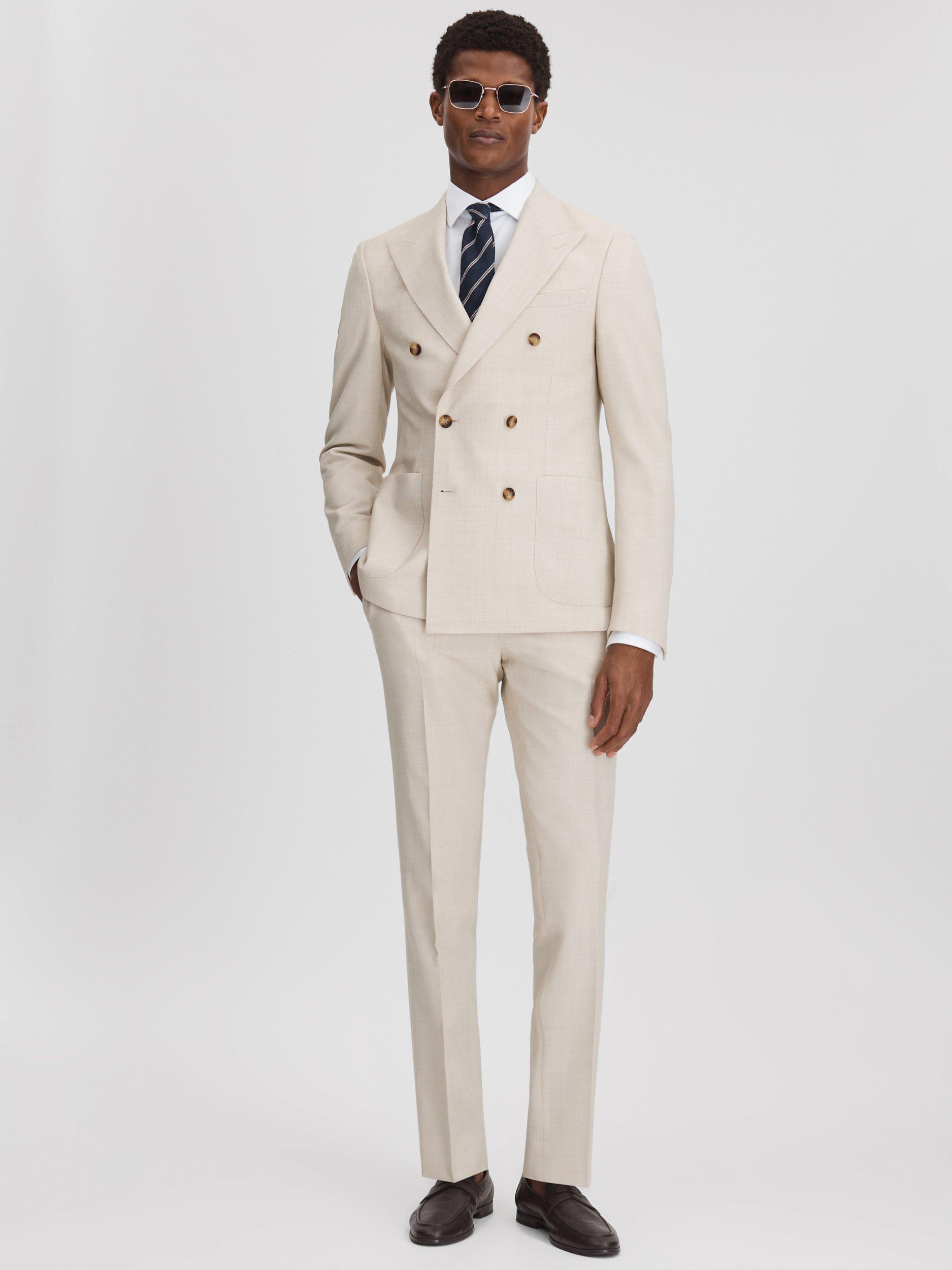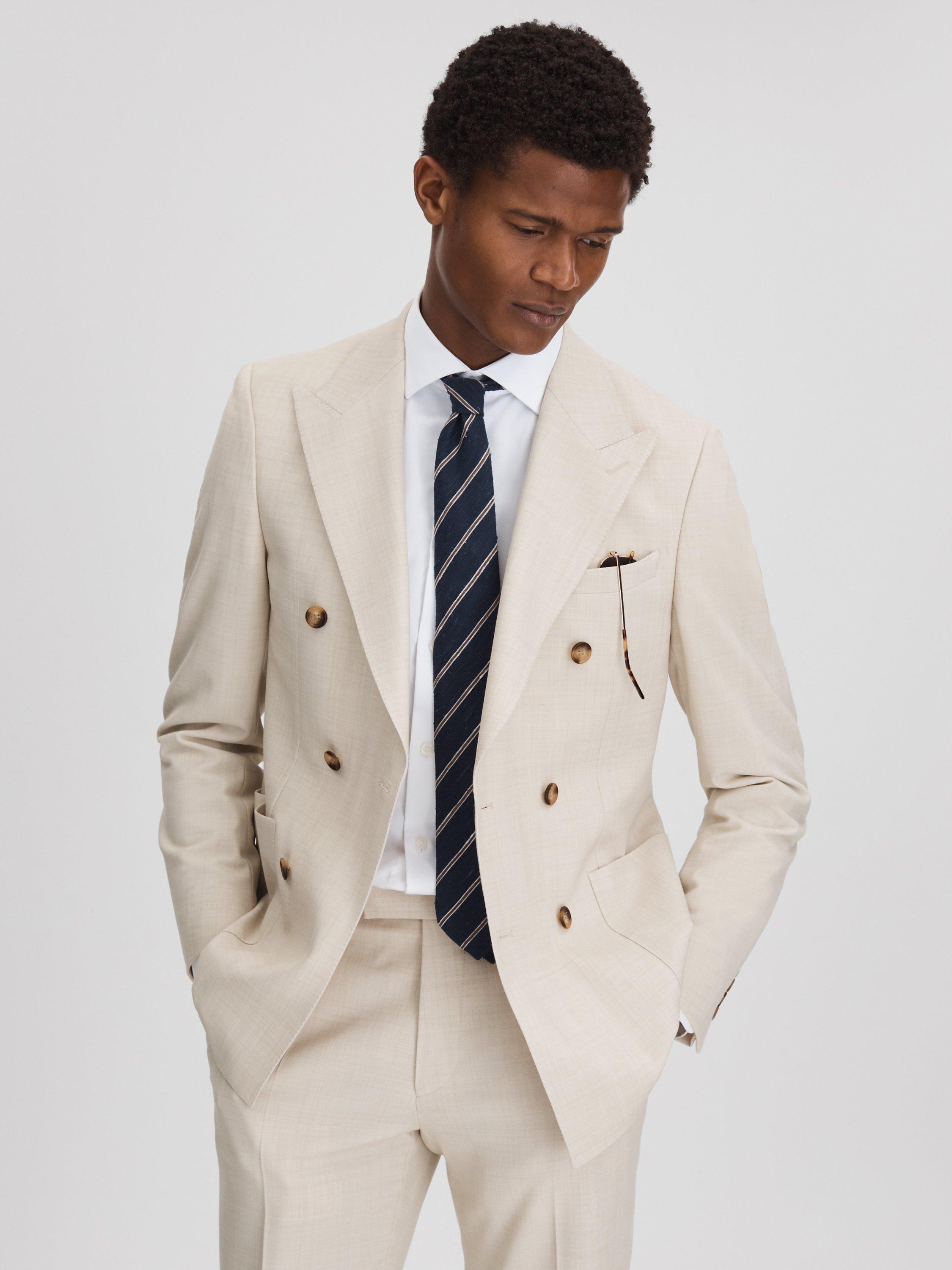 Slim-fit suiting makes a resurgence with the Belmont from Reiss. Double-breasted, it's crafted with hints of wool and added stretch. A six-button front and peak lapels reassert a heritage mood. Dual vents to the reverse ensure a sharp but comfortable profile.