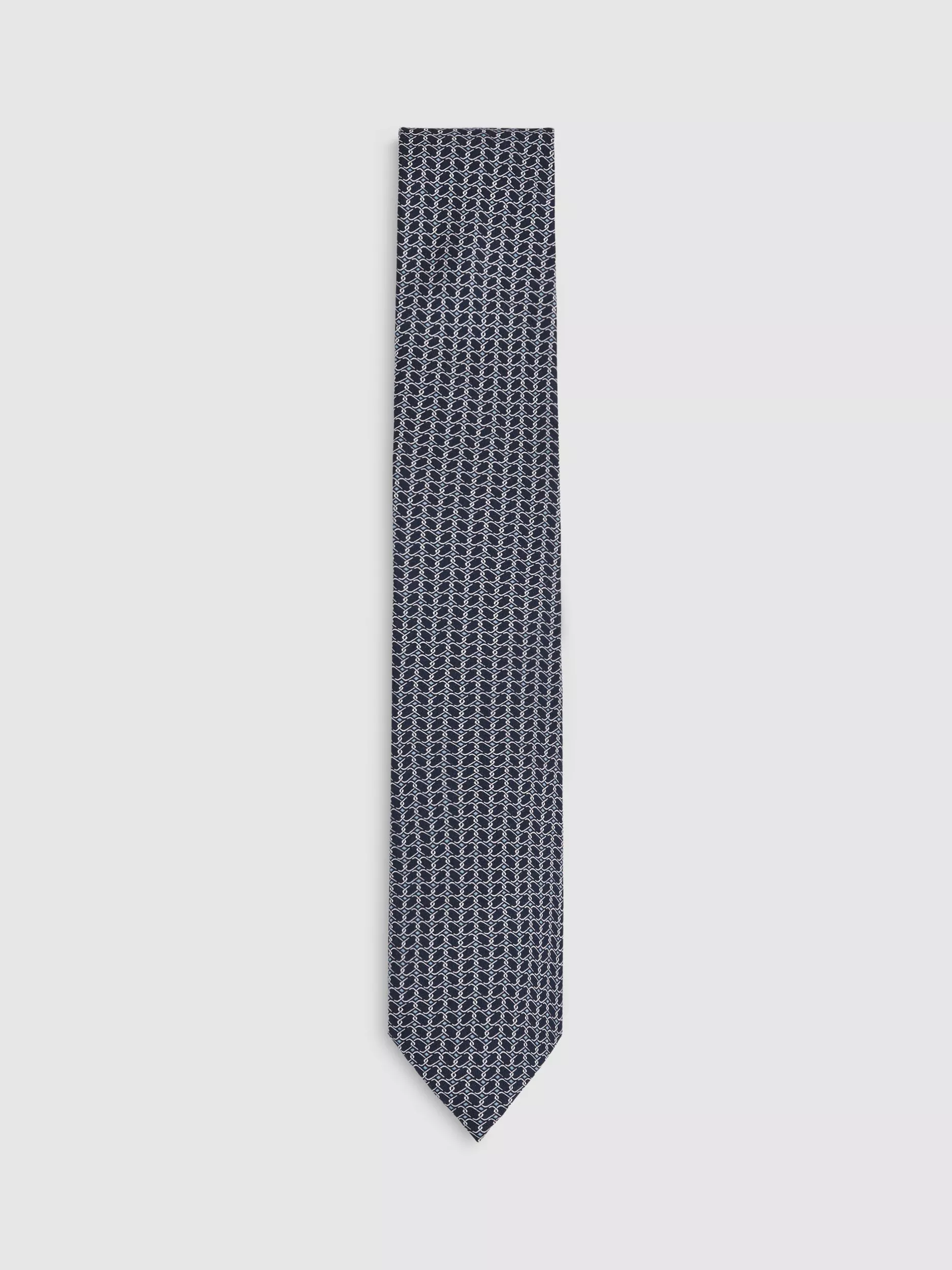 Add sharp character to your outfit with this trellis-pattern tie in pure silk.