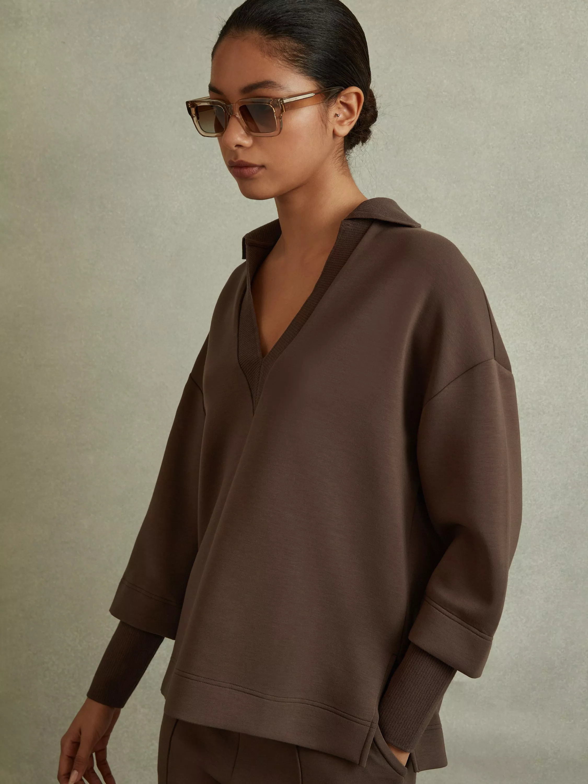 A polo neck top from Reiss, framed with a v-neckline and made from a light yet durable fabric. An everyday wardrobe essential.