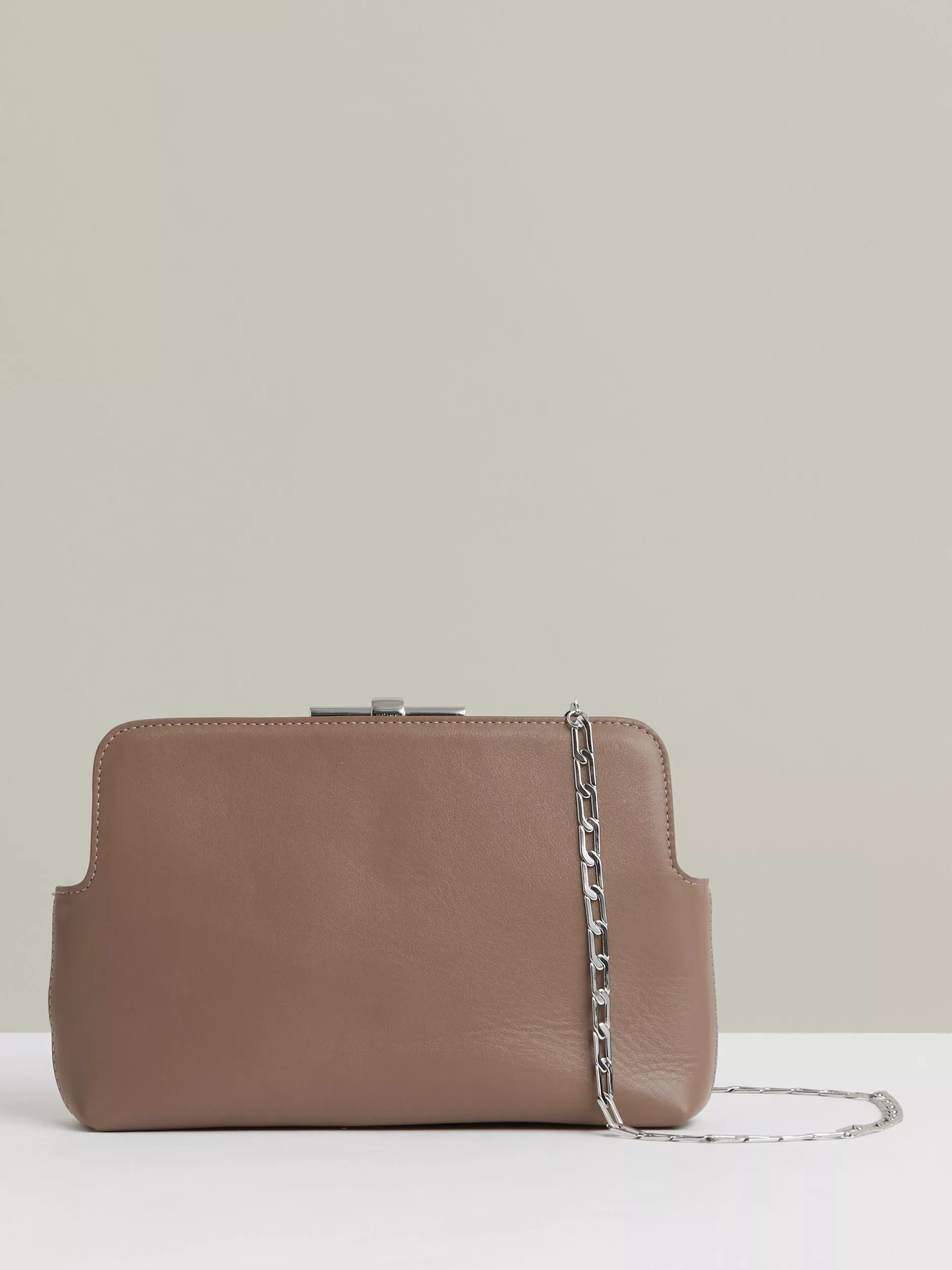 This leather clutch keeps your essentials secure with a snap closure, with a long chain strap giving you the freedom to move easily and express your unique style.