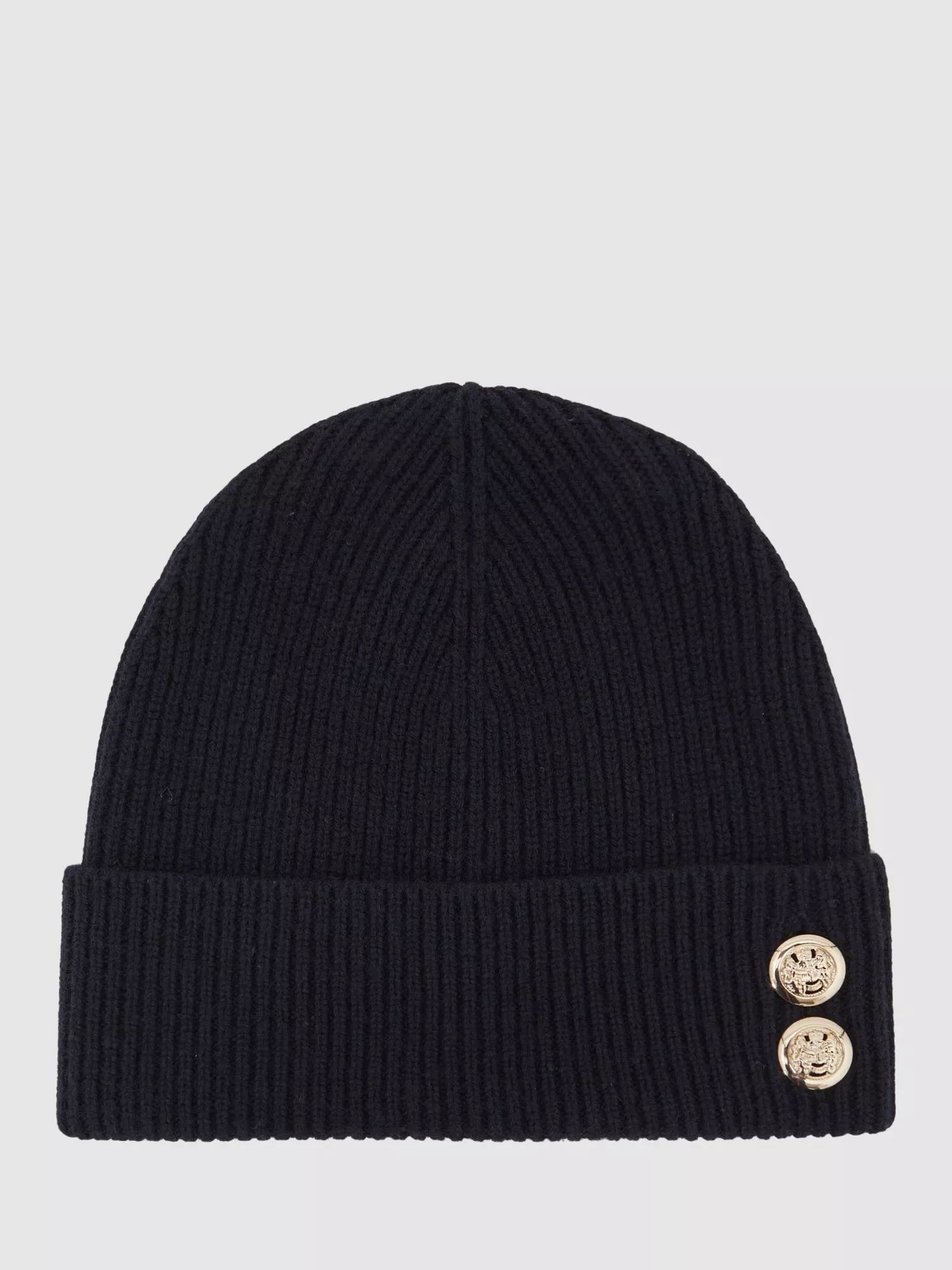 ReissBianca Button Detail Wool Blend Beanie Hat, Navy