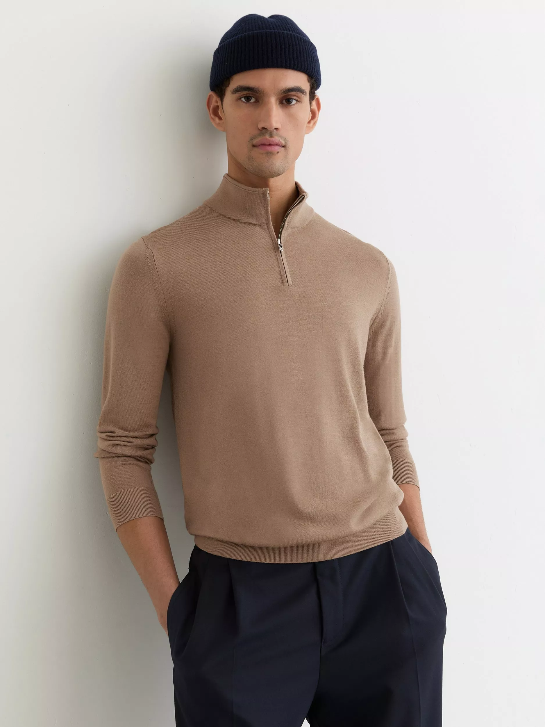 A finely knitted wool jumper by Reiss. The zip neck adds a clever twist, letting you choose your look. Soft, breathable, and versatile, it’s a piece that matches your mood and your plans.