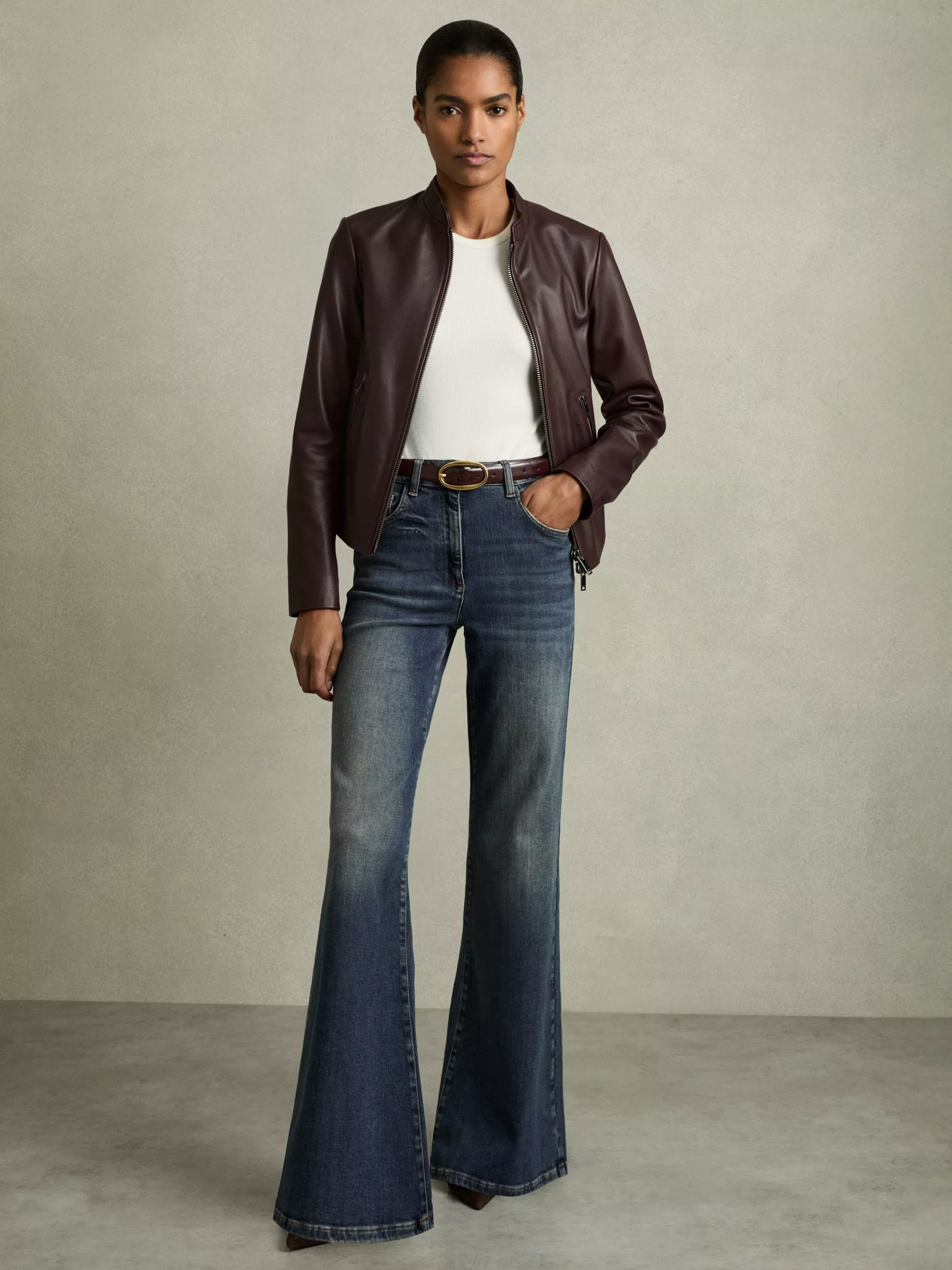 With a bohemian edge, these flared mid rise jeans from Reiss are blended with natural cotton for breathability and finish at a regular length.