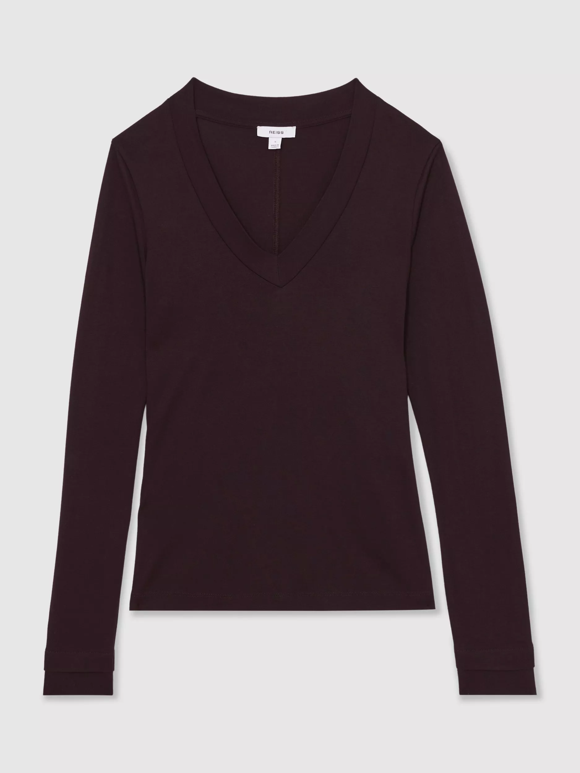 This Reiss V-neck T-shirt features long sleeves and a plain design, making it ideal for daily wear. The soft viscose fabric feels comfortable on your skin, ensuring you look sharp and feel confident throughout your day.