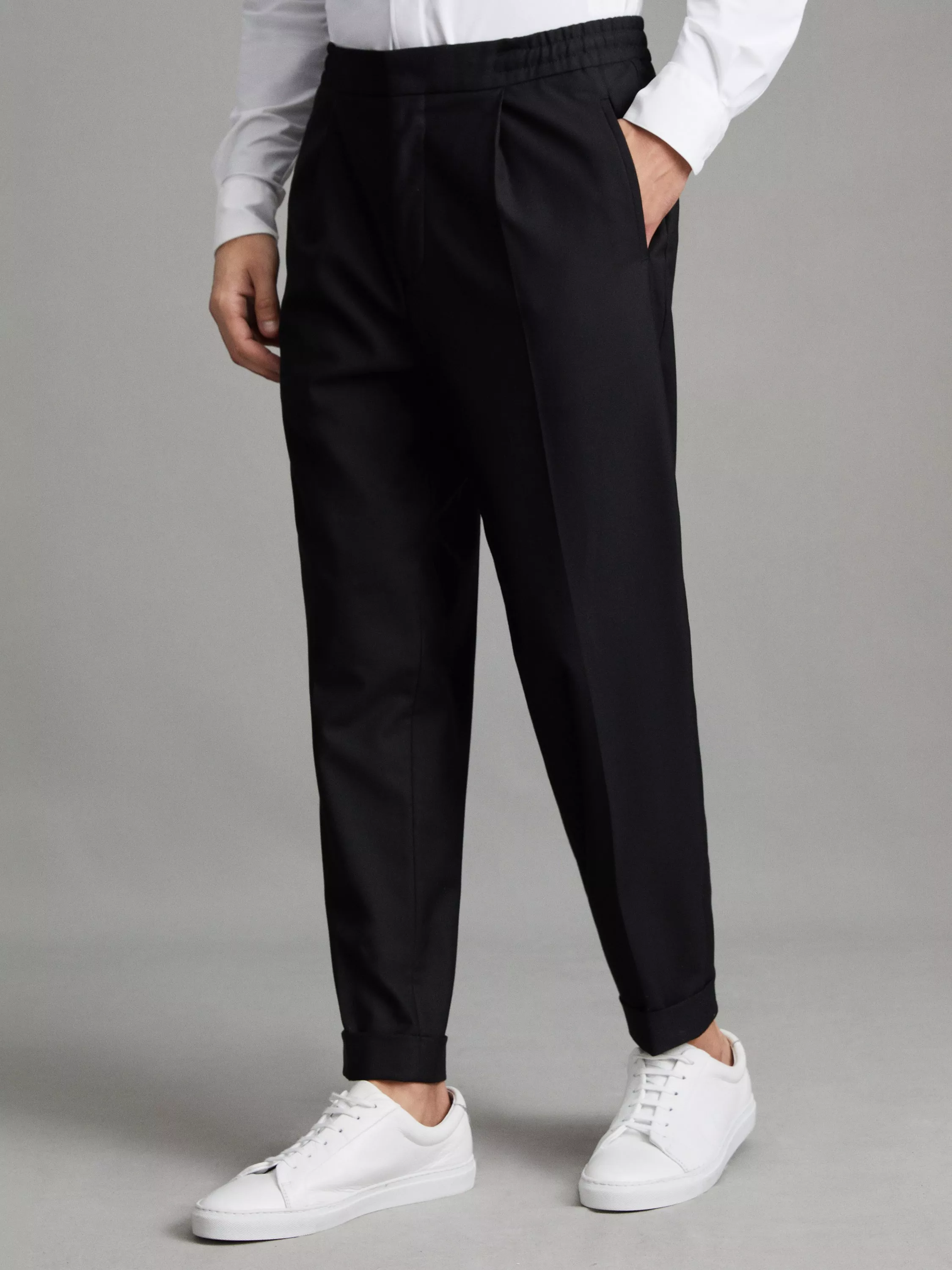 ReissBrighton Pleated Relaxed Trousers, Black