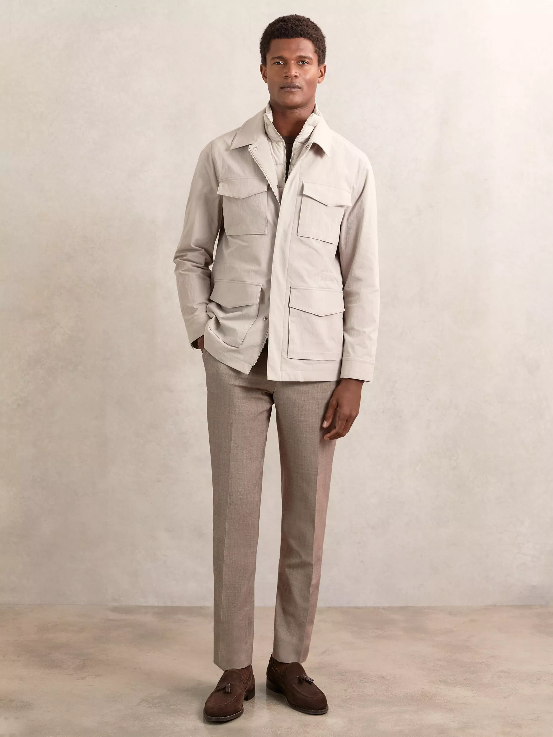Step into every occasion ready for anything. This utility jacket features handy pockets, a comfortable regular fit, and a smooth zip fastening, keeping you organised and at ease wherever your day takes you.