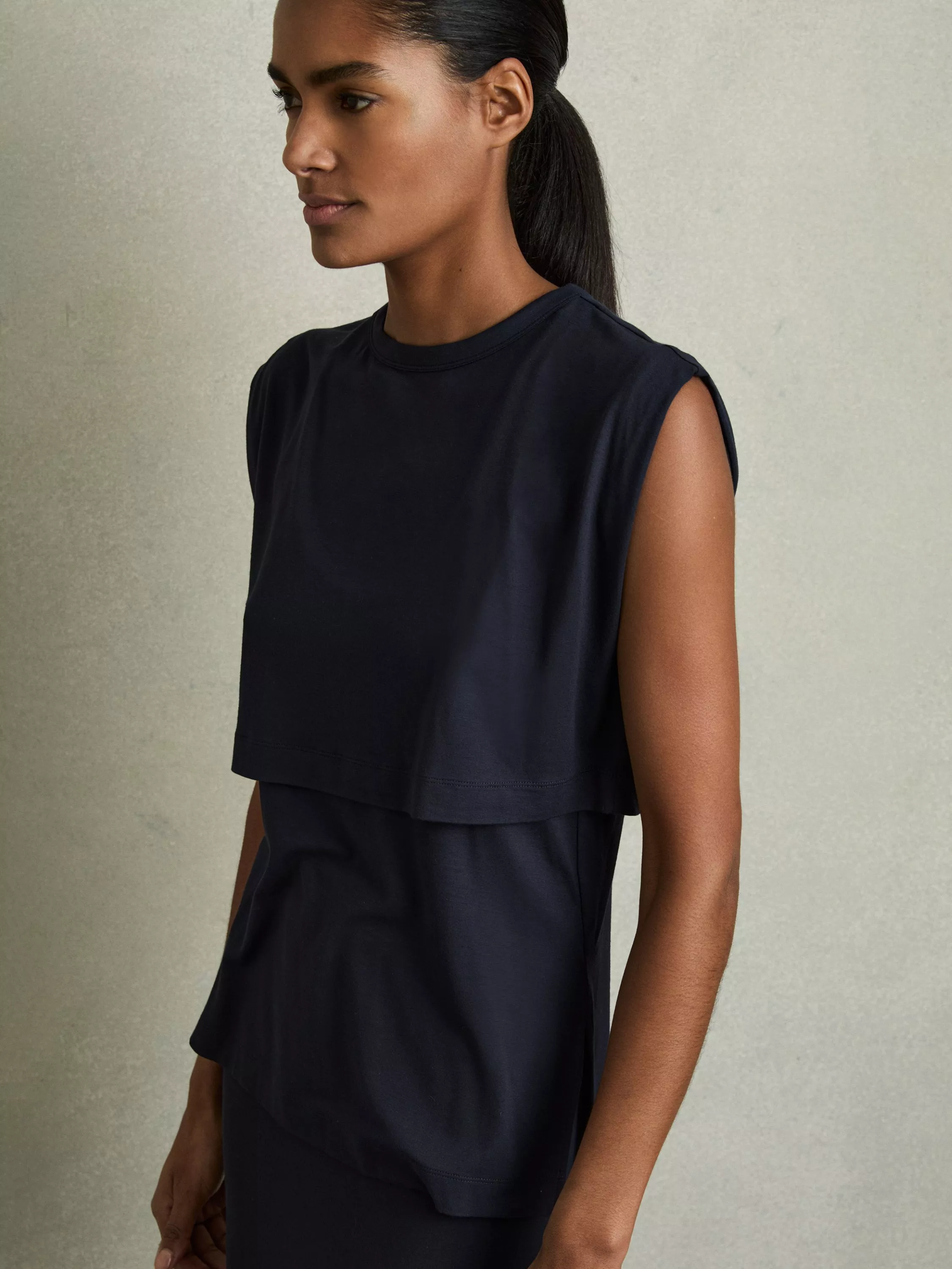 Simple and versatile in nature, this double layer top by Reiss is plain for easy mixing and matching. Simply cut with a round neck and a sleeveless design, it is made from a soft viscose blend and is an everyday wardrobe essential.