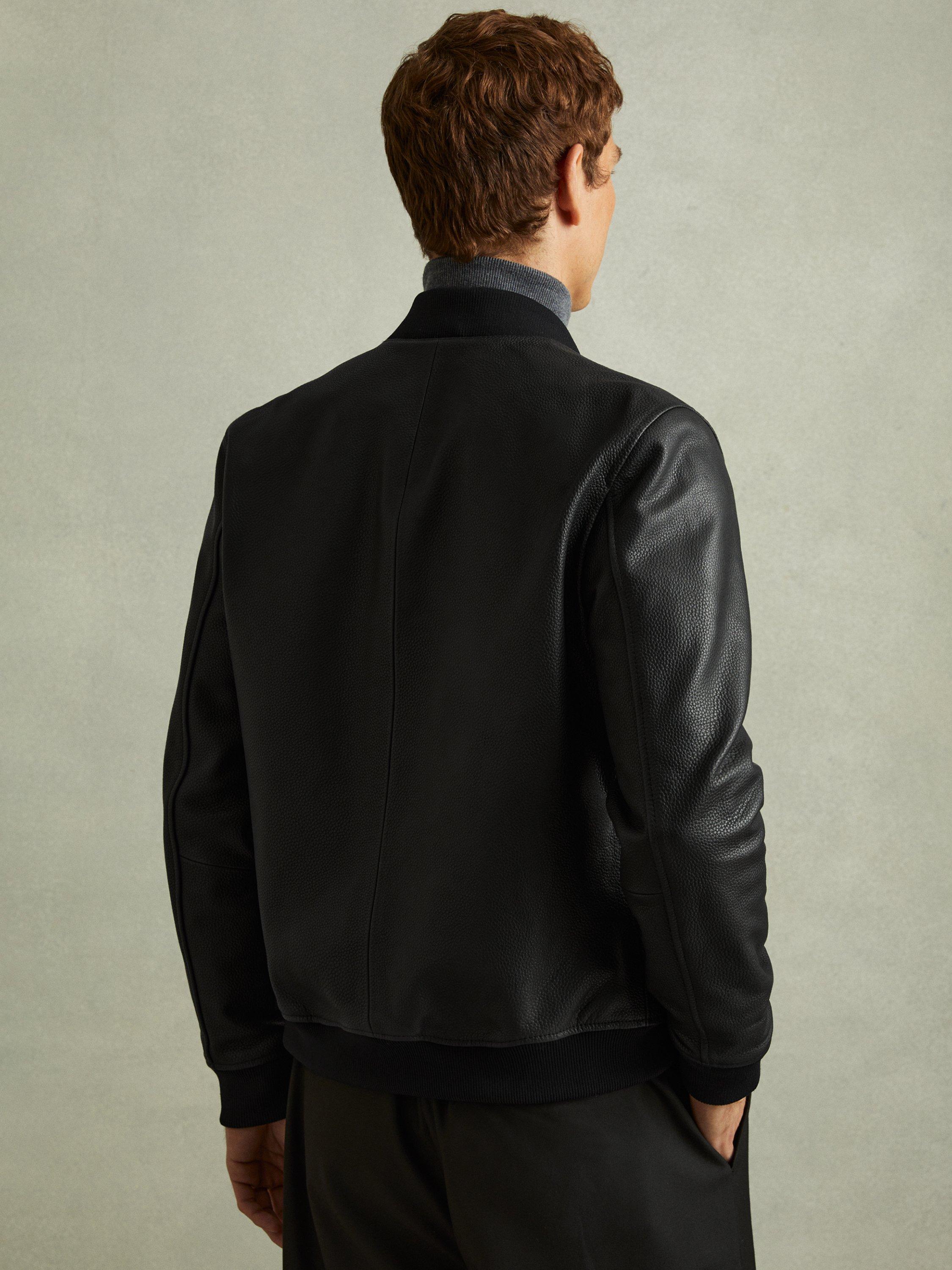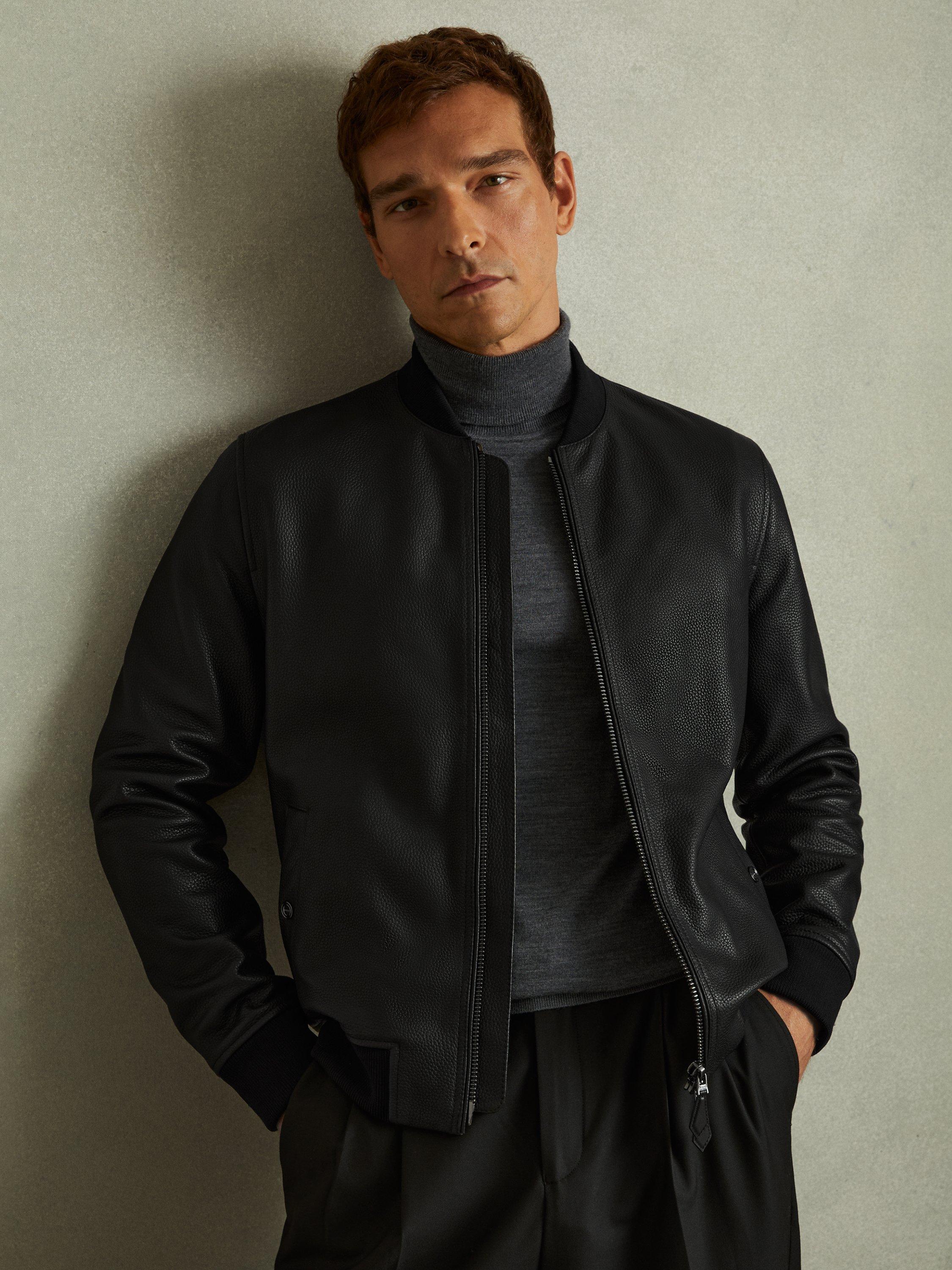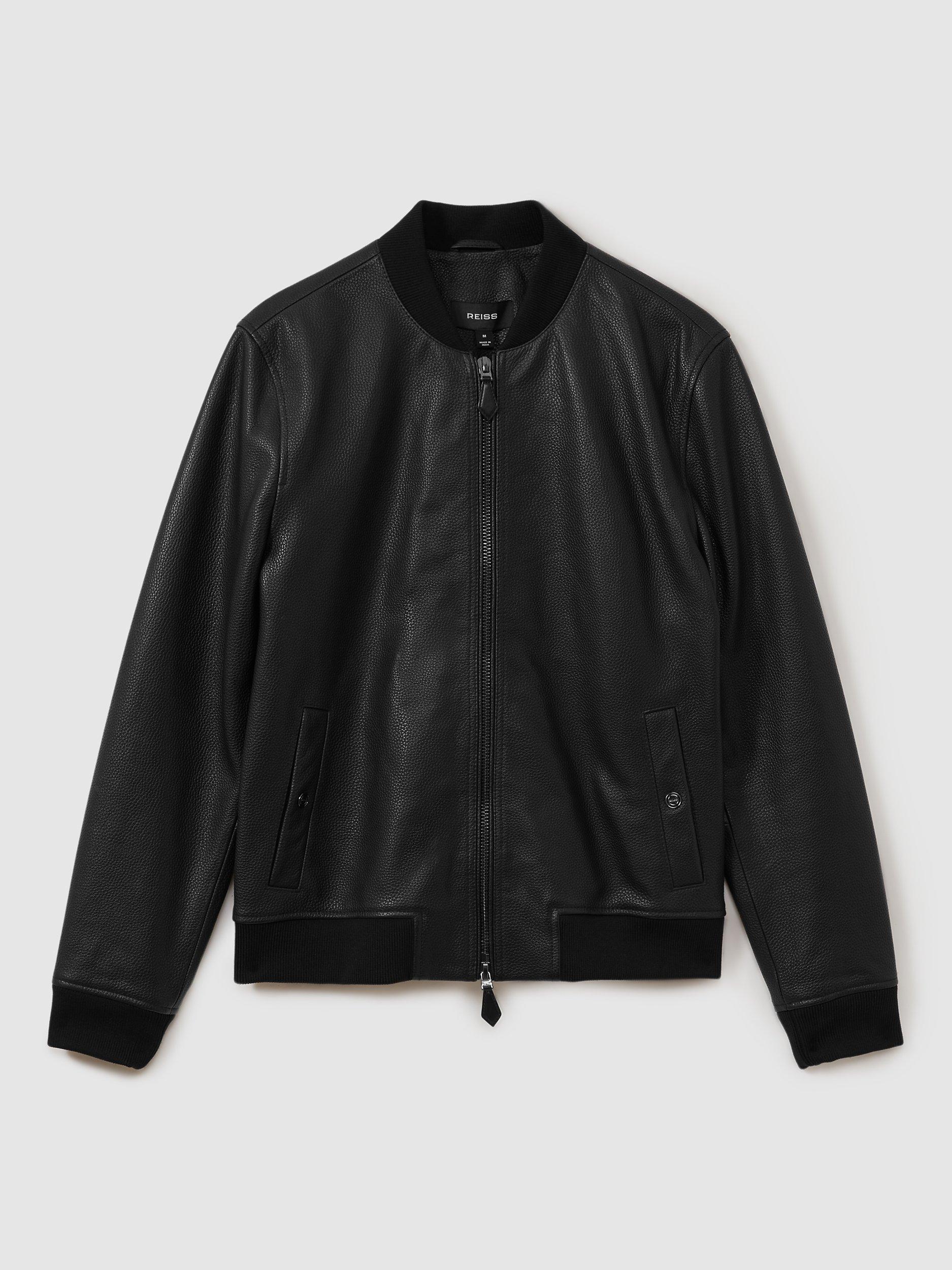 A leather and bomber jacket hybrid, this style from Reiss features ribbing at the neck and cuffs. Crafted from butter-soft leather, it comes in a regular fit with a zip through the front for easy fastening.
